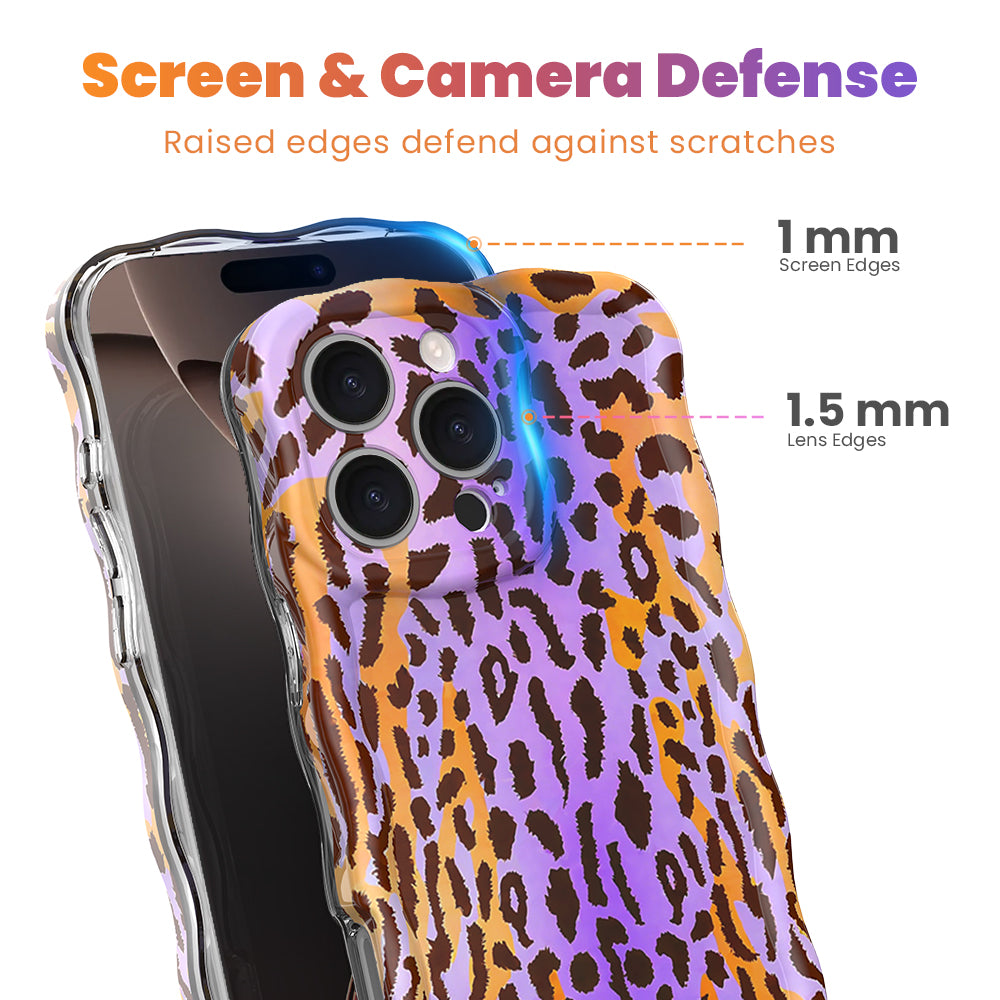 This purple orange leopard iPhone case is designed to work seamlessly with MagSafe technology and fits perfectly with official Apple MagSafe chargers and accessories. The slim profile ensures compatibility with most screen protectors. For best fit and optimal fit, we recommend using this case without aftermarket camera lens protectors.