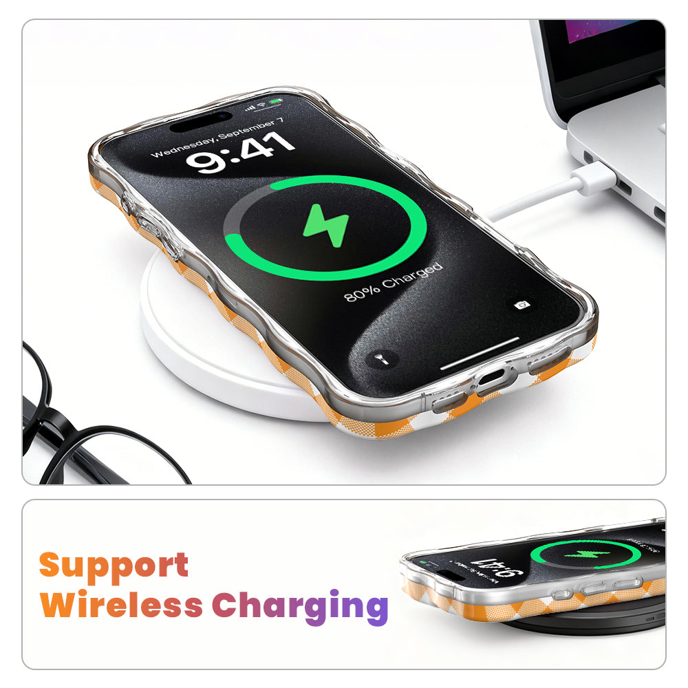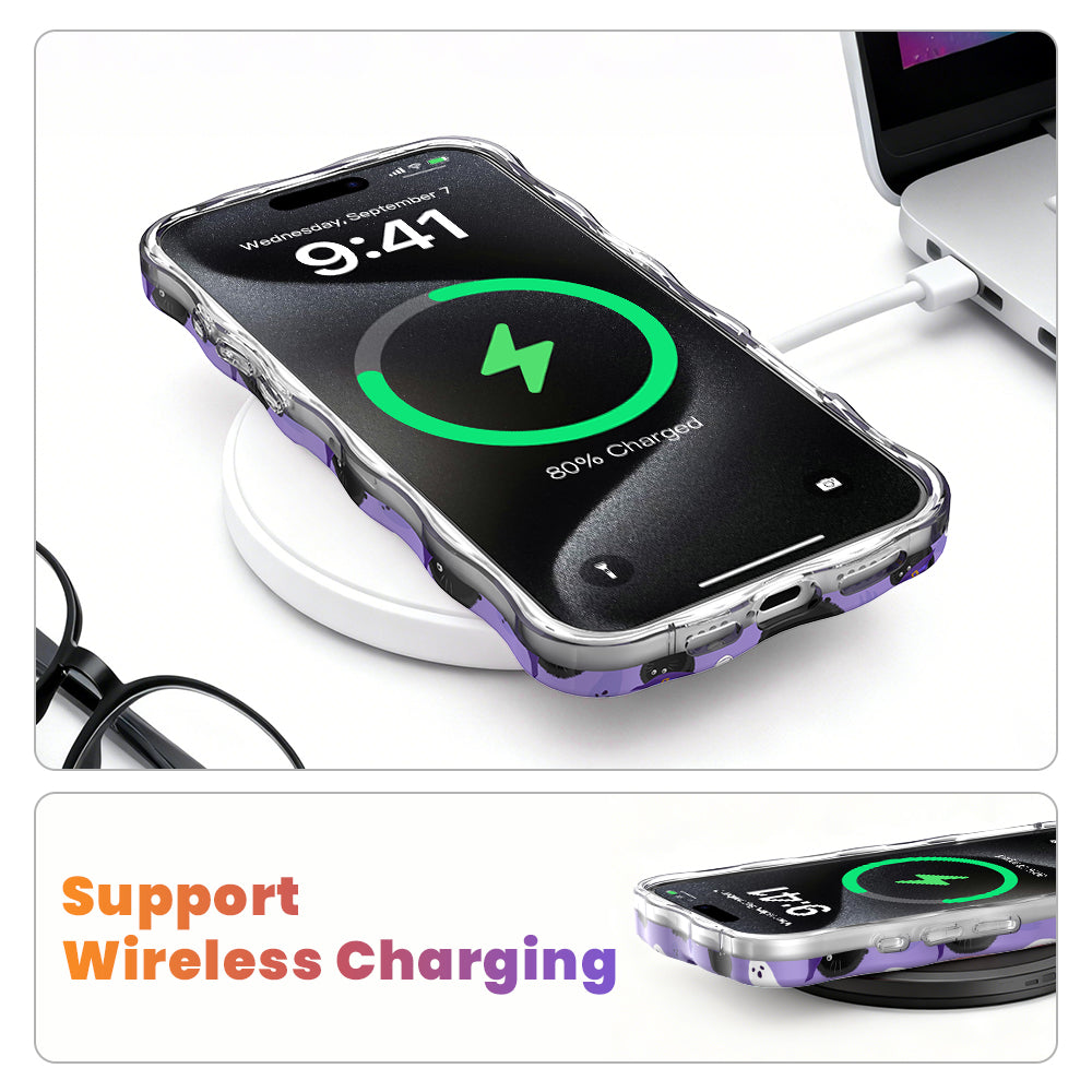 Most cases feature our classic slim-fit design—sleek and pocket-friendly. If you own an iPhone 14 Pro Max or iPhone 13 Pro Max, you'll also find select WavyLuxe styles with a sculpted wavy edge and high-gloss finish.