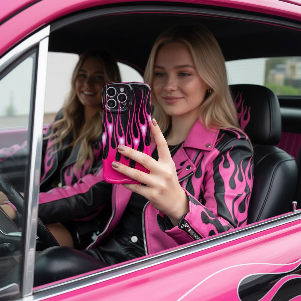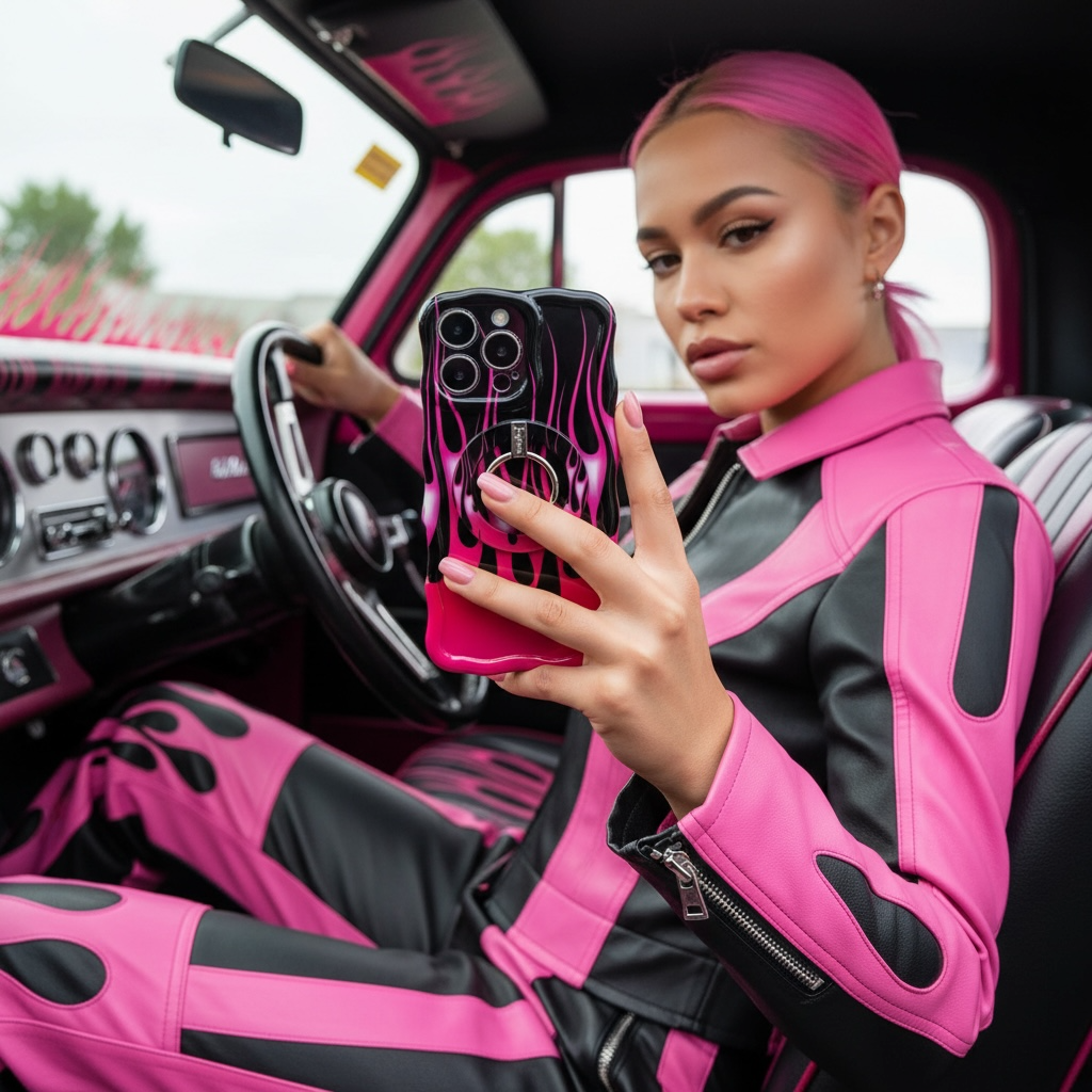 - 🔥 Hot Pink Flames on Black – High-contrast design with retro hot rod vibes.