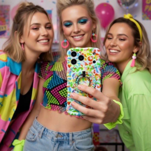 - 💎 High-Gloss "Glass" Finish — A premium, smooth-touch topcoat enhances the saturation of the neon tones, giving the case a luxurious, polished shine while repelling dust and lint.