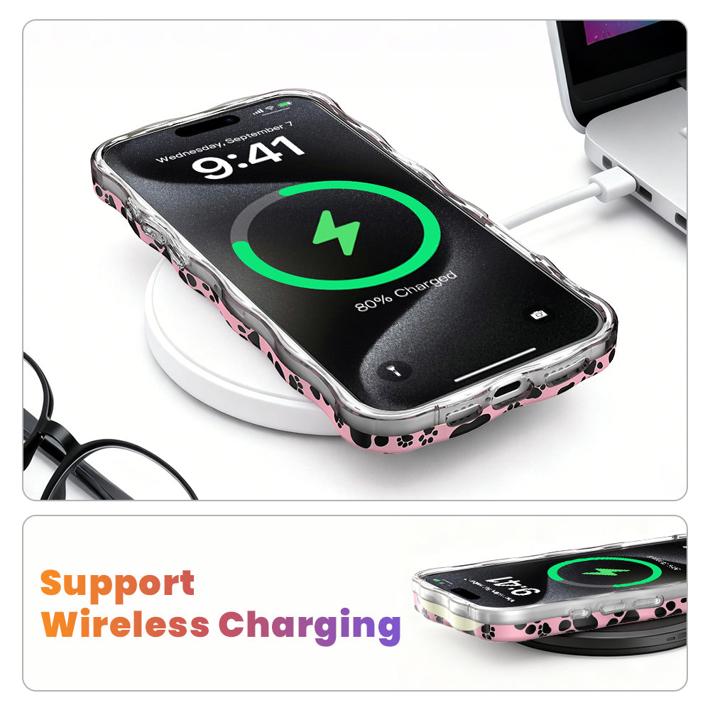 Select cases for iPhone 14 Pro Max and iPhone 13 Pro Max include built-in MagSafe magnets for wireless charging and snap-on accessories like wallets, grips, and car mounts. While MagSafe isn't available for standard iPhone 11, 12, 13, or 14 models in our lineup, all cases support standard Qi wireless charging—just set your phone on any wireless charger and you're good to go.