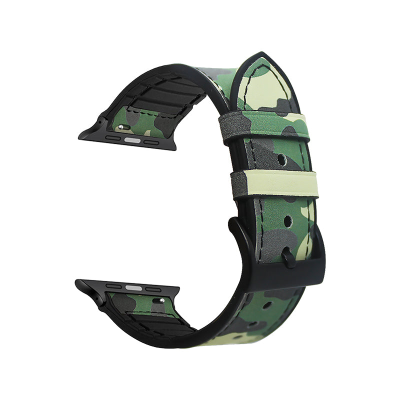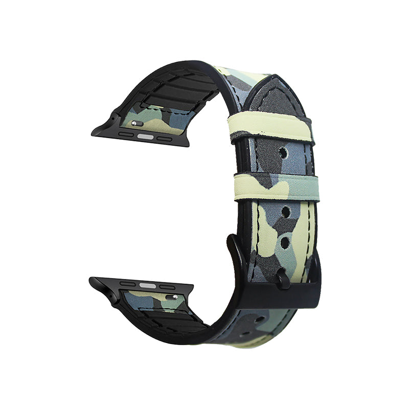 Camouflage Leather Silicone Lined Band For Apple Watch Multiple Colors Available