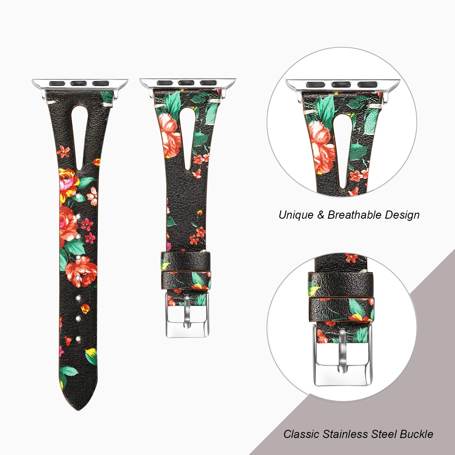 • Premium Genuine Leather: This elegant watch band is made from high-quality smooth and soft leather with neat stitching, ensuring durability and comfort. Its soft texture feels great against your skin, so comfortable you may even forget you're wearing it.