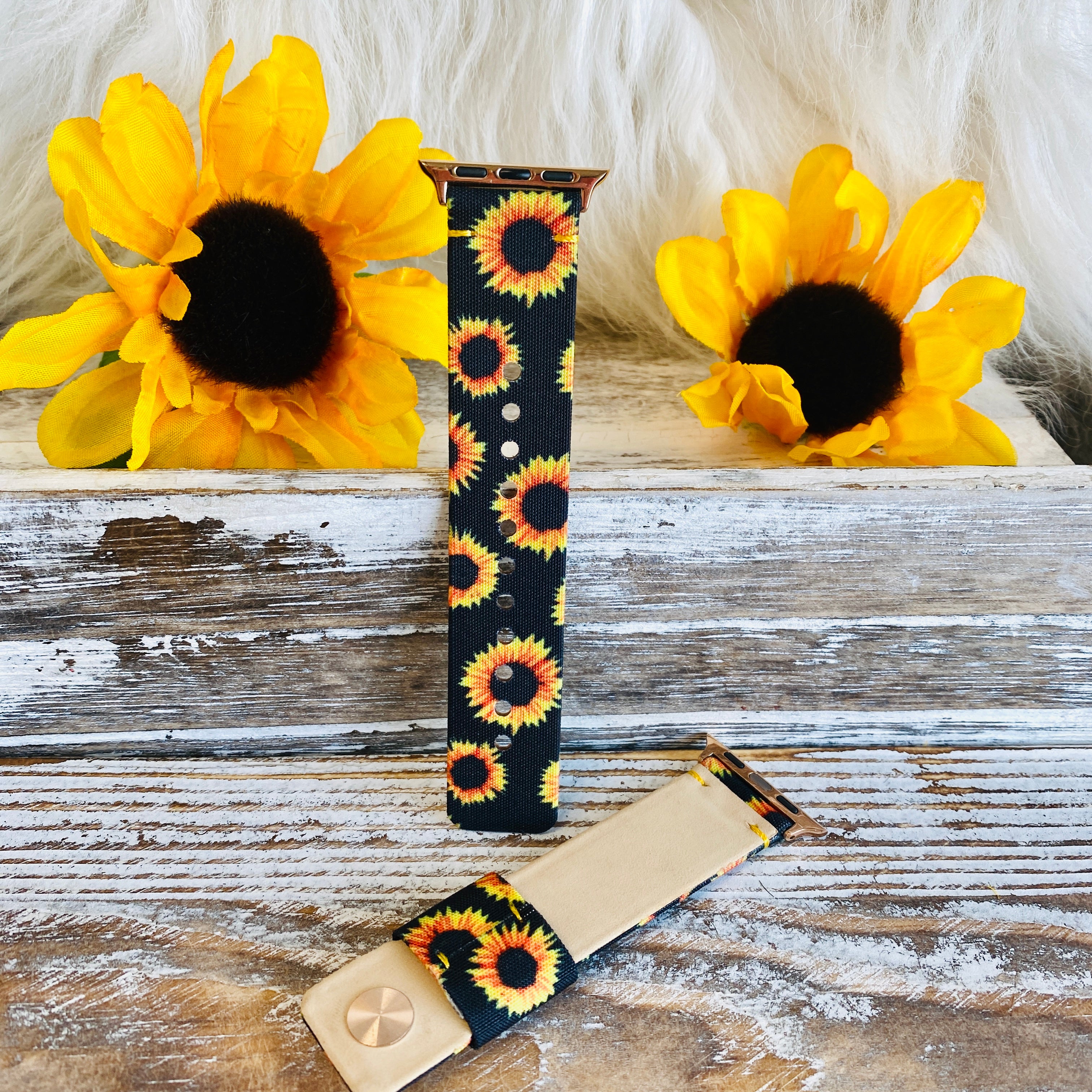 Sunflower Canvas Leather Lined Band For Apple Watch