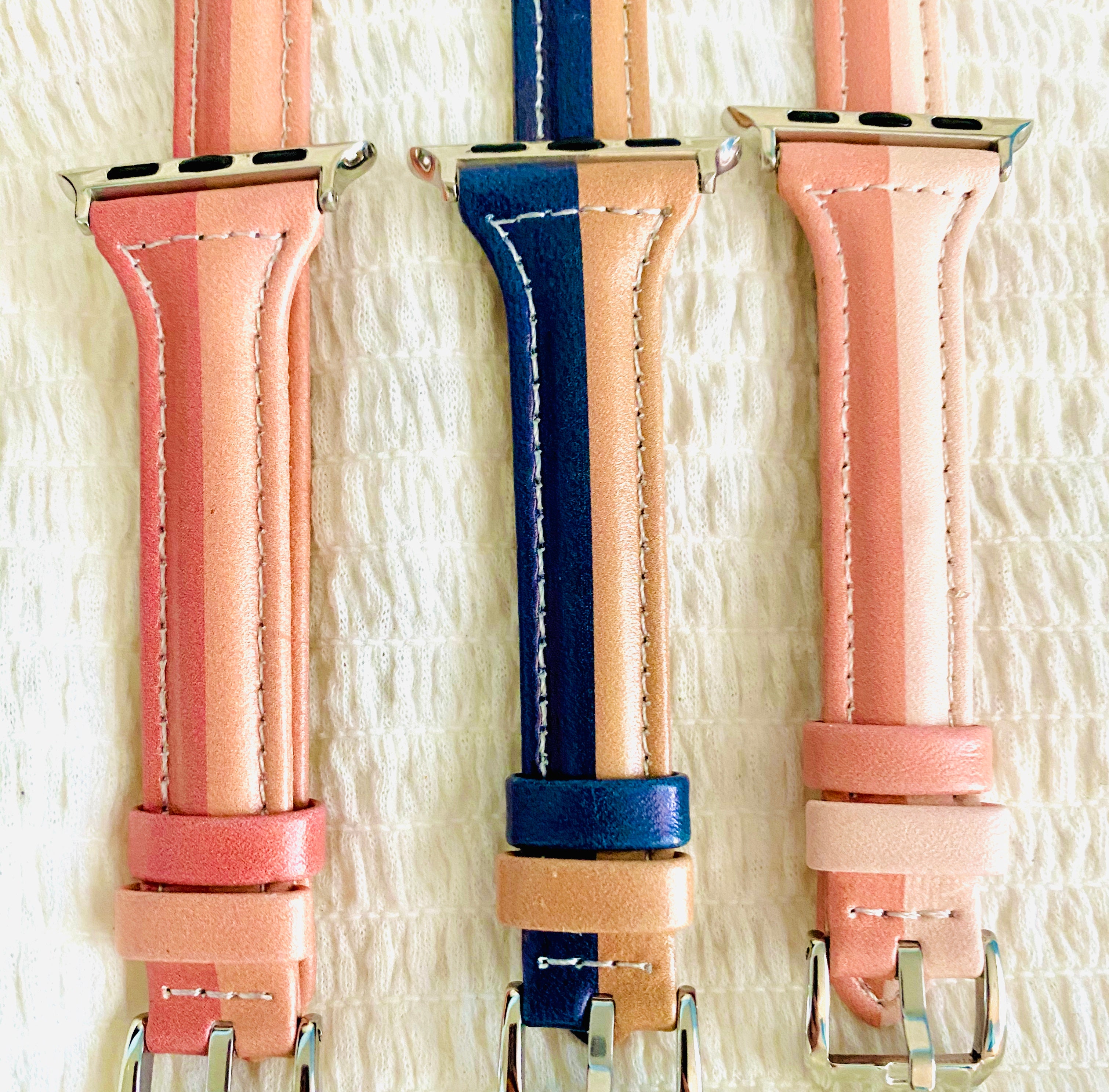 Two Tone Stitched Slim Leather Band For Apple Watch Multiple Colors Available