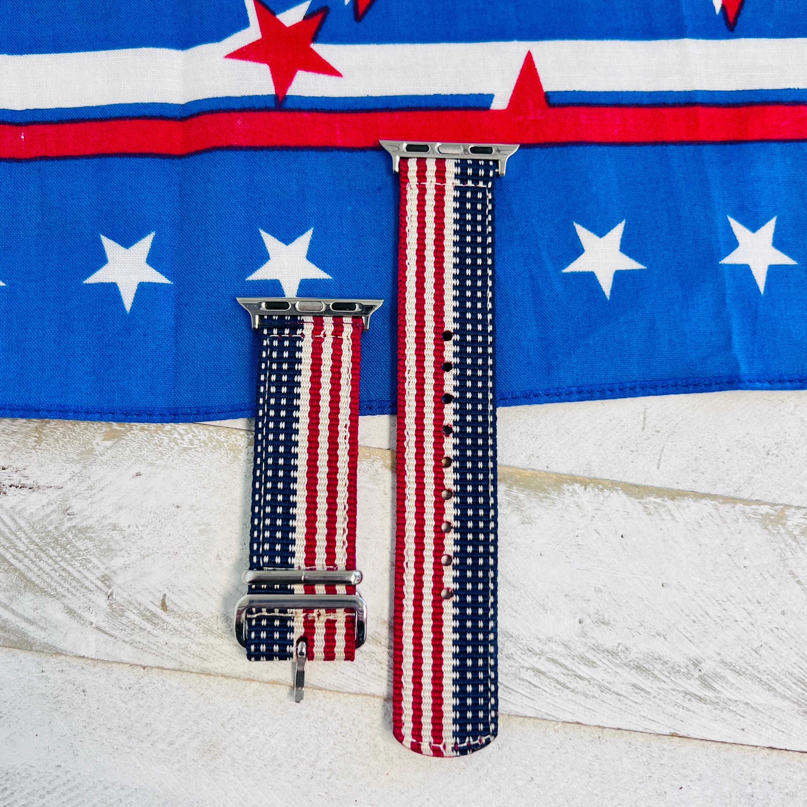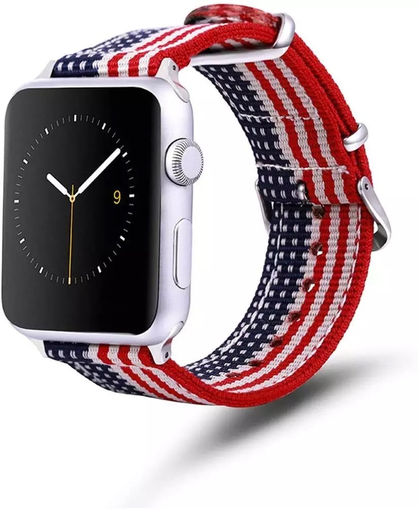 USA Flag Print Woven Canvas/Nylon Band For Apple Watch