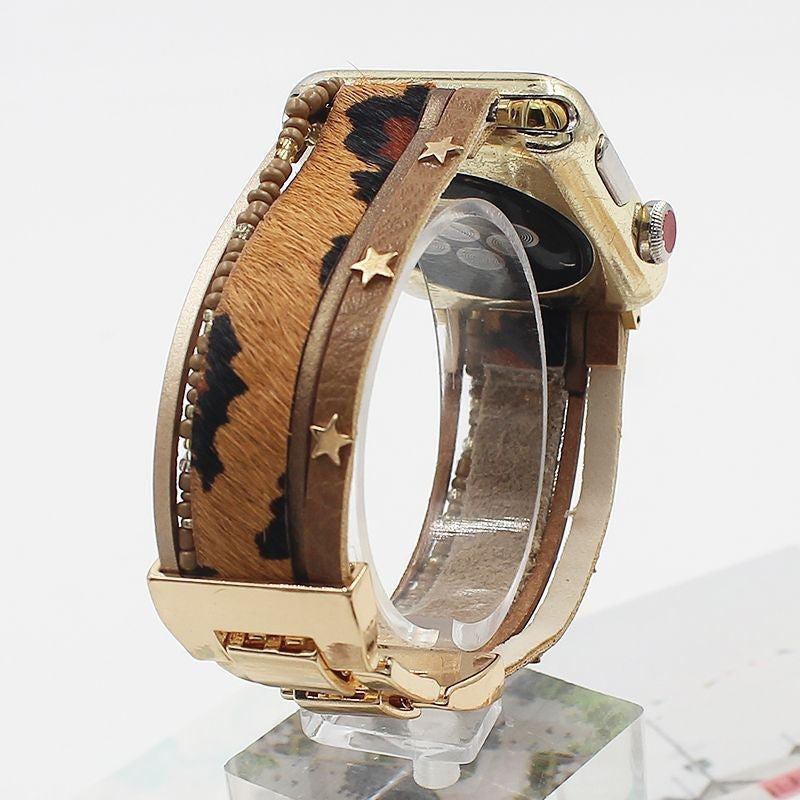 Blinged Out Faux Fur Leather Steel Bracelet Band For Apple Watch Multiple Colors Available