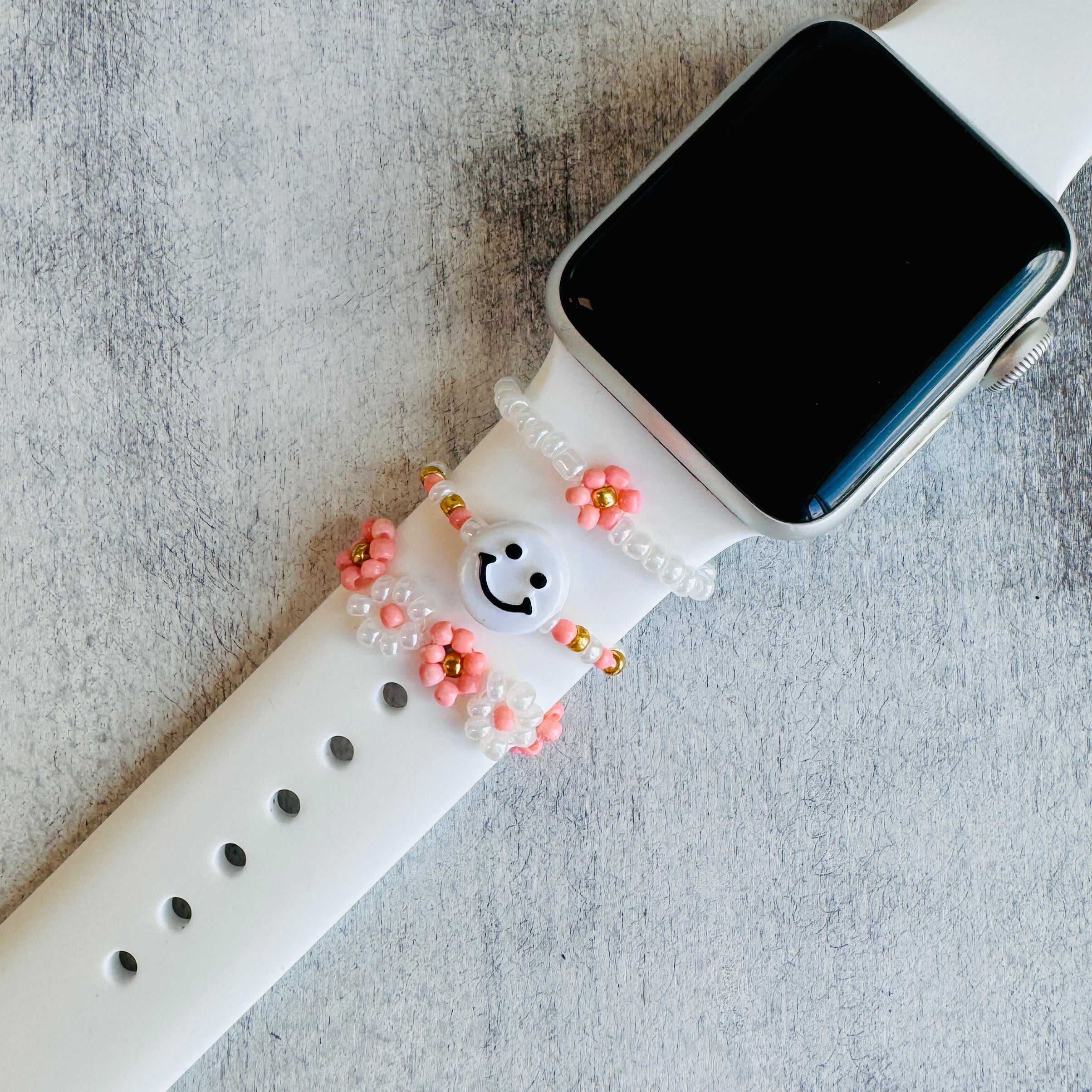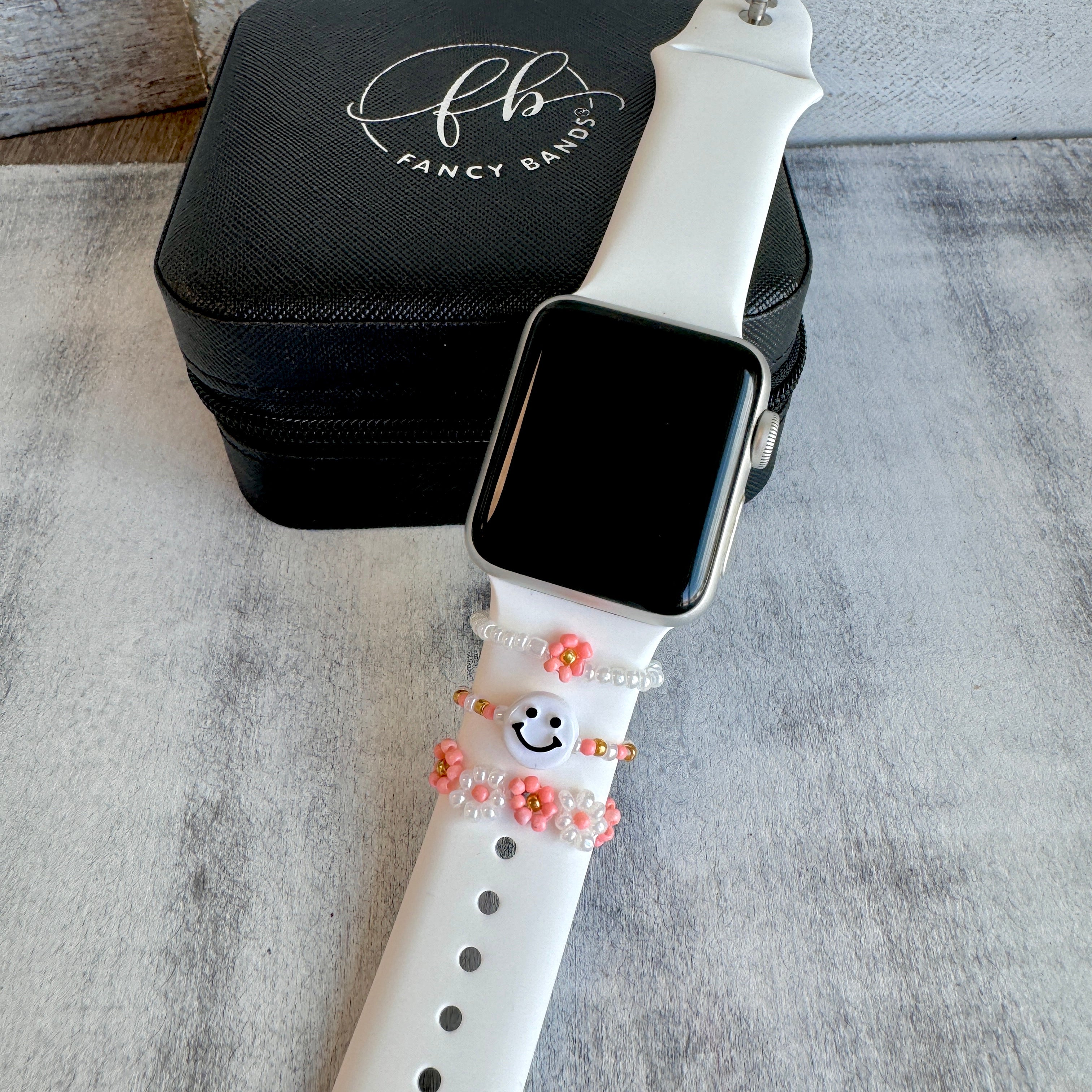 These super cute watch band accessories are suitable for Most Silicone band/leather bands. Designed as a loop ring that slides easily on your watch bands.( Compatible with Apple Watch Silicone Band suitable all Apple series 1-10 & SE, Samsung, & Versa Watch Bands.