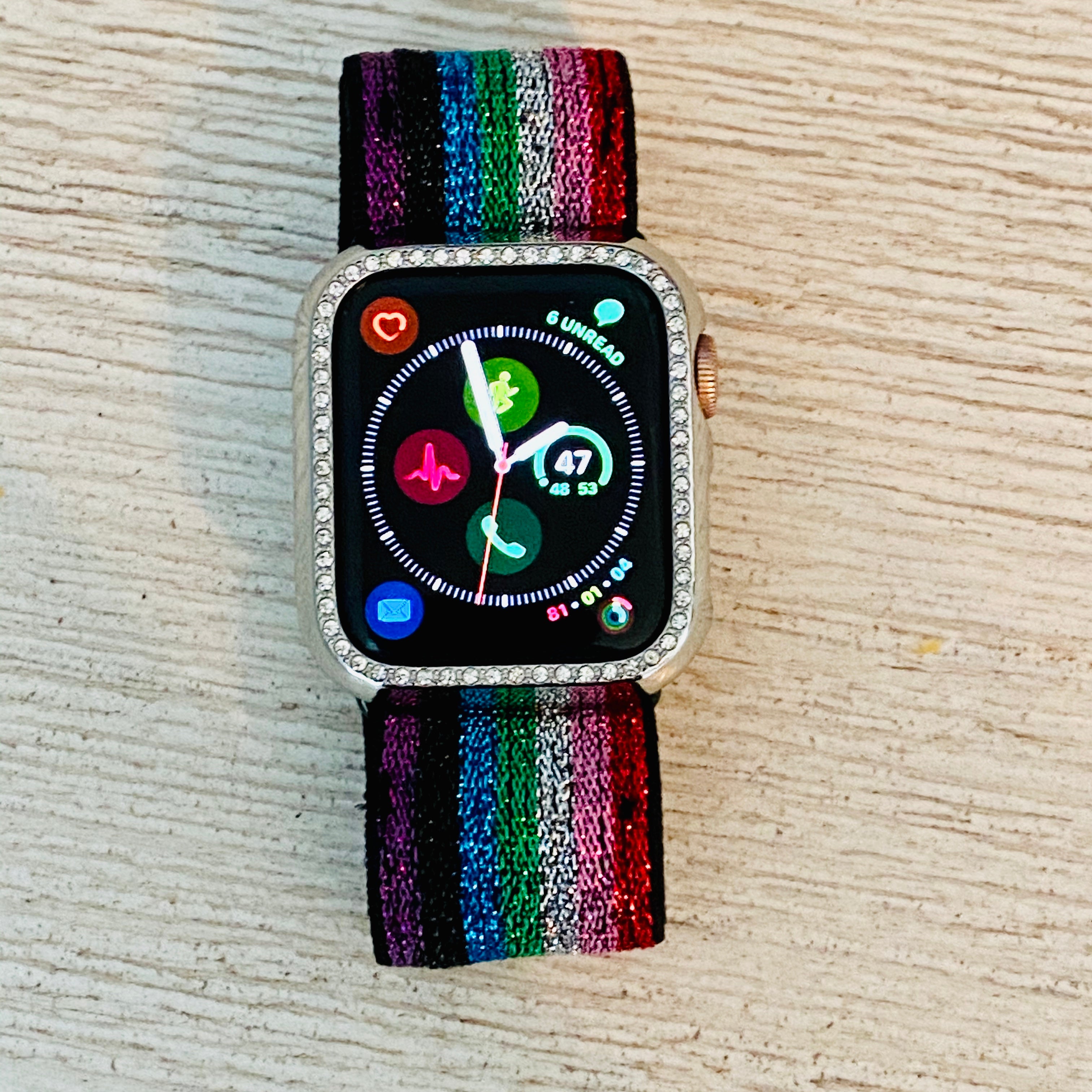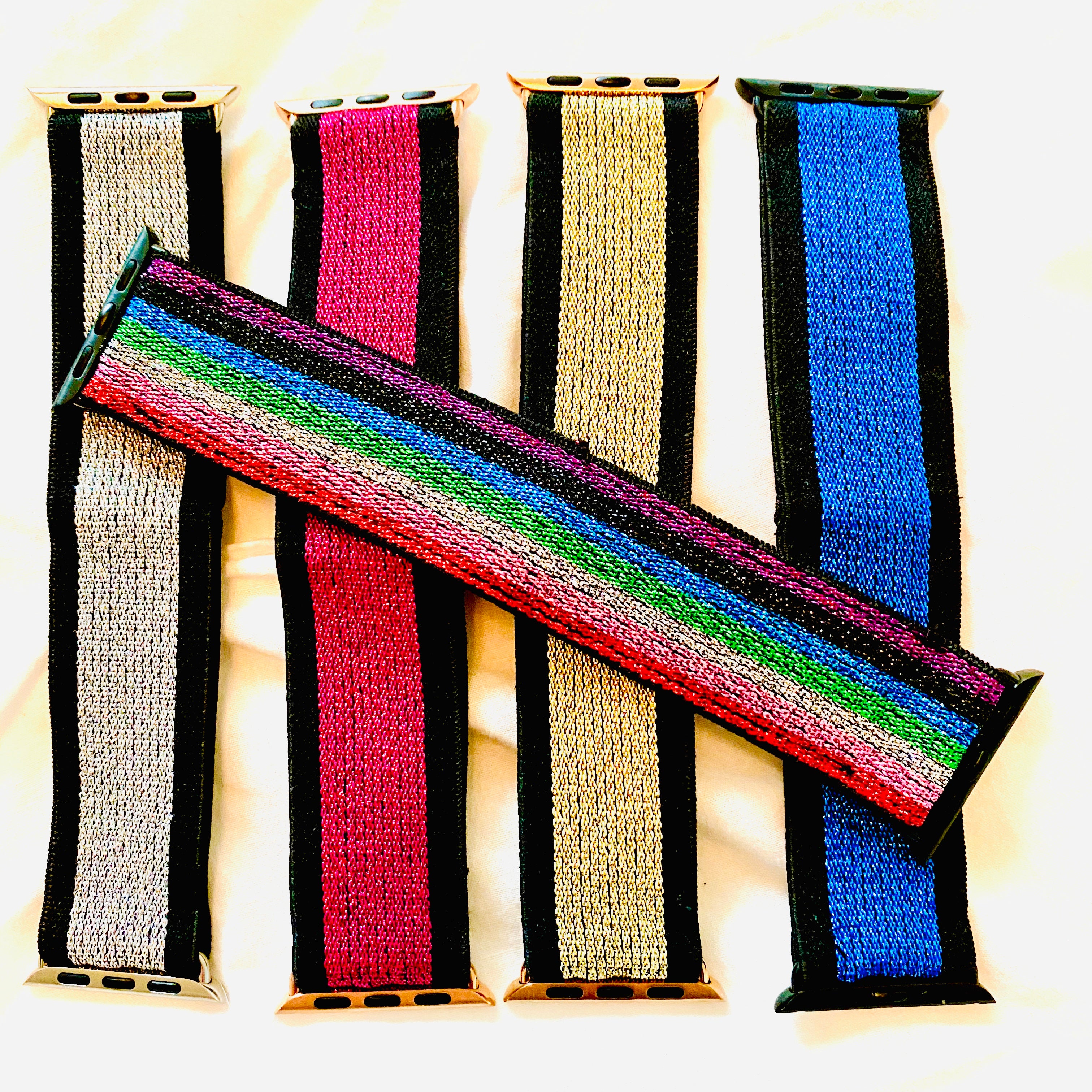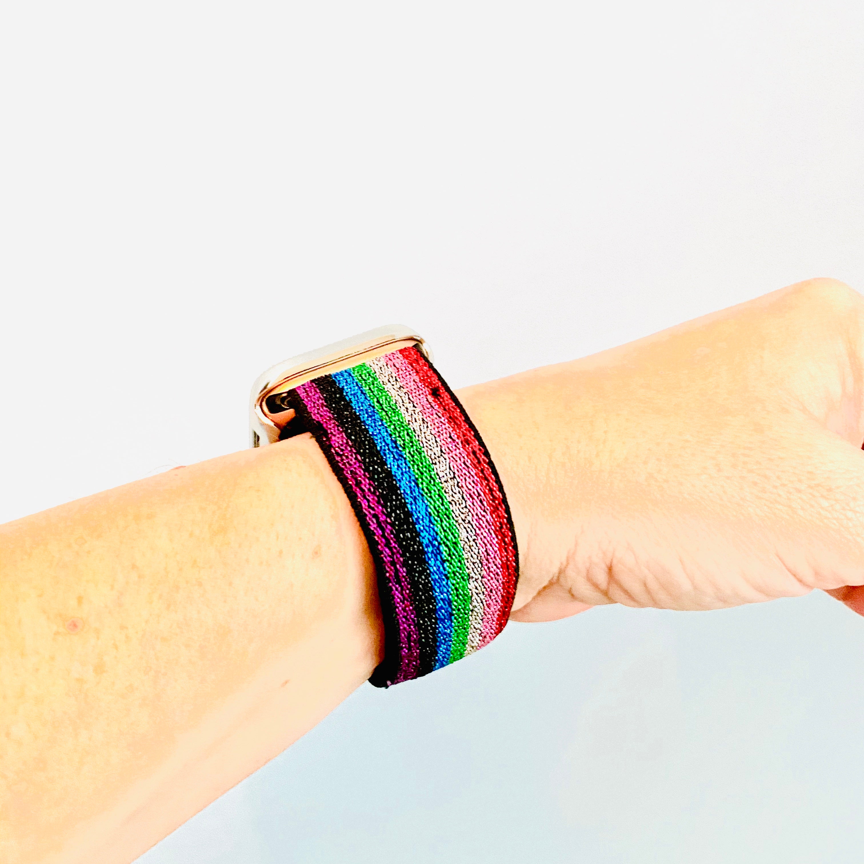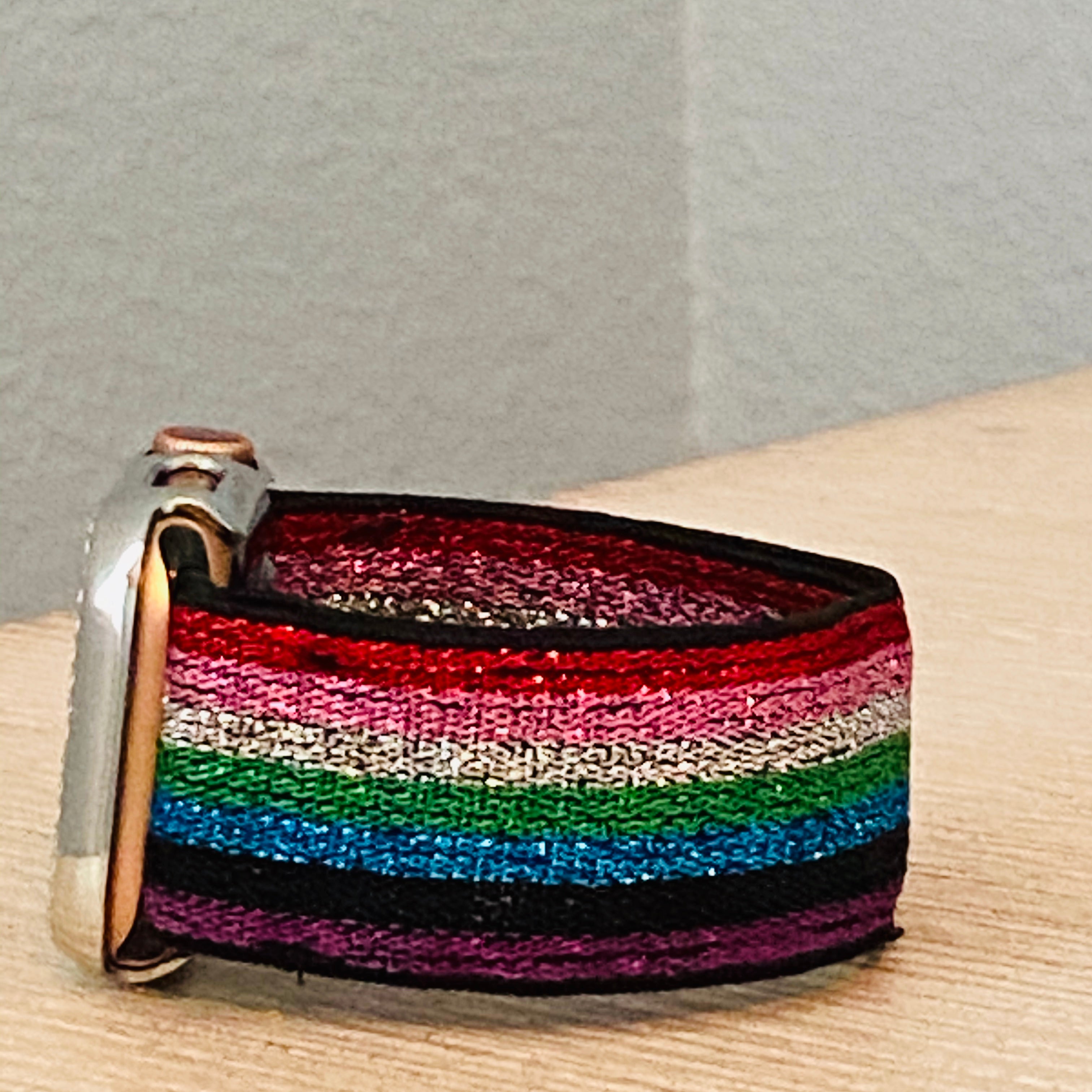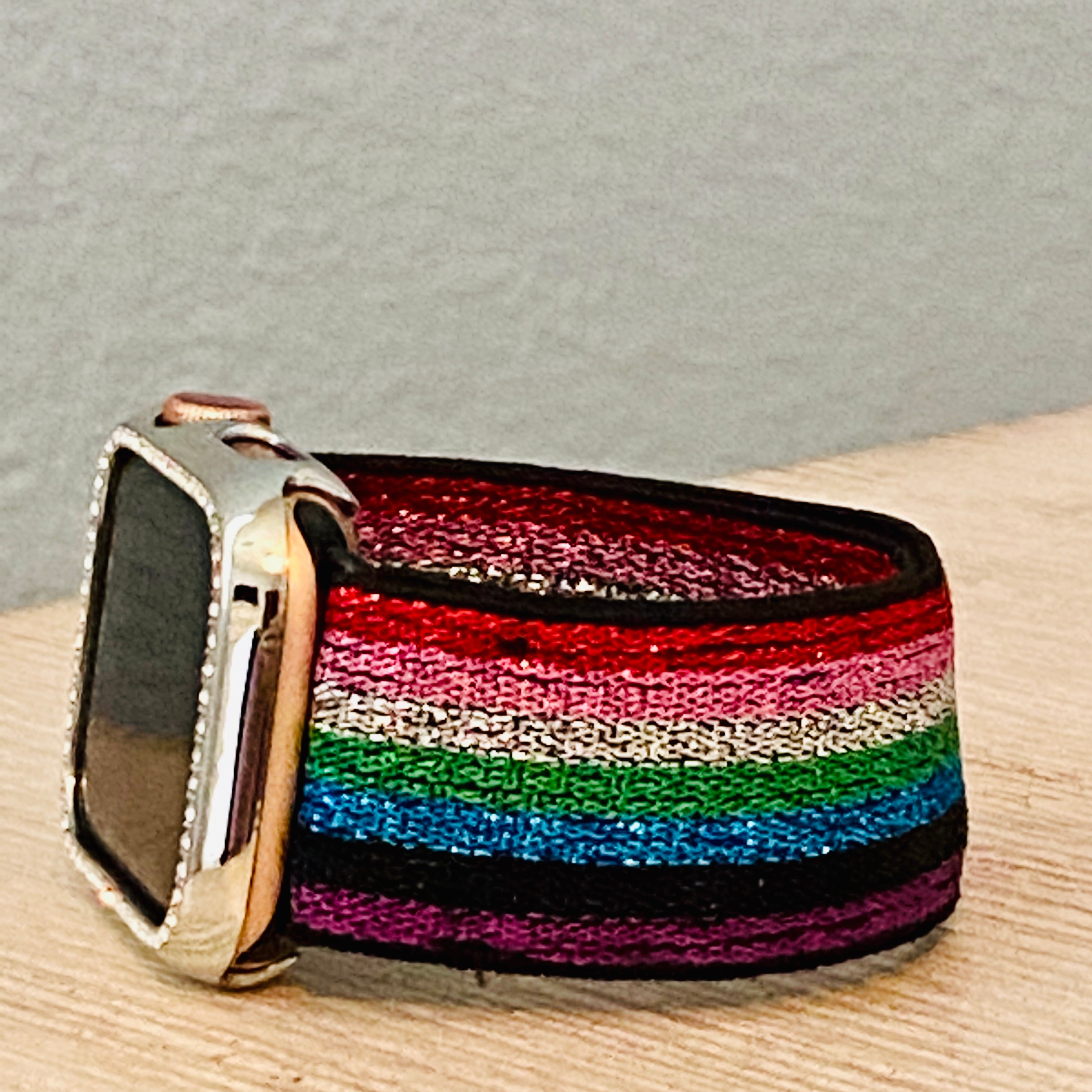 Stretchable Elastic Shimmering Rainbow Print Band For Apple Watch