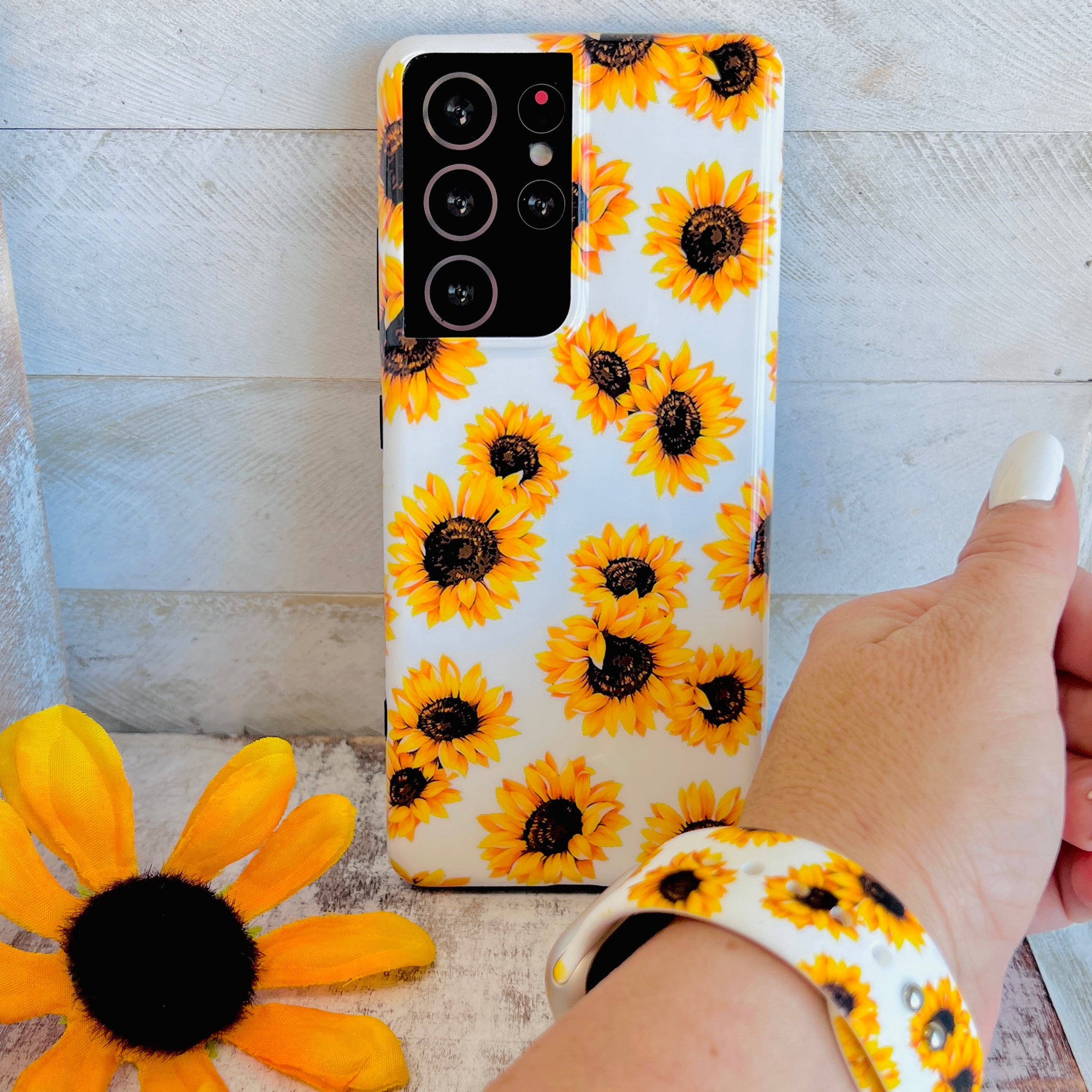 Sunflower White Background Cell Phone Case For Samsung Galaxy