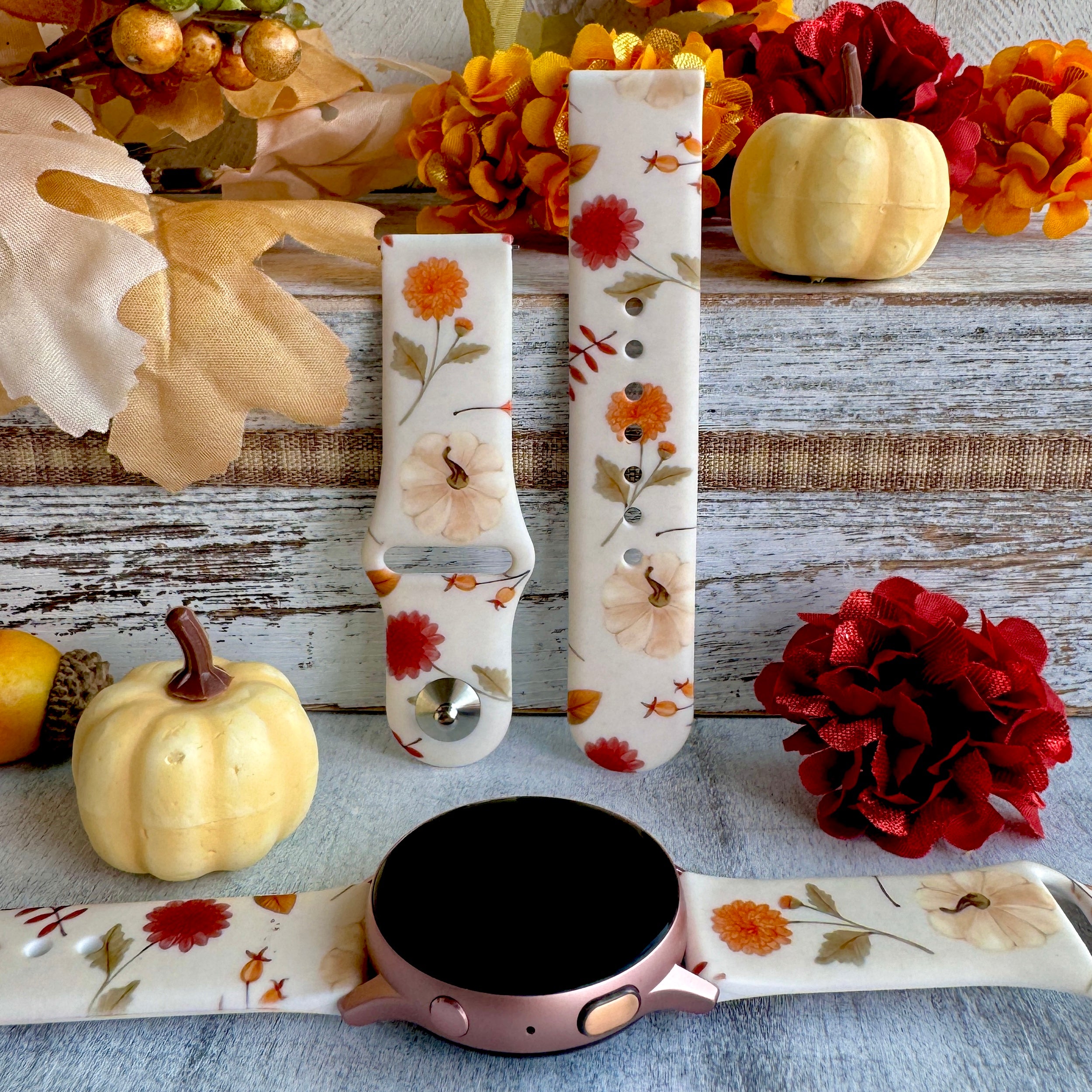 Fall Floral Bliss Print Silicone Band For Samsung Watch