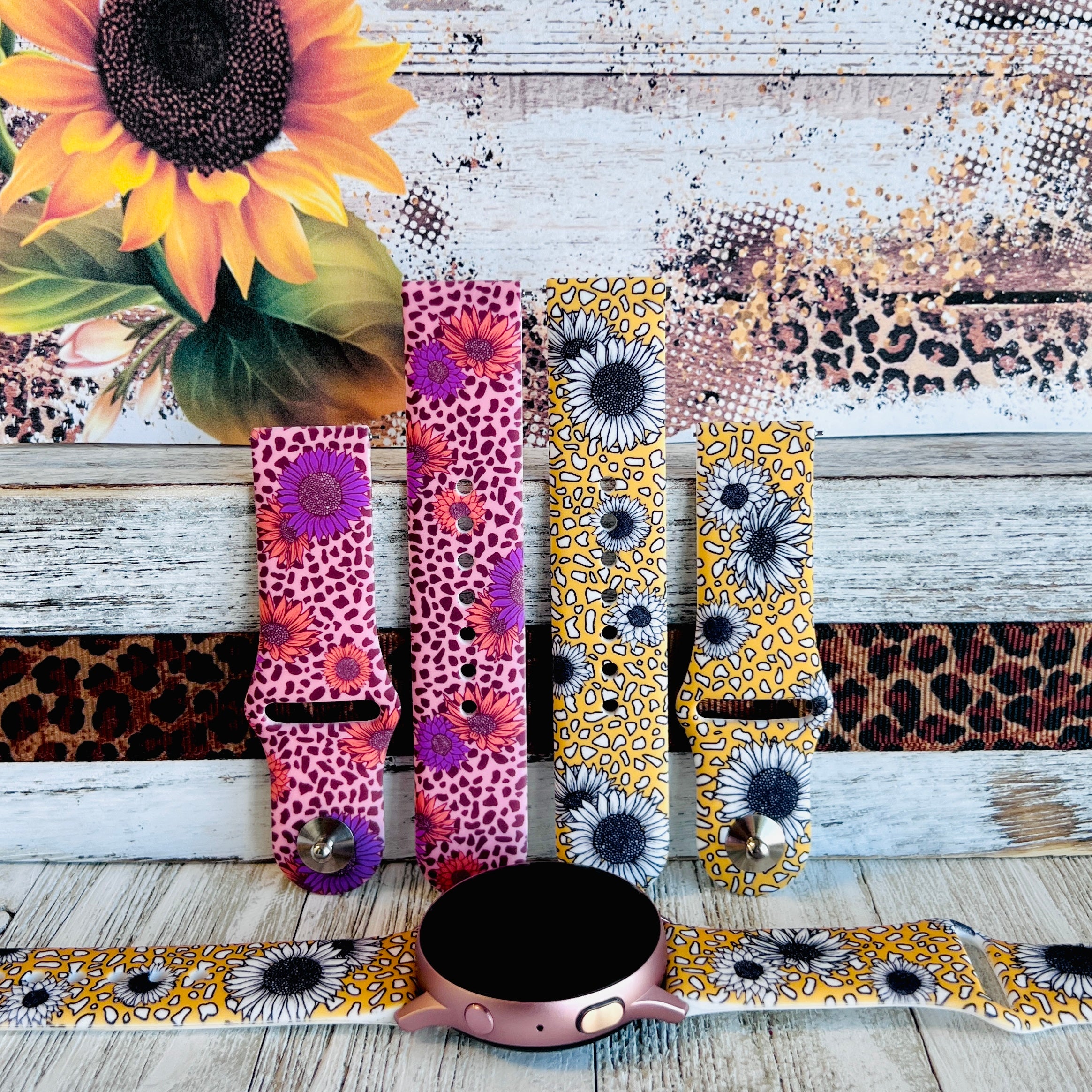 Leopard Sunflower Print Silicone Band For Samsung Watch (Two Colors Available)