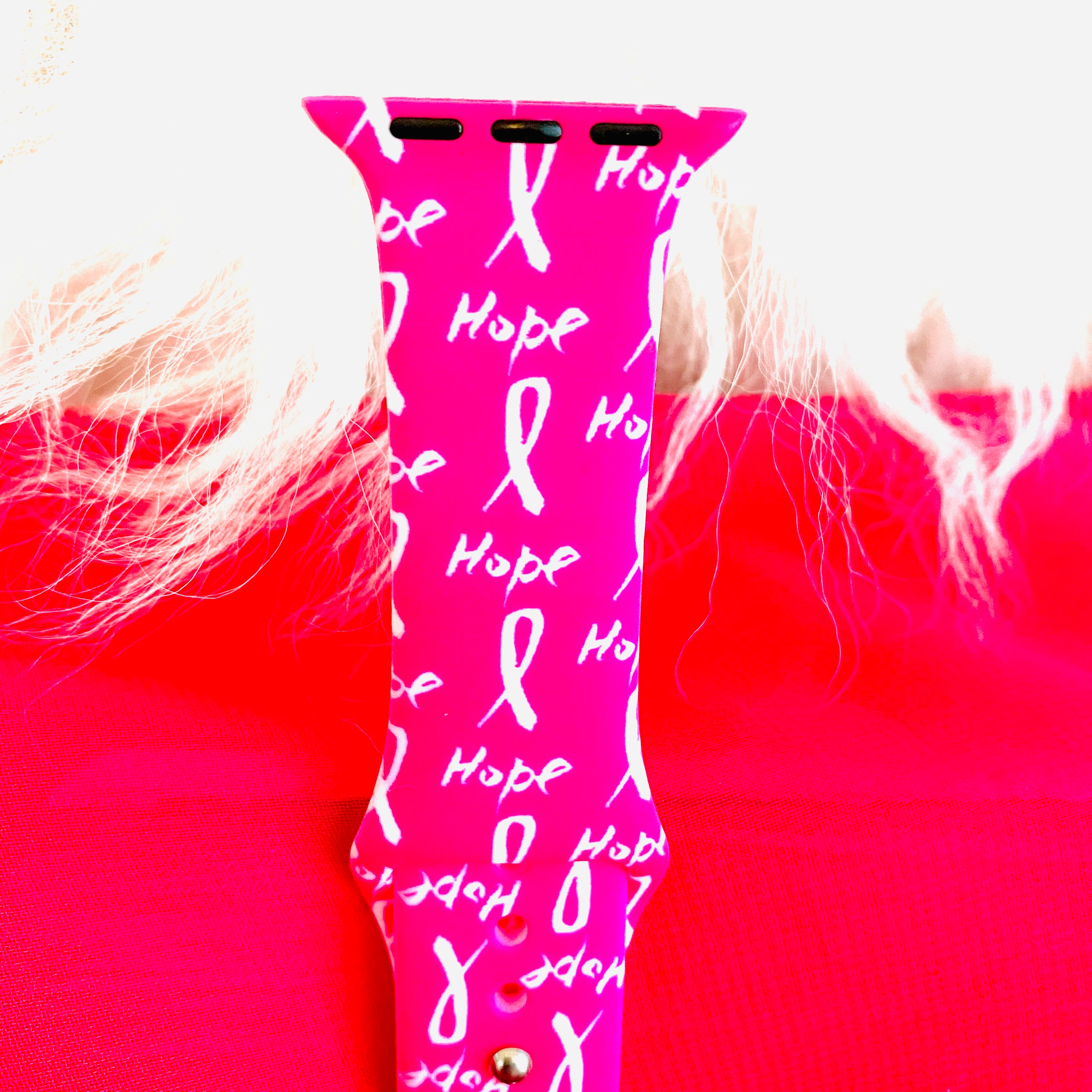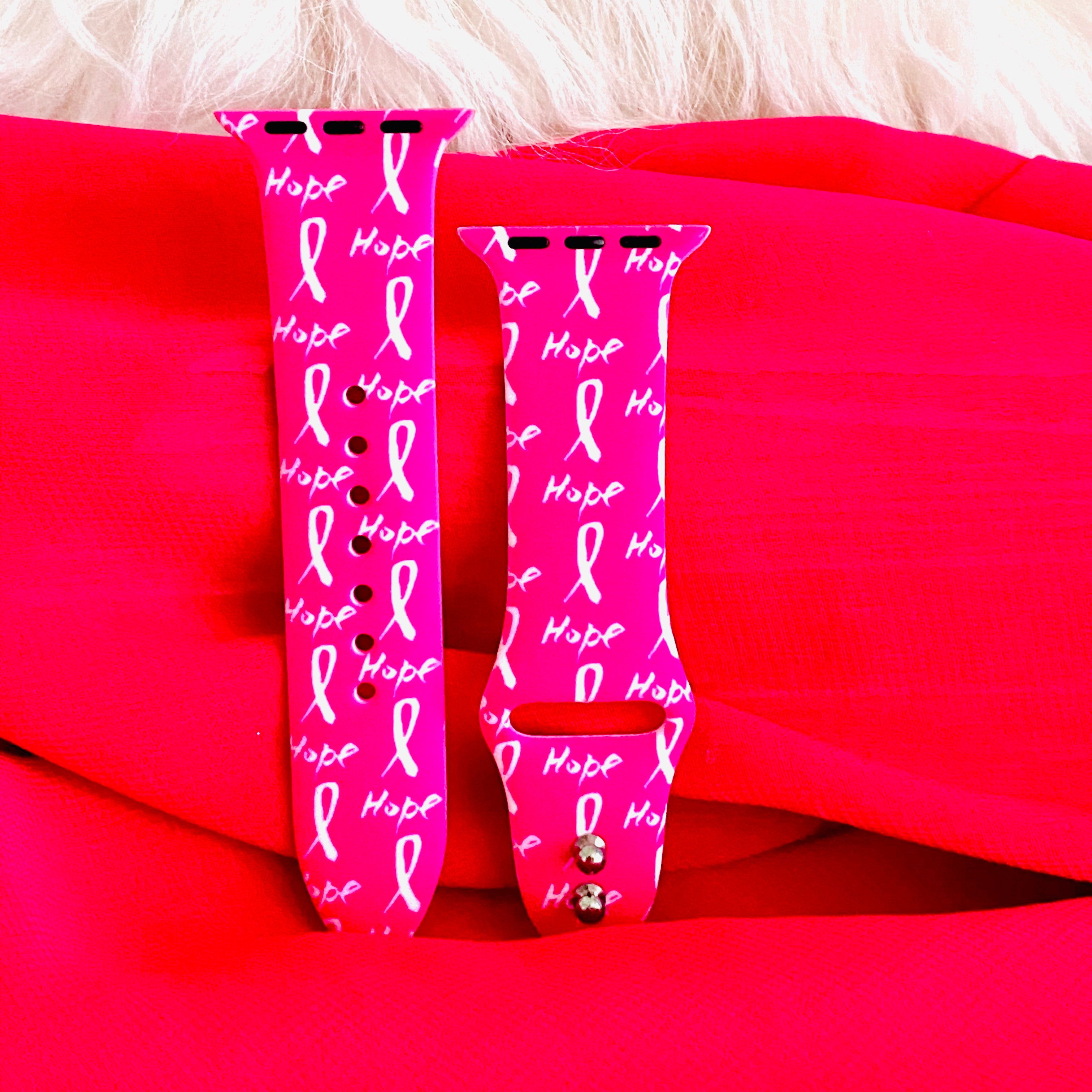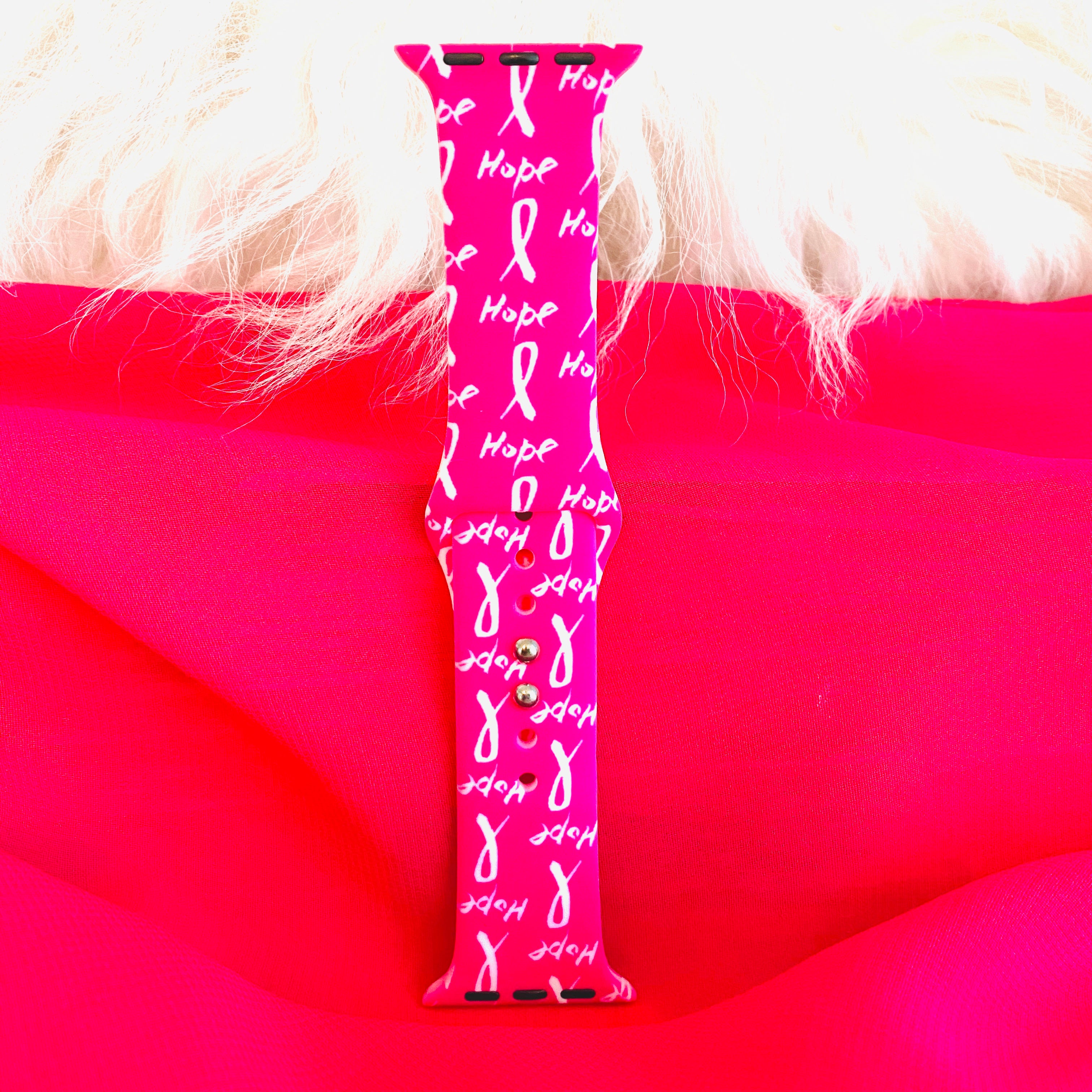 Our signature Hope Print Apple Watch band brings soft pink ribbon energy to your everyday—comfortable, durable, and made to move with you.
