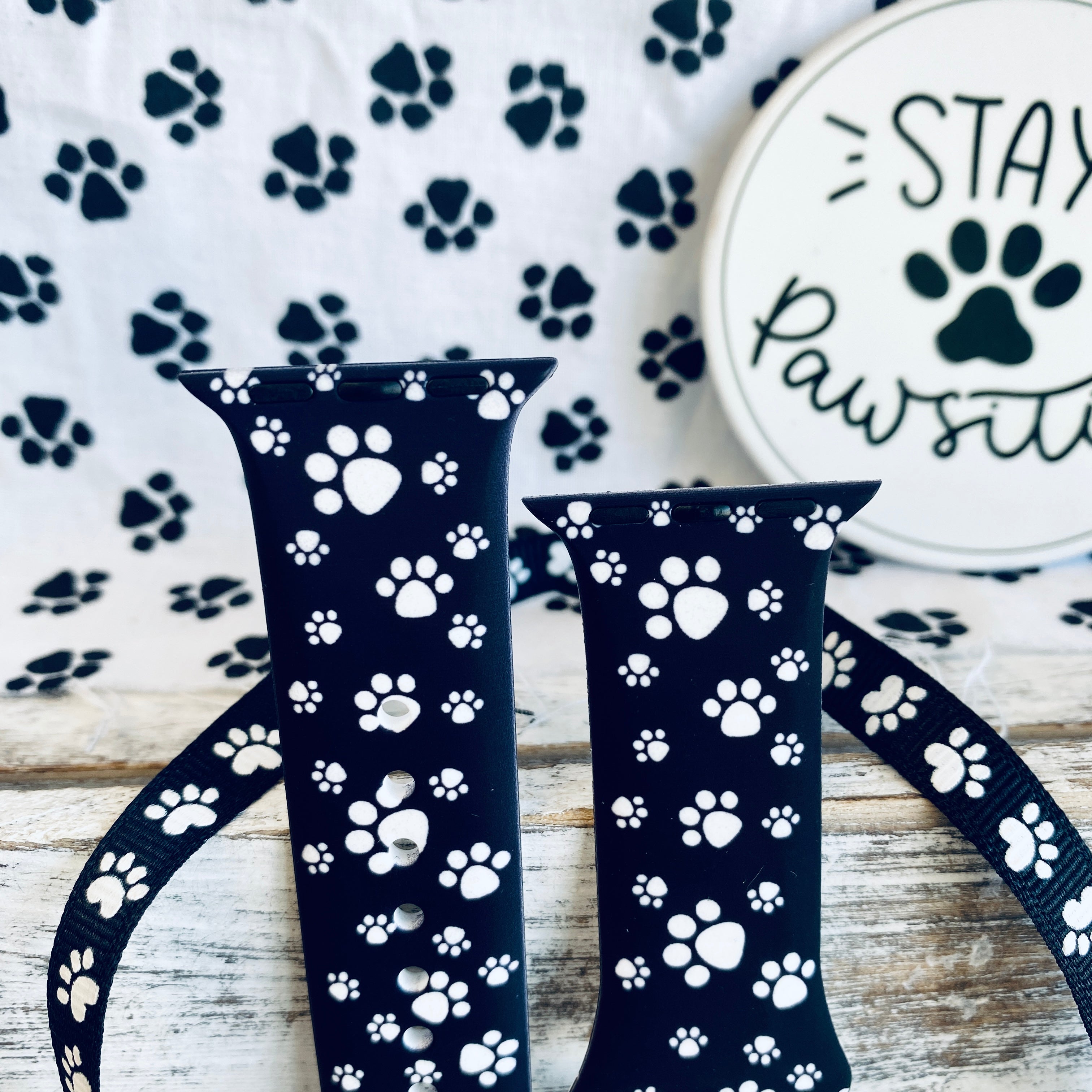 Paw Print Black Background Silicone Band For Apple Watch