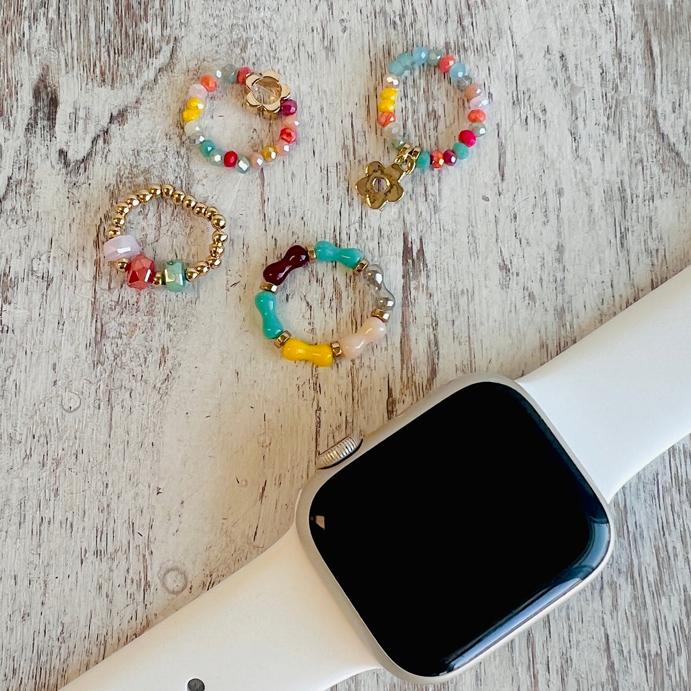 These super cute watch band accessories are suitable for Most Silicone band/leather bands. Designed as a loop ring that slides easily on your watch bands.( Compatible with Apple Watch Silicone Band suitable all Apple series 1-10 & SE, Samsung, & Versa Watch Bands.
