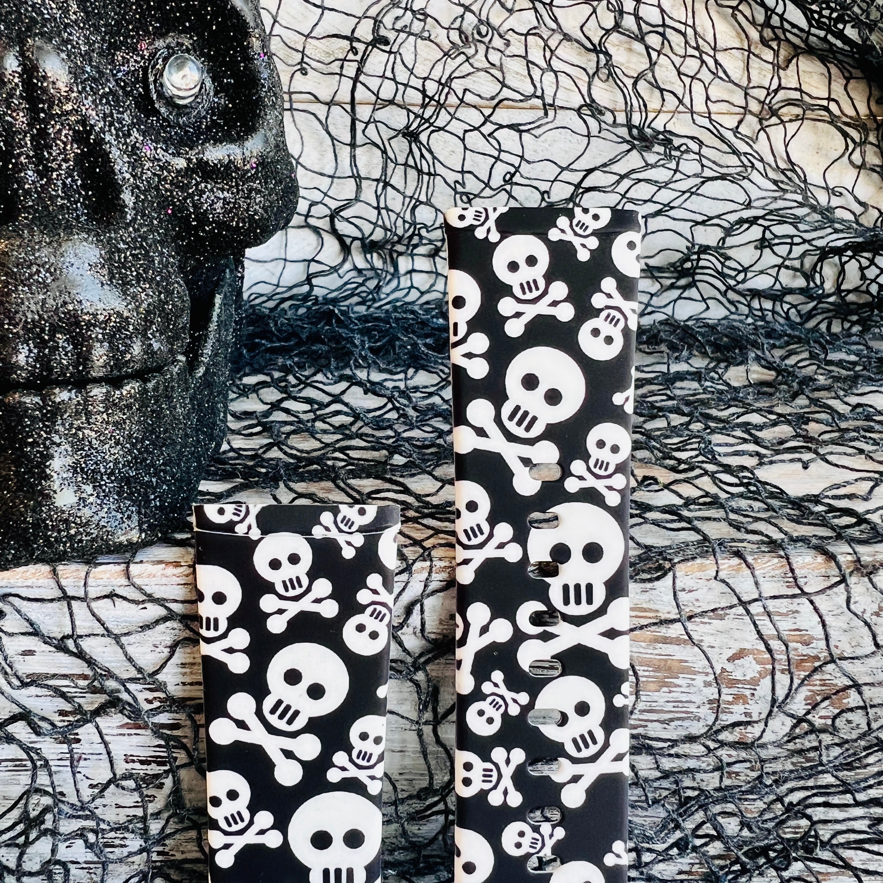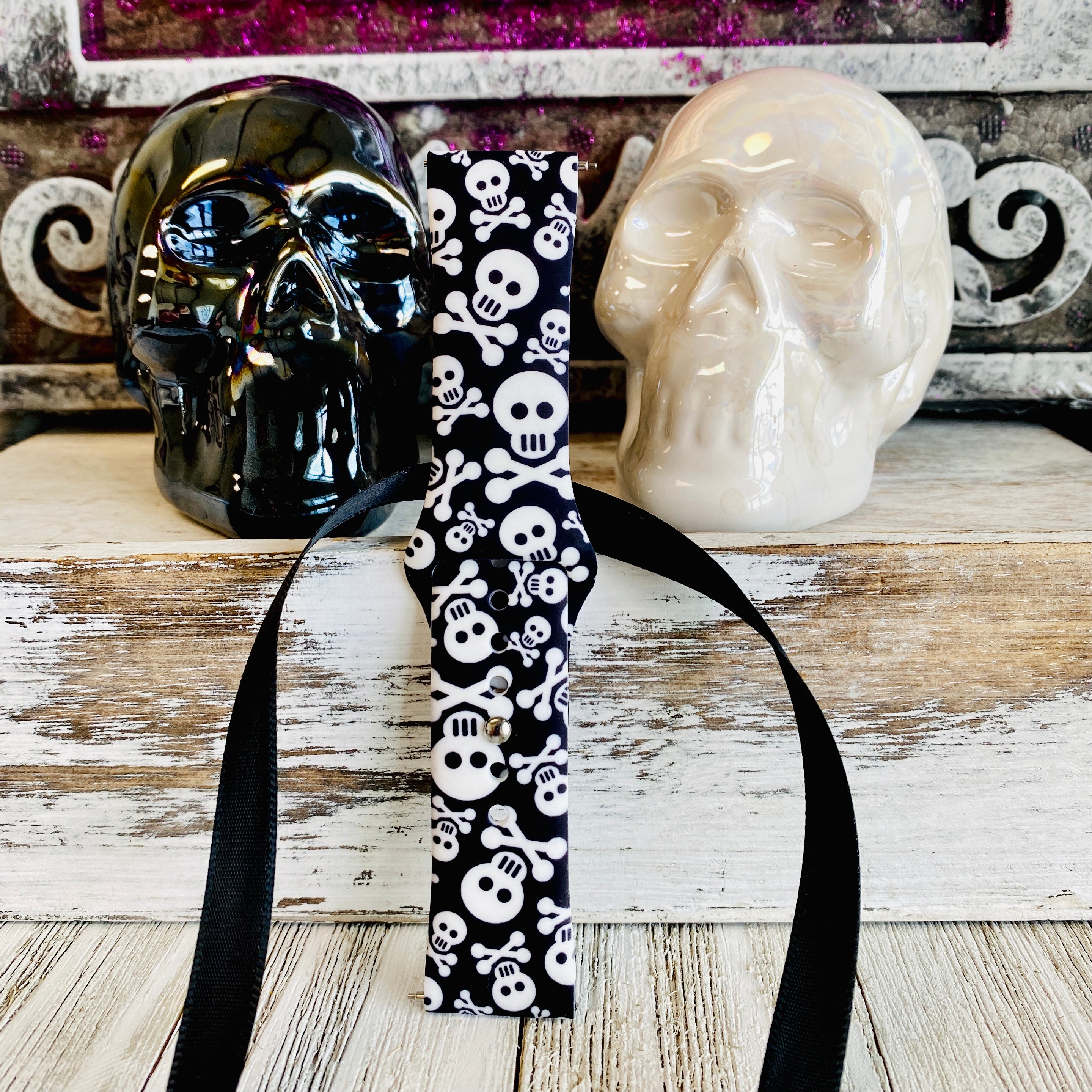 - Material lavable: la correa de silicona con estampado de calavera y tibias cruzadas para reloj Fitbit Versa 1/2 está hecha de silicona suave que es flexible, liviana, cómoda y transpirable, a la vez que es resistente al sudor, a la suciedad y al agua.