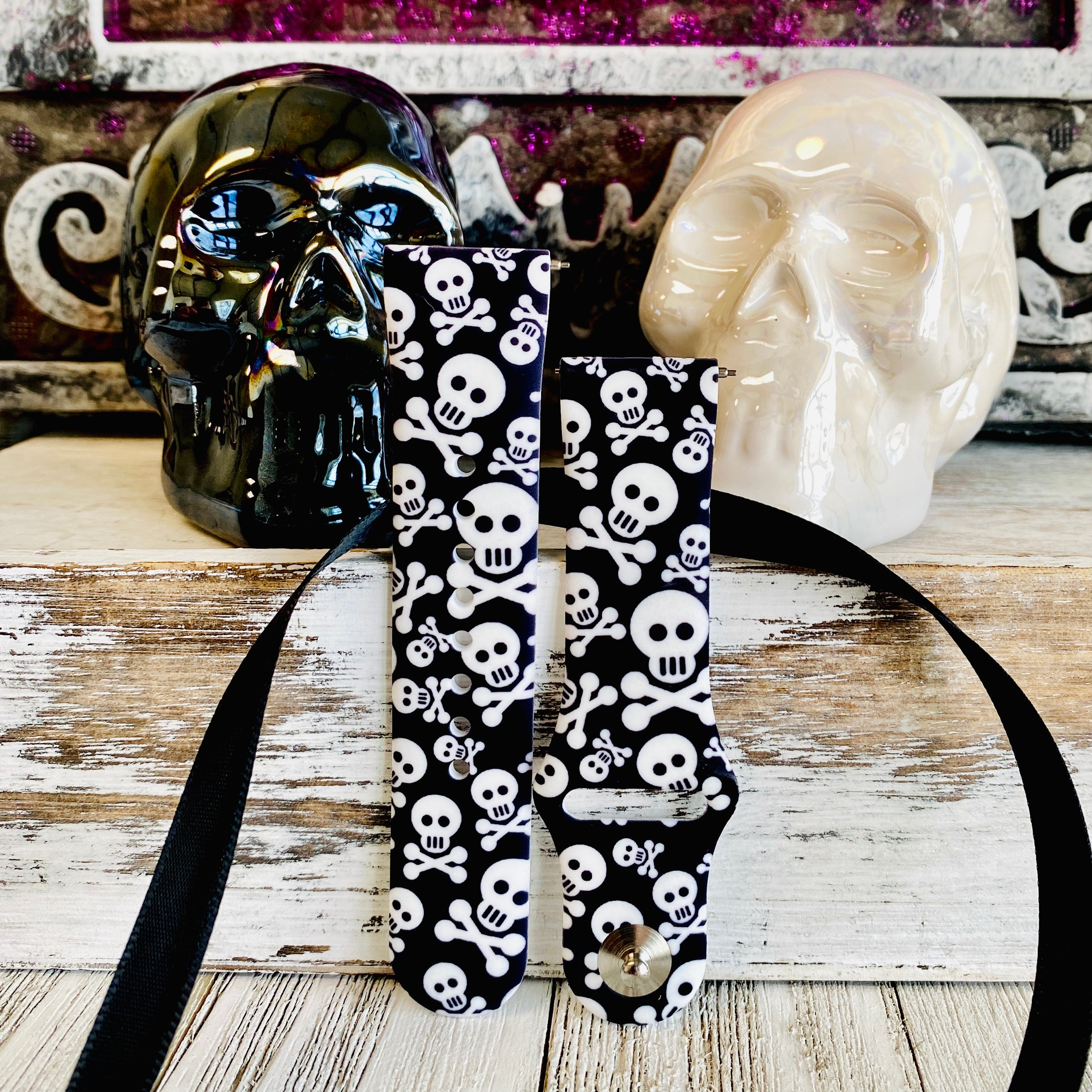 Banda de silicona con estampado de calavera y tibias cruzadas para Fitbit Versa 1/2
