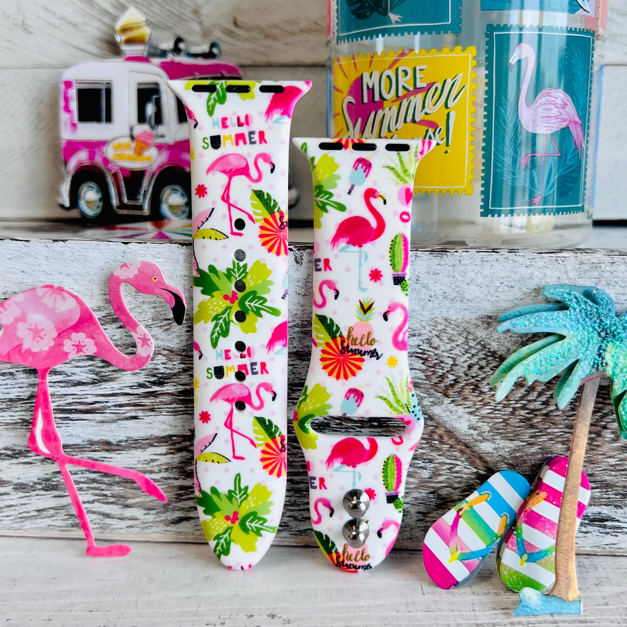 Correa de silicona con estampado de flamencos veraniegos para Apple Watch