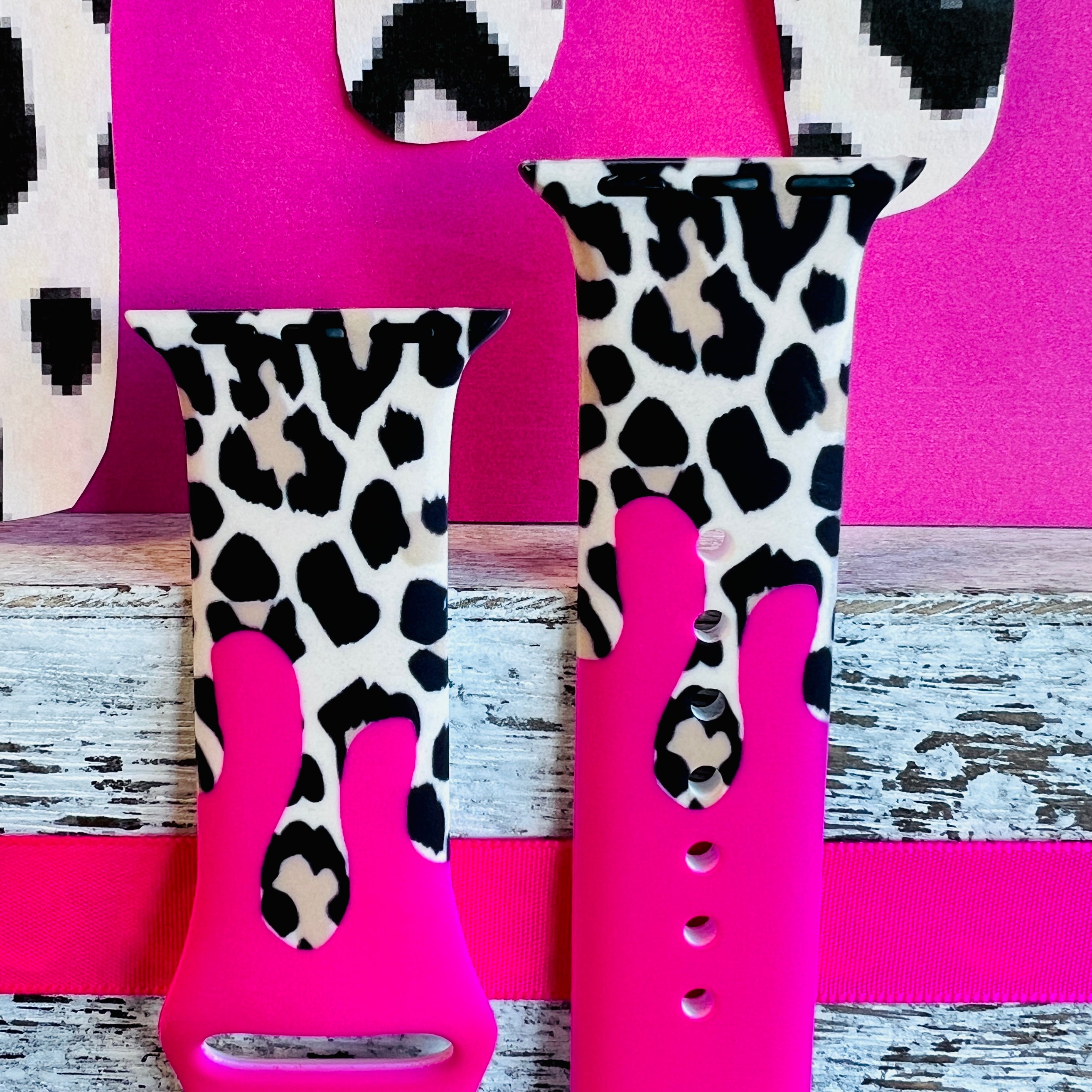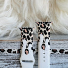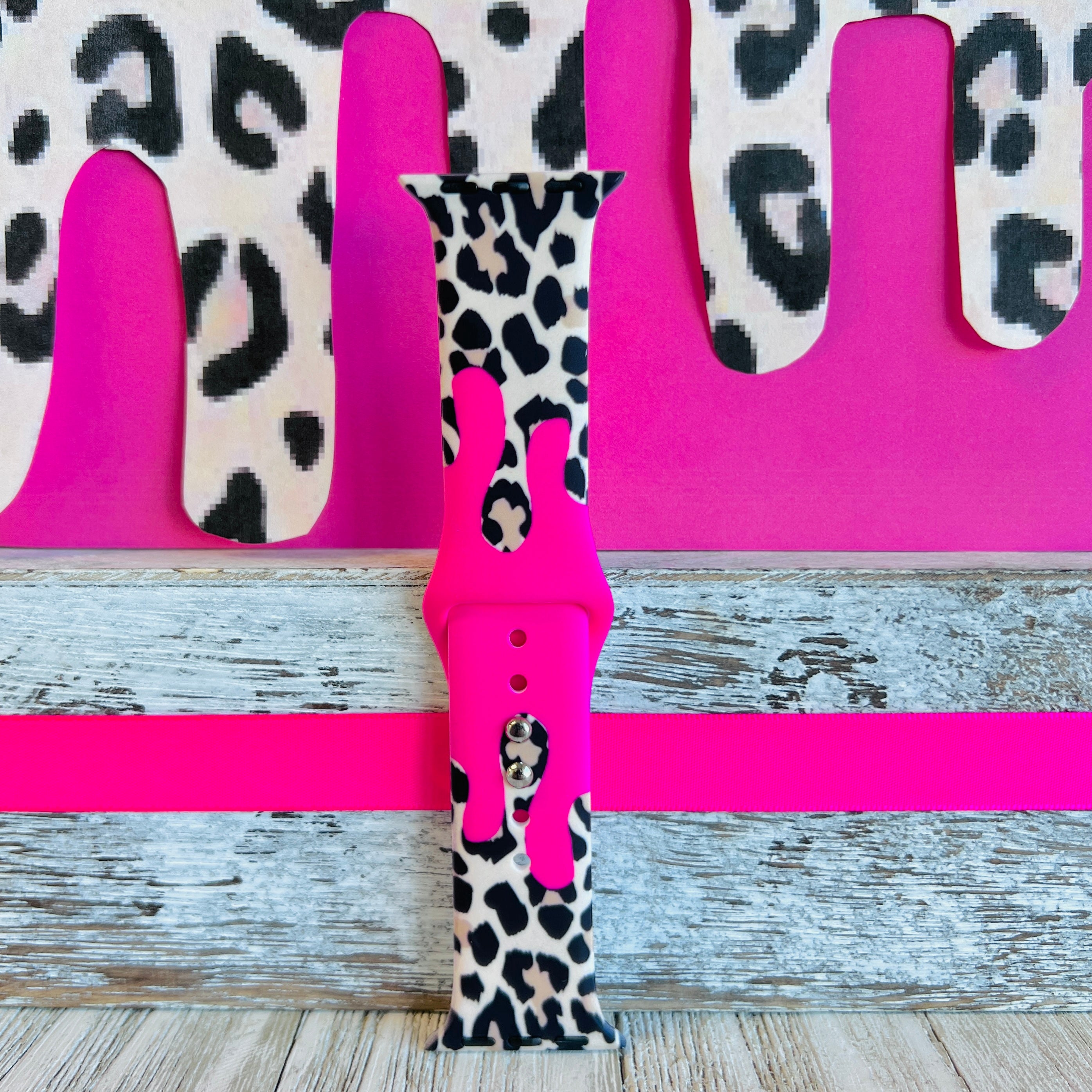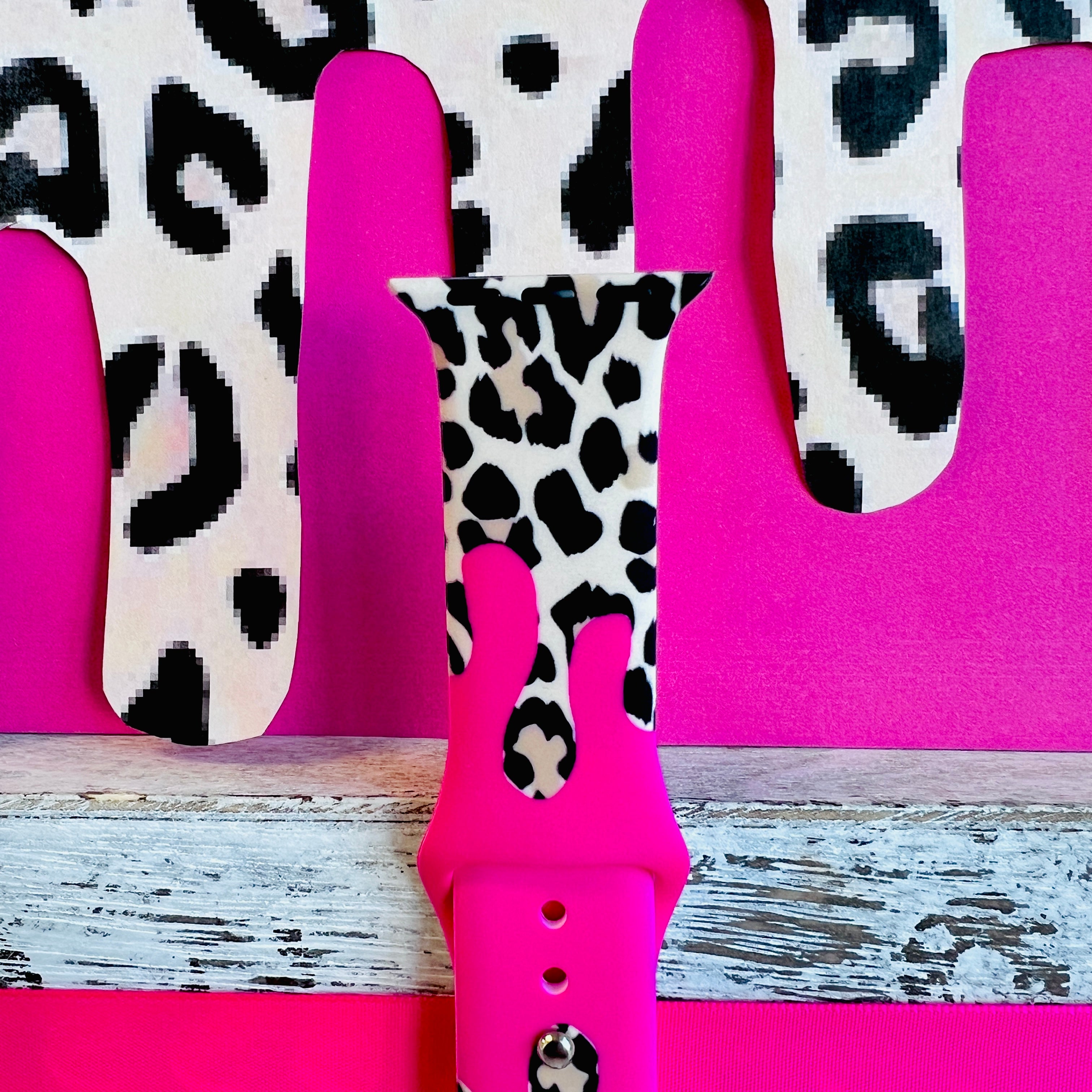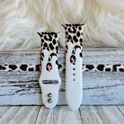Banda de silicona con estampado de fondo blanco y goteo de leopardo para Apple Watch
