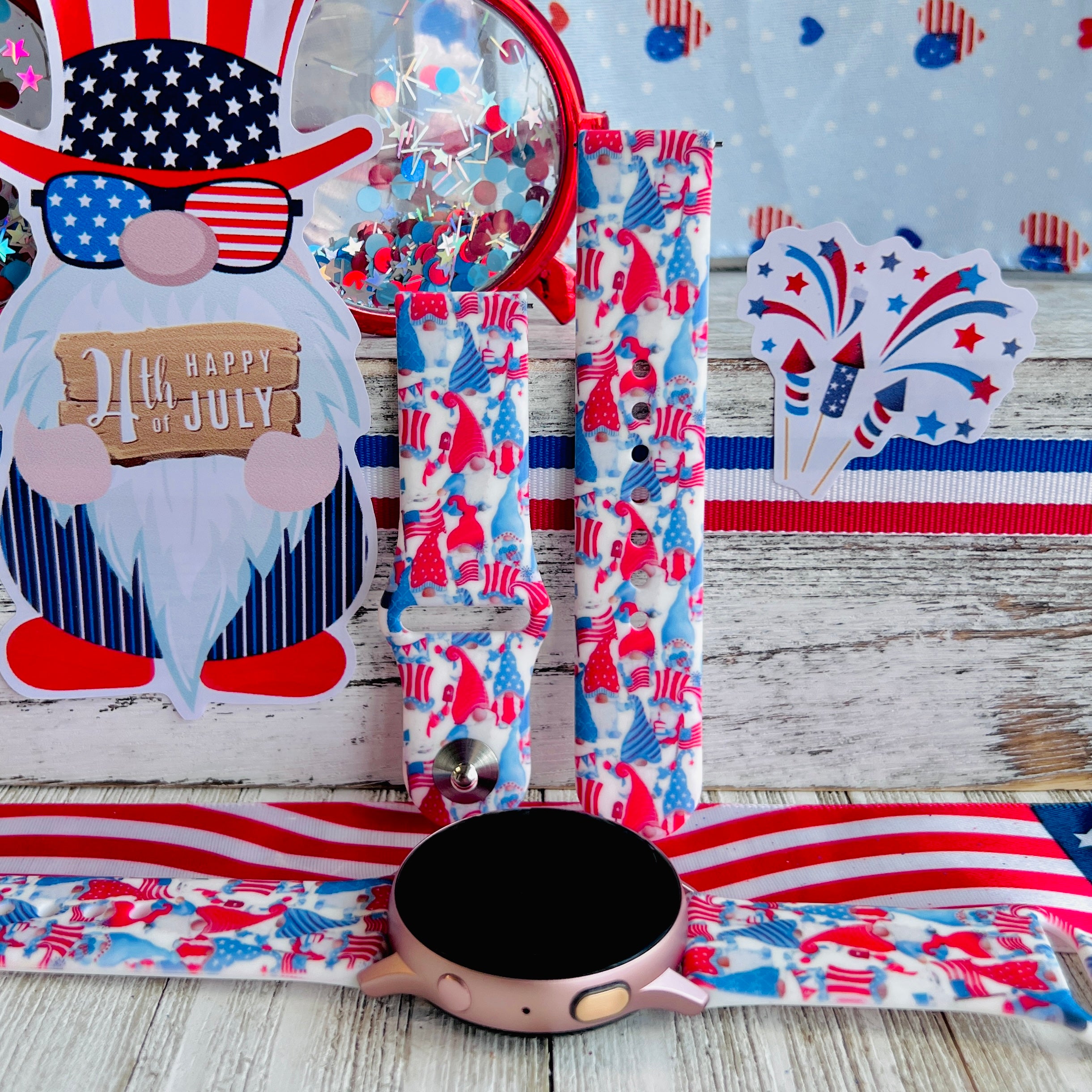 Banda de silicona con estampado de gnomos patrióticos para reloj Samsung