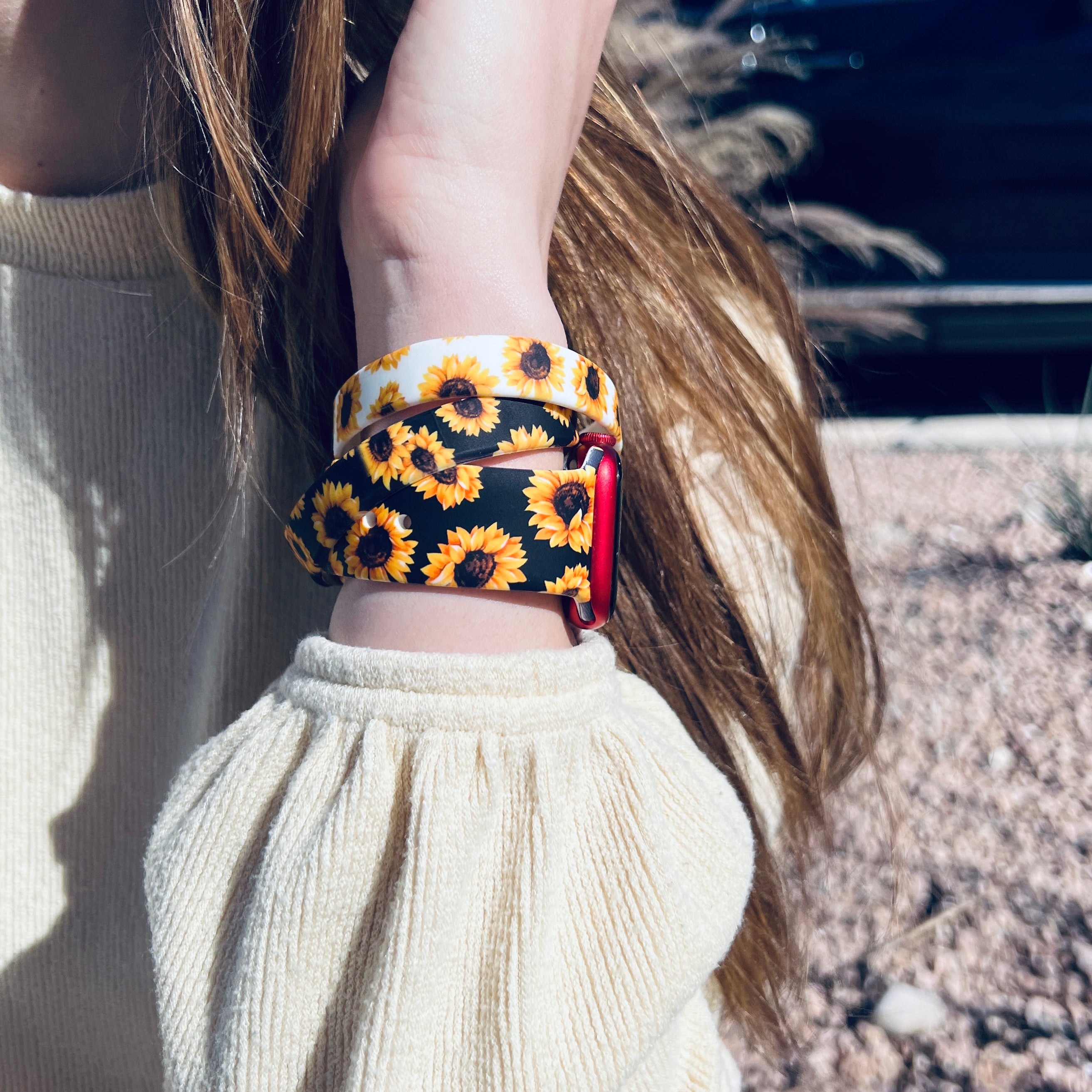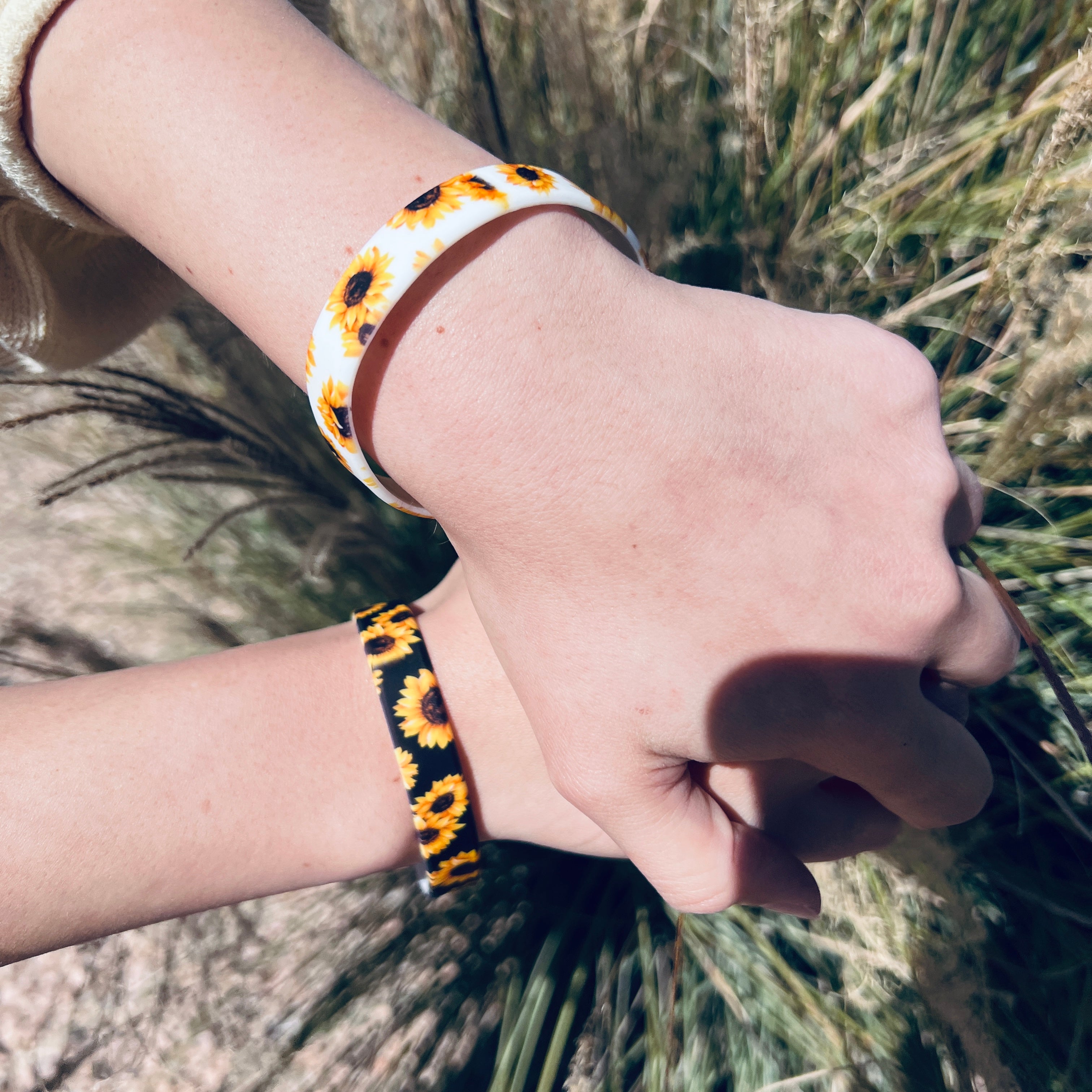 La pulsera de silicona de girasol se apila en dos colores disponibles