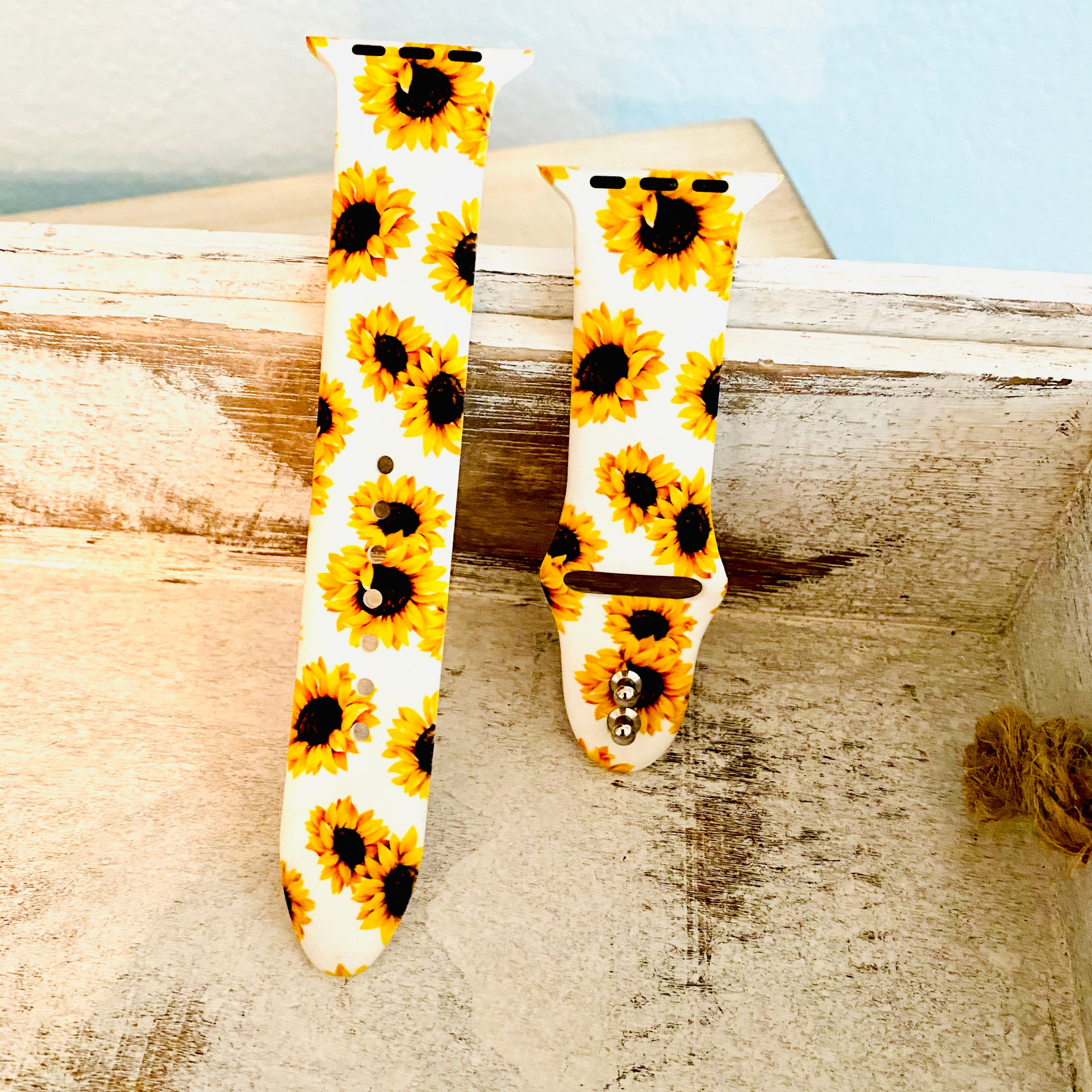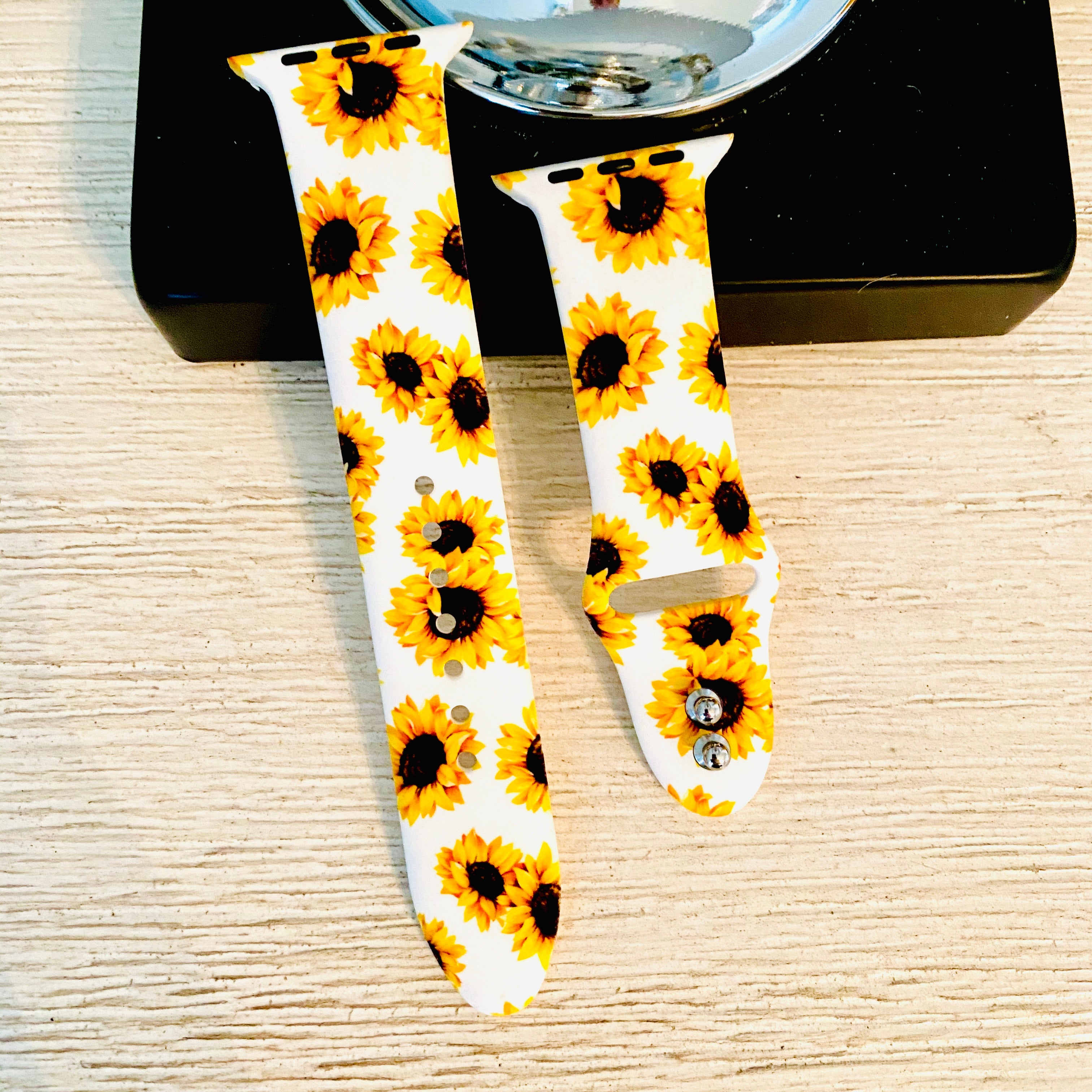Banda de silicona con estampado de fondo blanco de girasol para Apple Watch