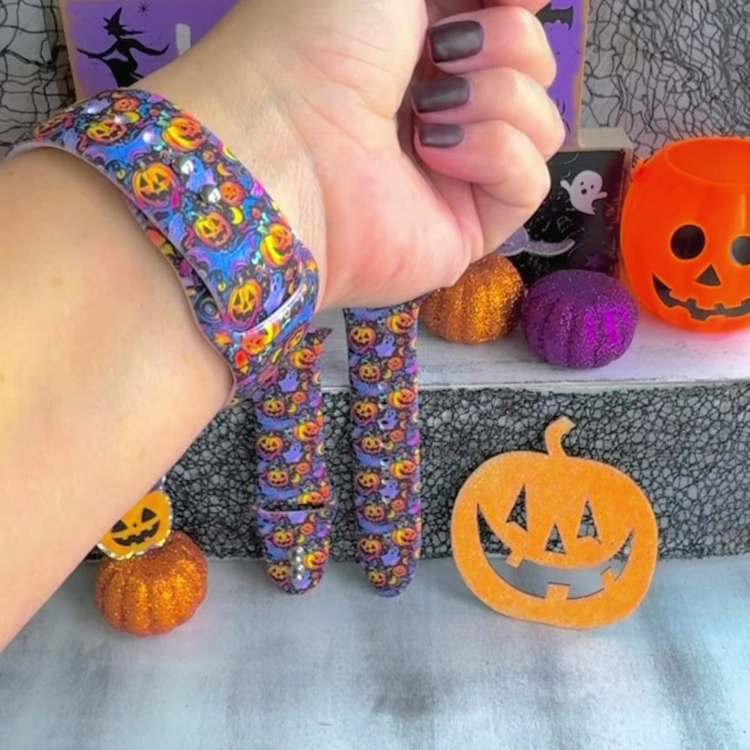 Turn up the glow! Jack-O-Lantern Jive dances with bright pumpkins, cute ghosts, stars, and swirling neon accents over a midnight base. The soft-touch silicone stays feather-light, rinses clean in seconds, and adds instant party energy to coffee runs, gym sessions, and Halloween nights out.