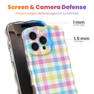This multi-colored gingham iPhone case is precision-molded for specific iPhone models and is fully compatible with official Apple MagSafe technology. The slim profile ensures compatibility with most standard screen protectors.