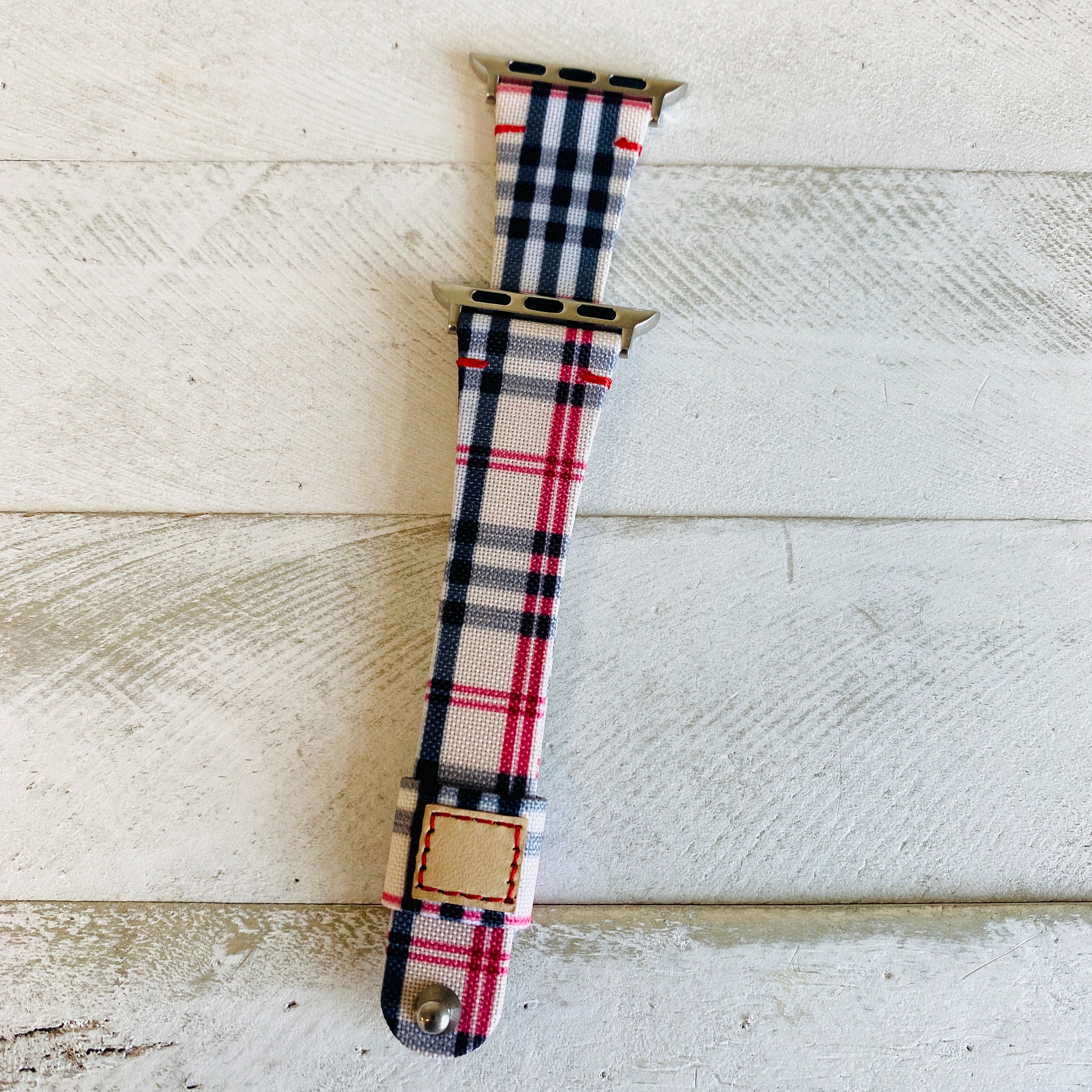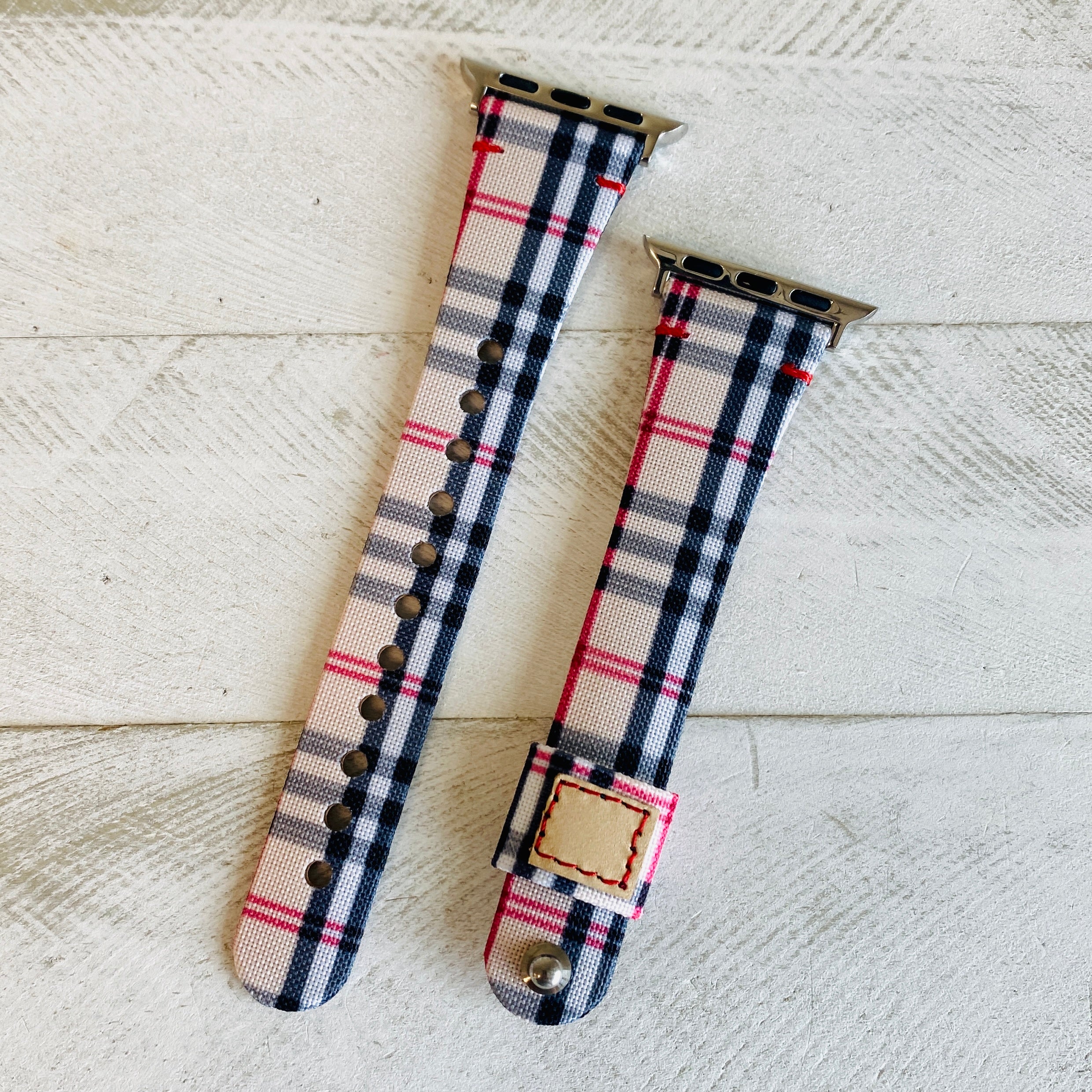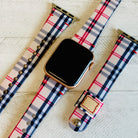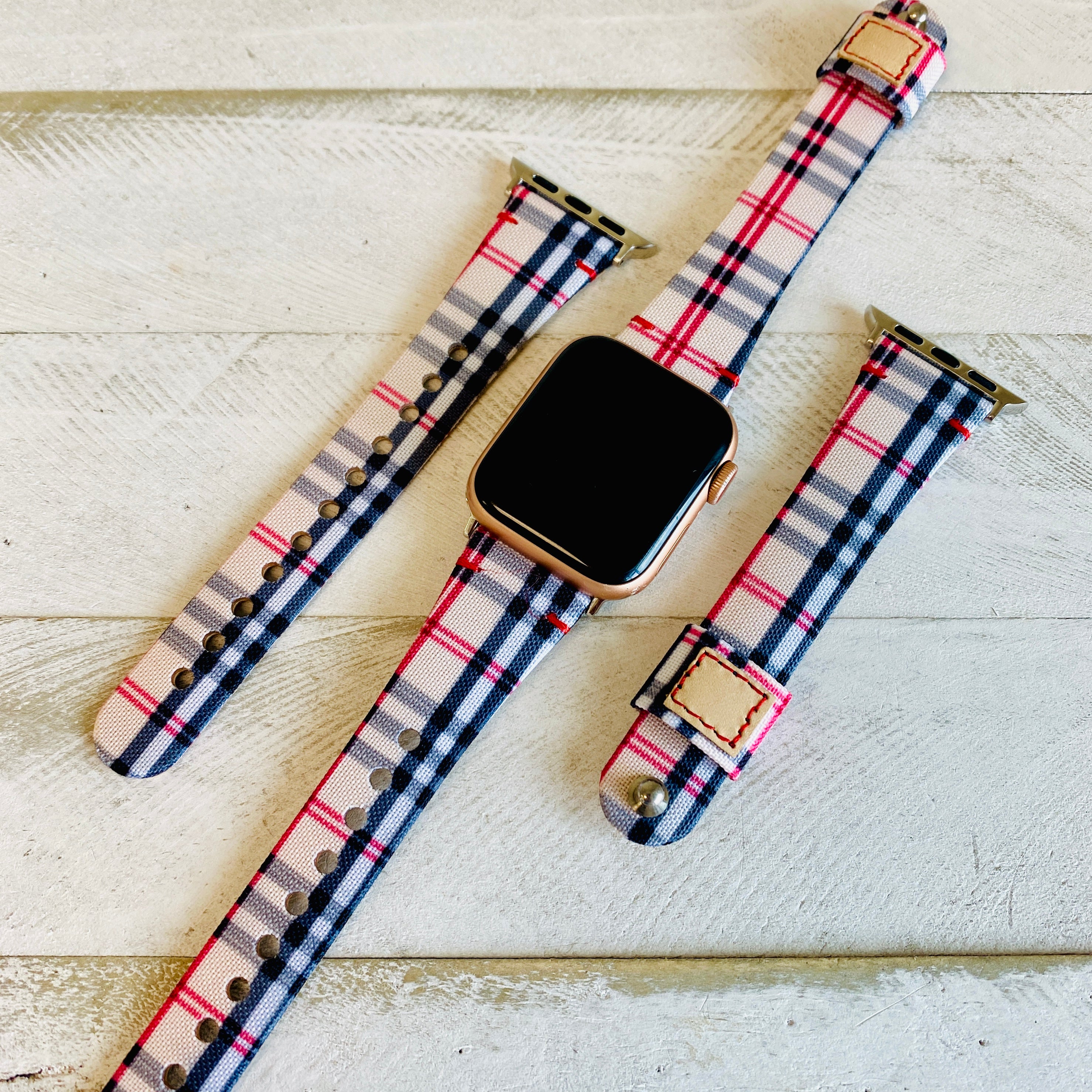 Correa delgada forrada de cuero de lona a cuadros para Apple Watch