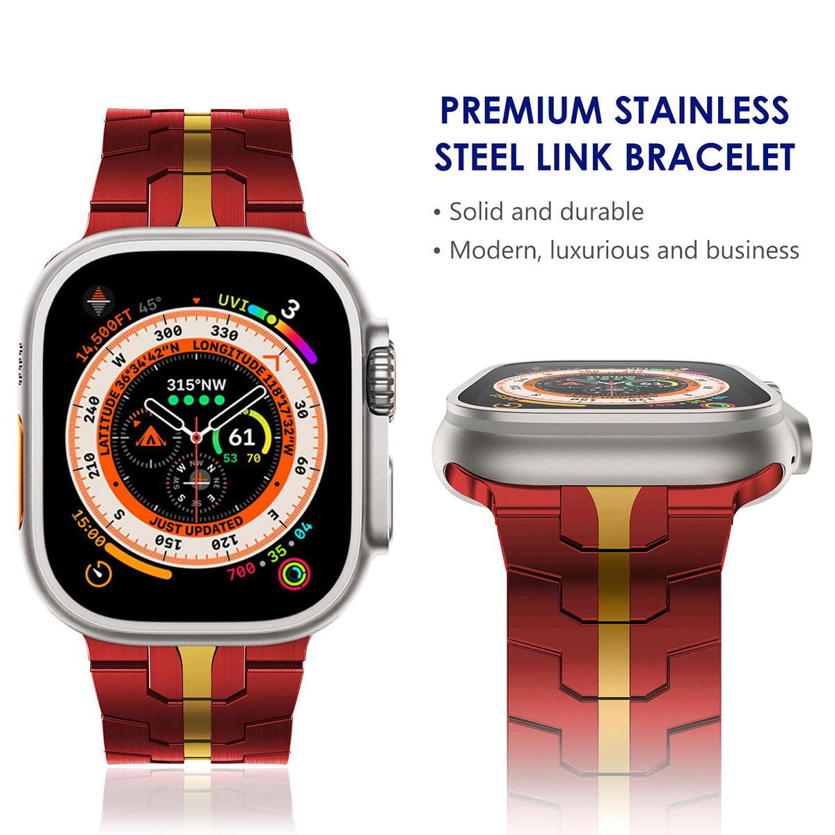Banda de enlace de dos tonos de acero inoxidable de lujo para Apple Watch, varios colores disponibles