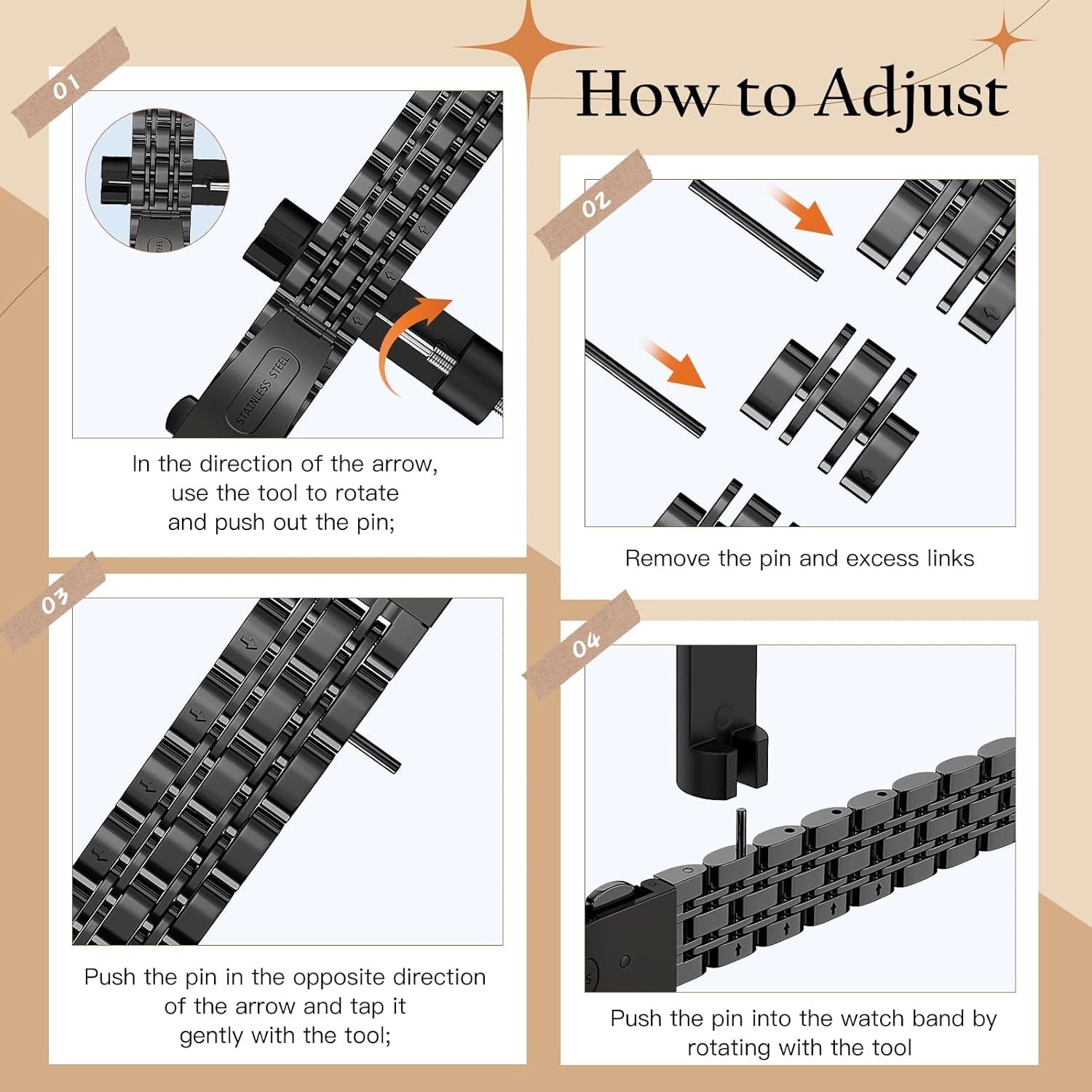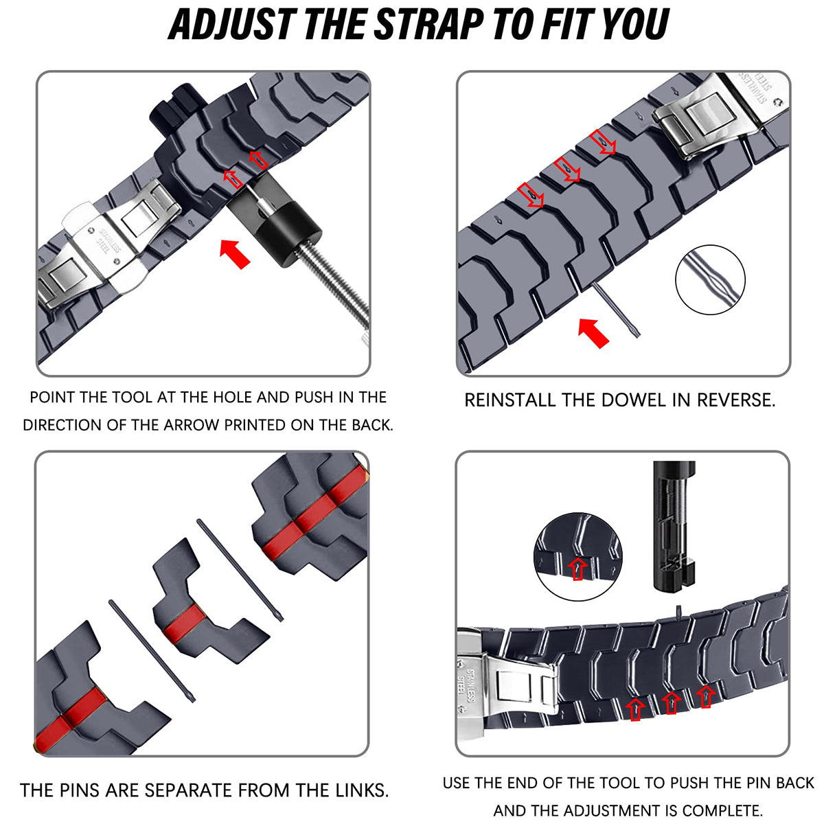 Correa de eslabones de acero ChronoLuxe para Apple Watch Múltiples colores disponibles