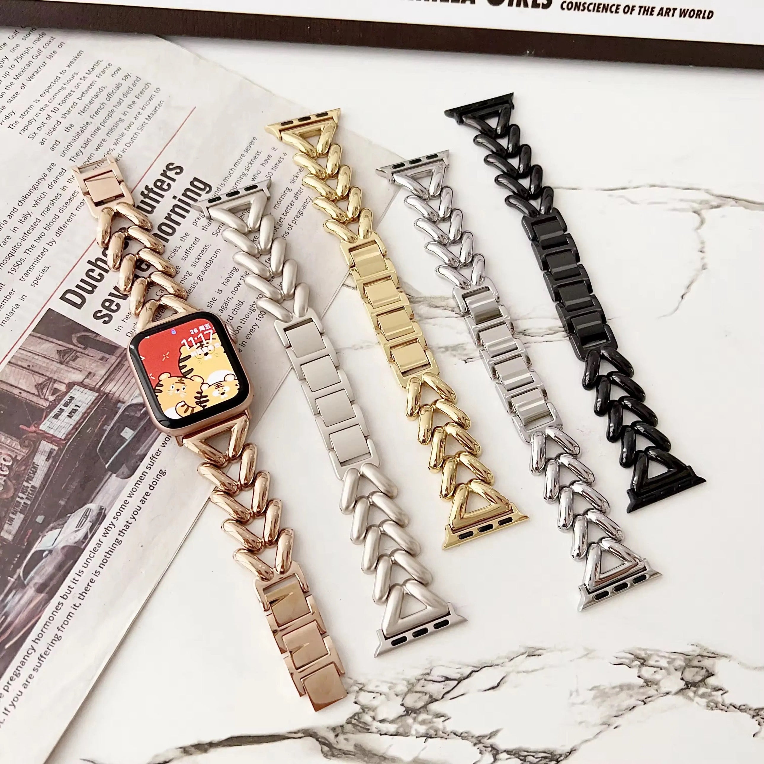 Banda de enlace de lujo delgada de acero inoxidable para Apple Watch, varios colores disponibles