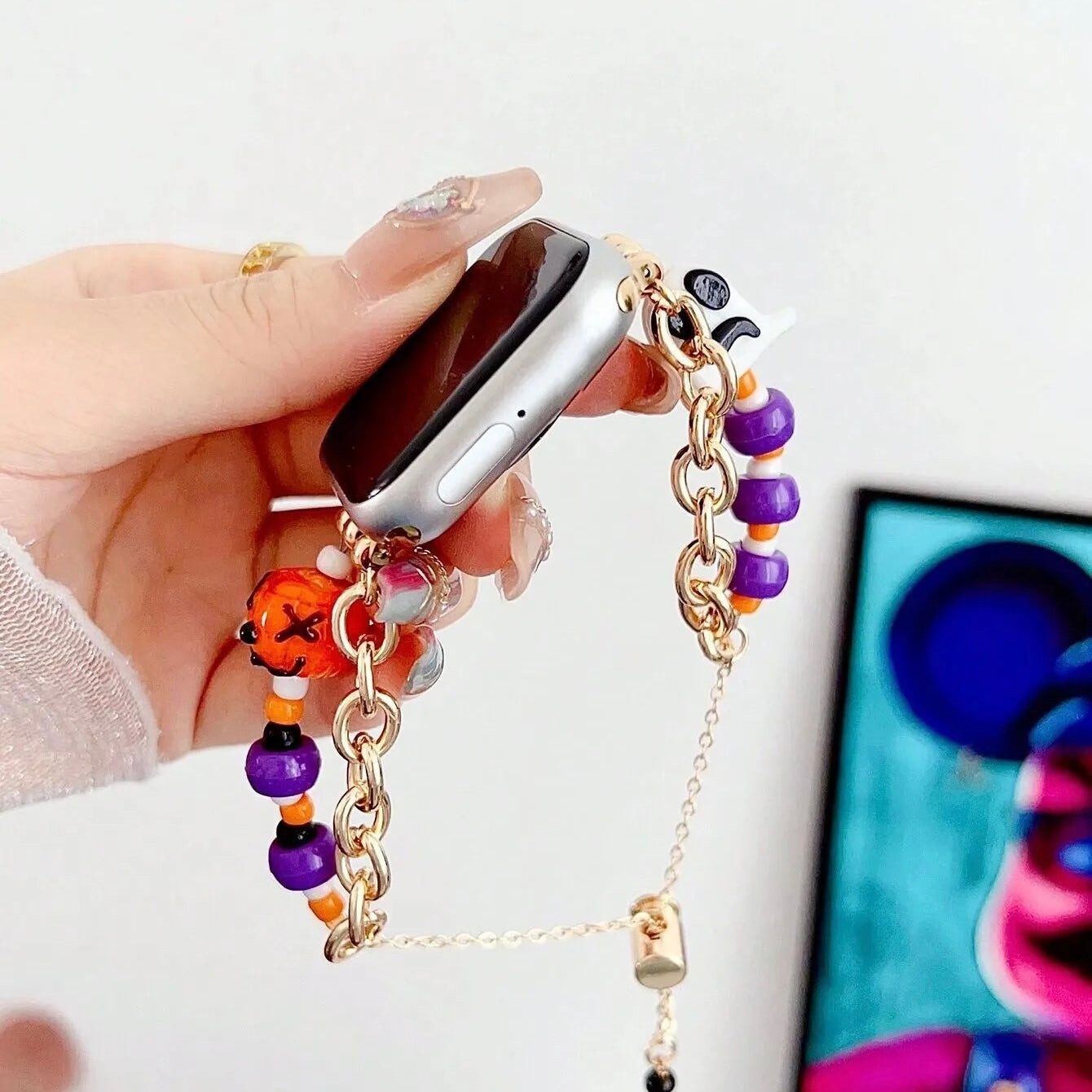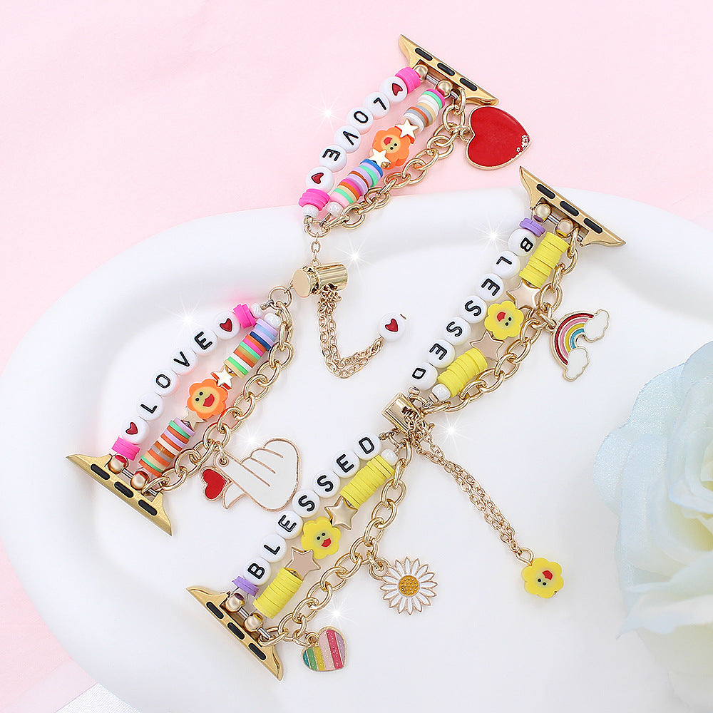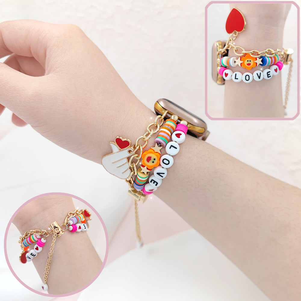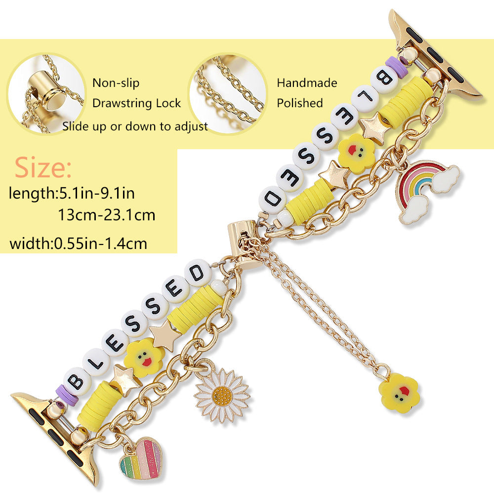 Pulsera de acero con cuentas de dijes alegres festivos para Apple Watch