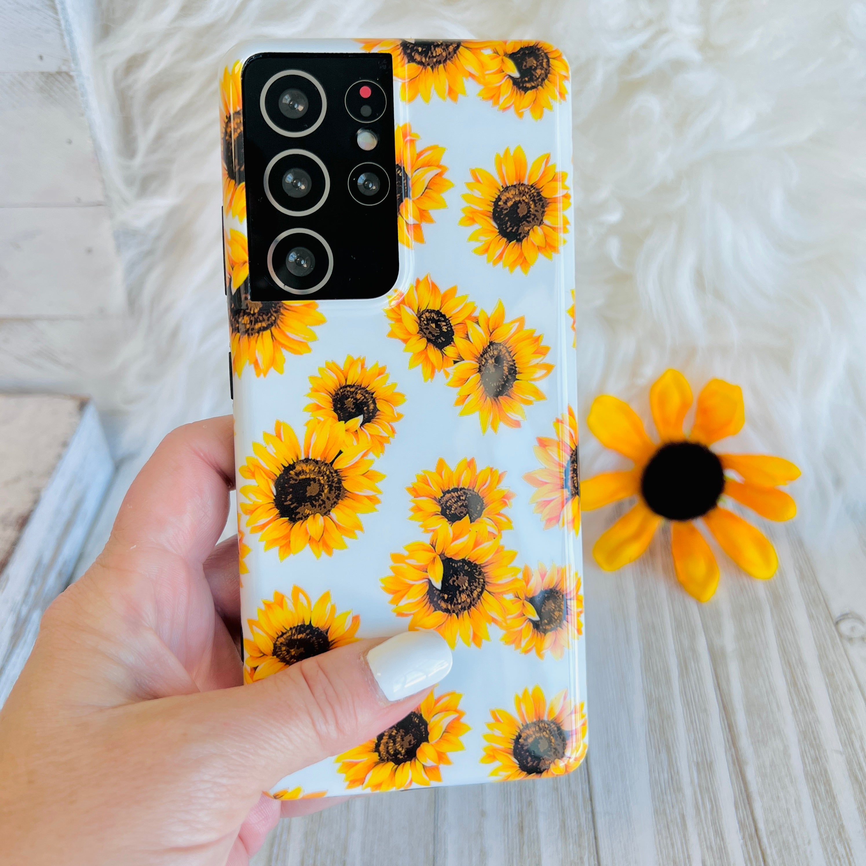 Funda para teléfono celular con fondo blanco de girasol para Samsung Galaxy