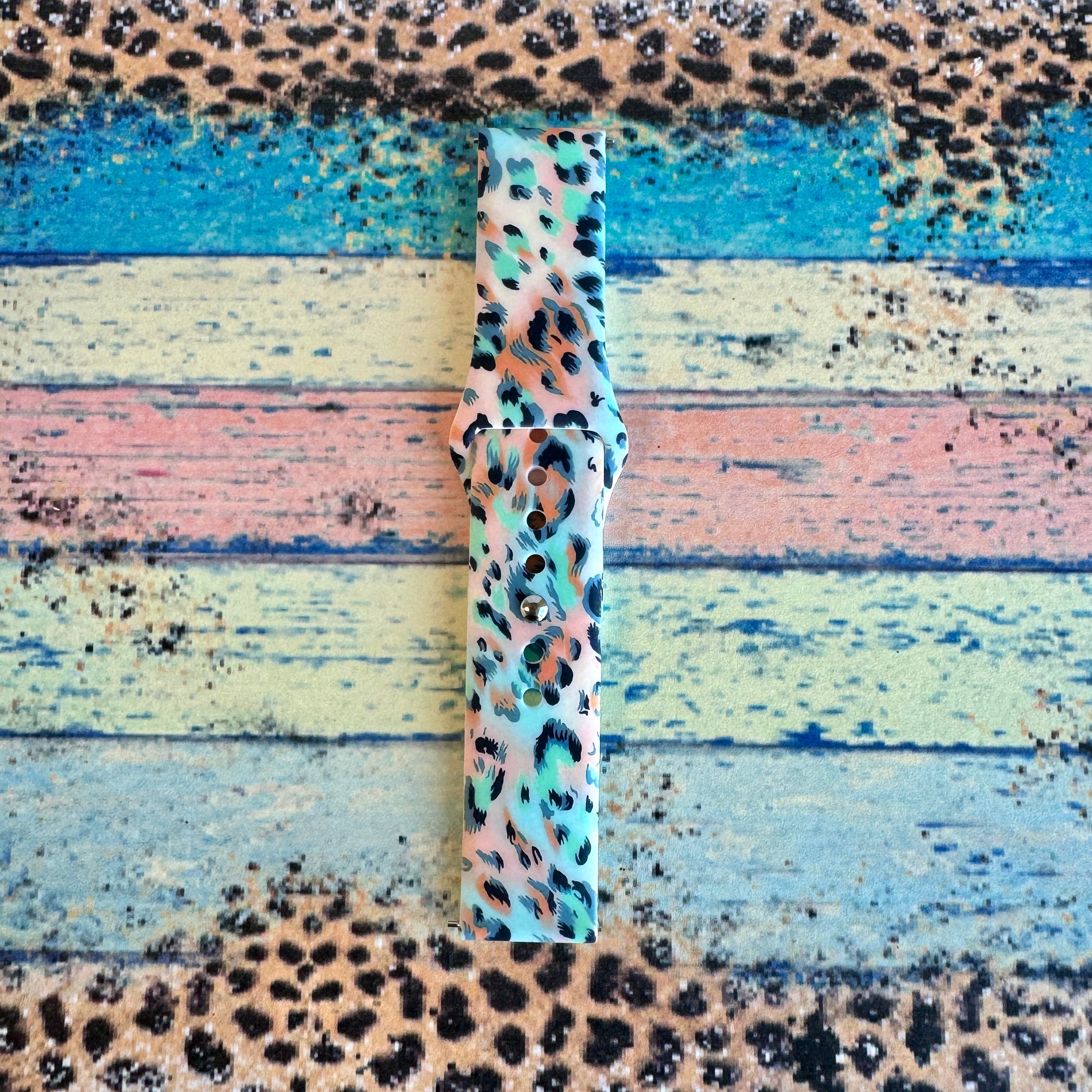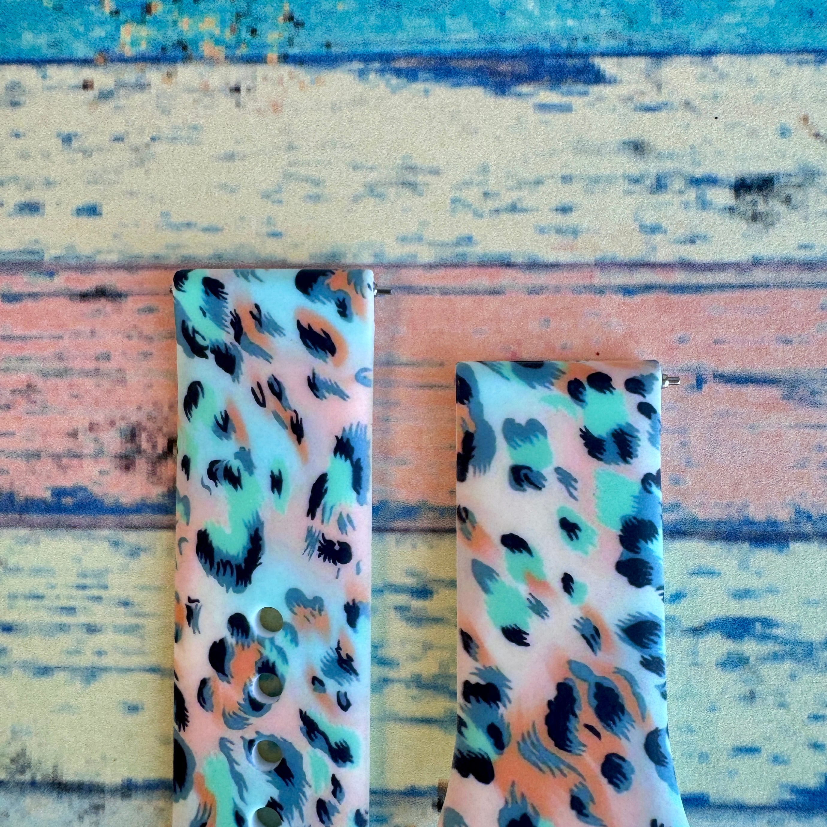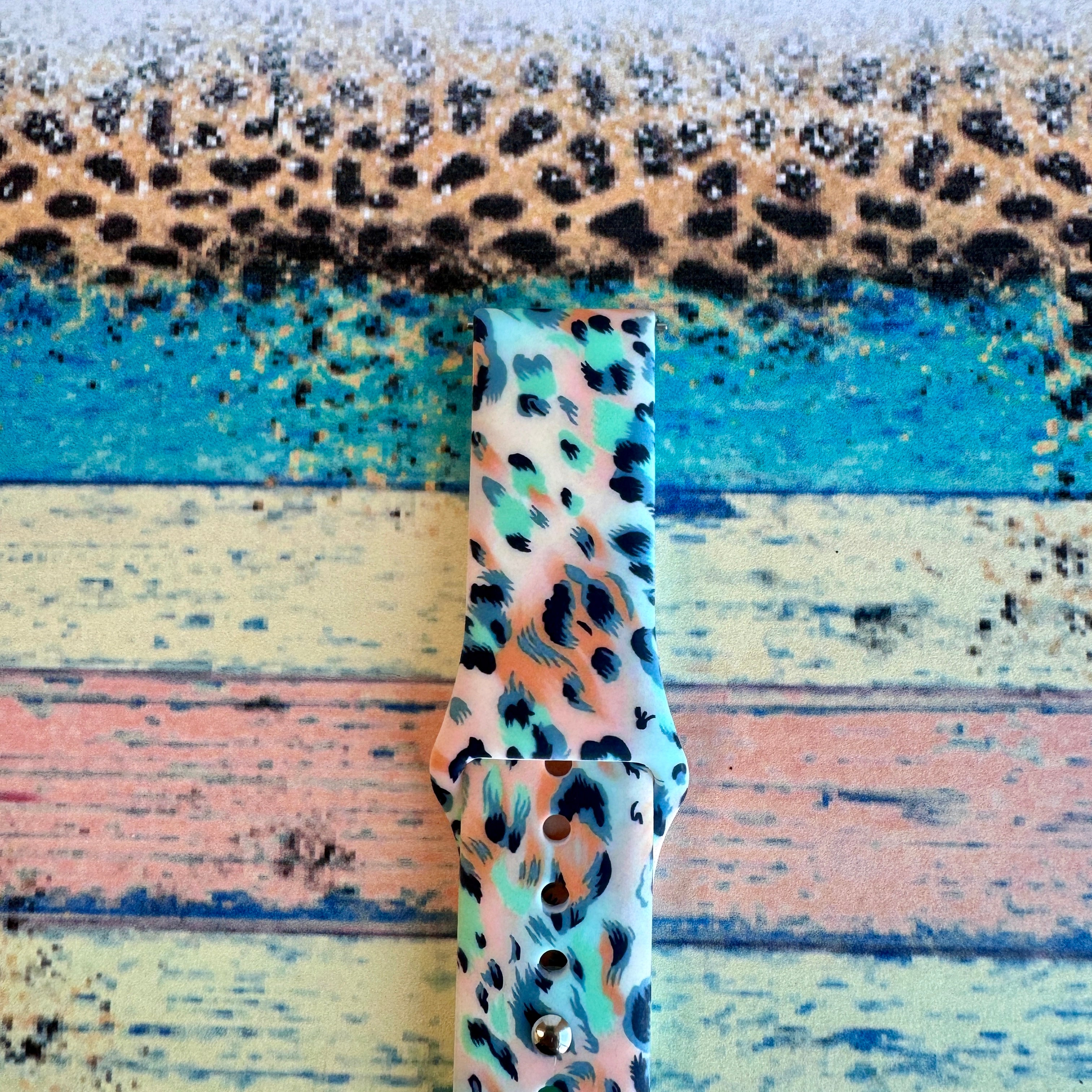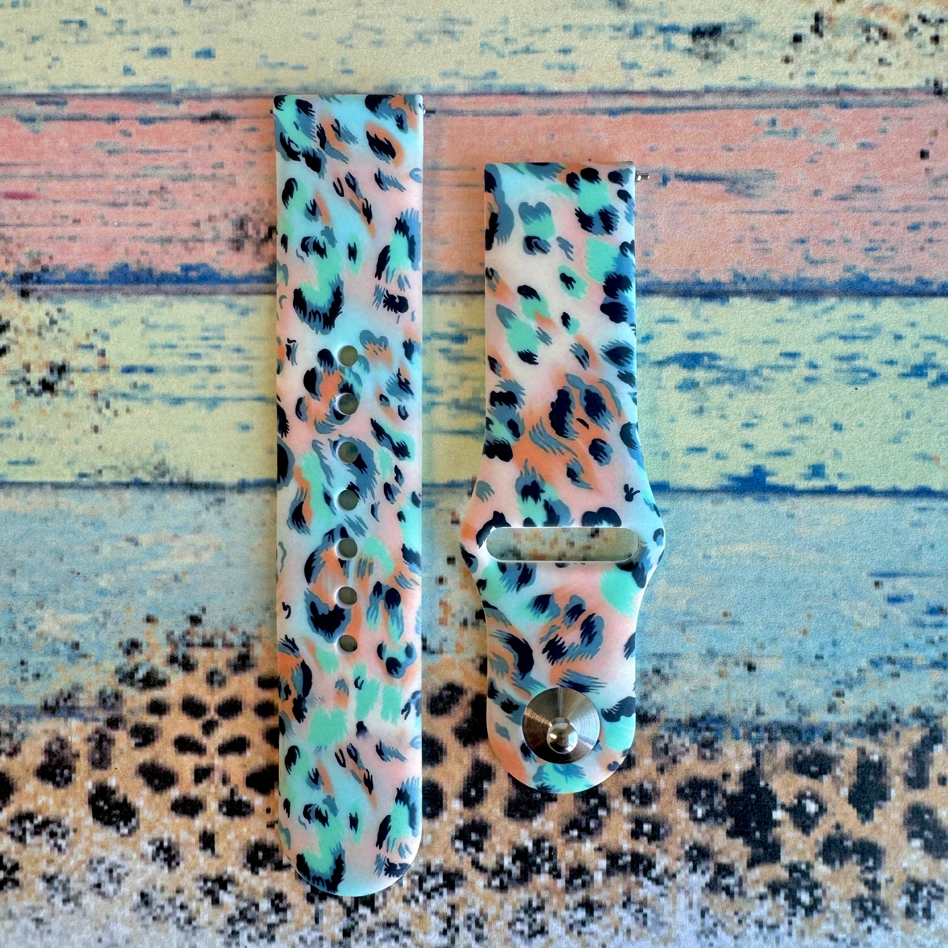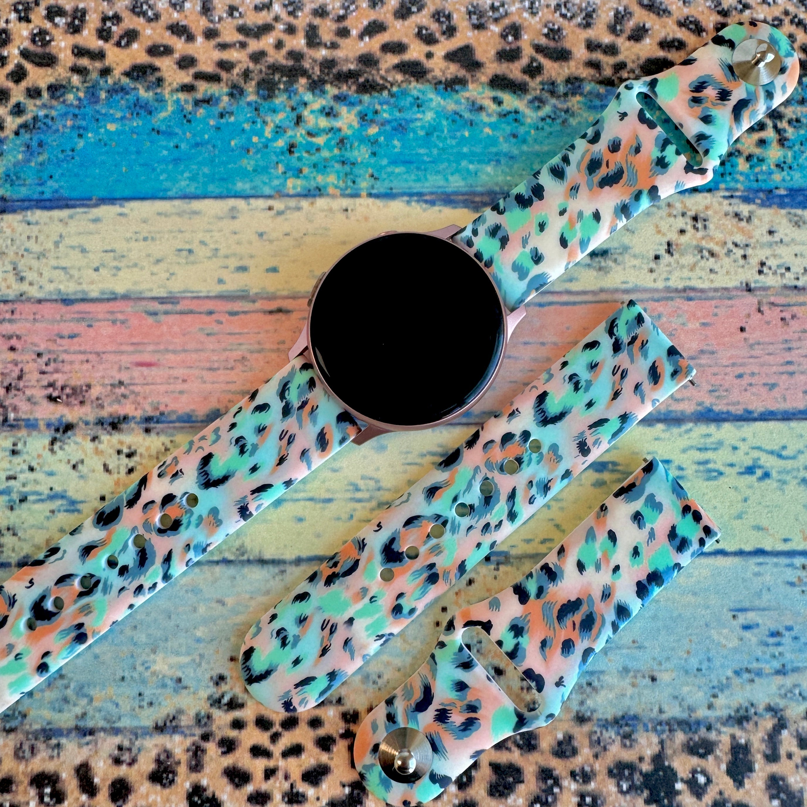 Correa de silicona con estampado de leopardo turquesa salvaje para reloj Samsung