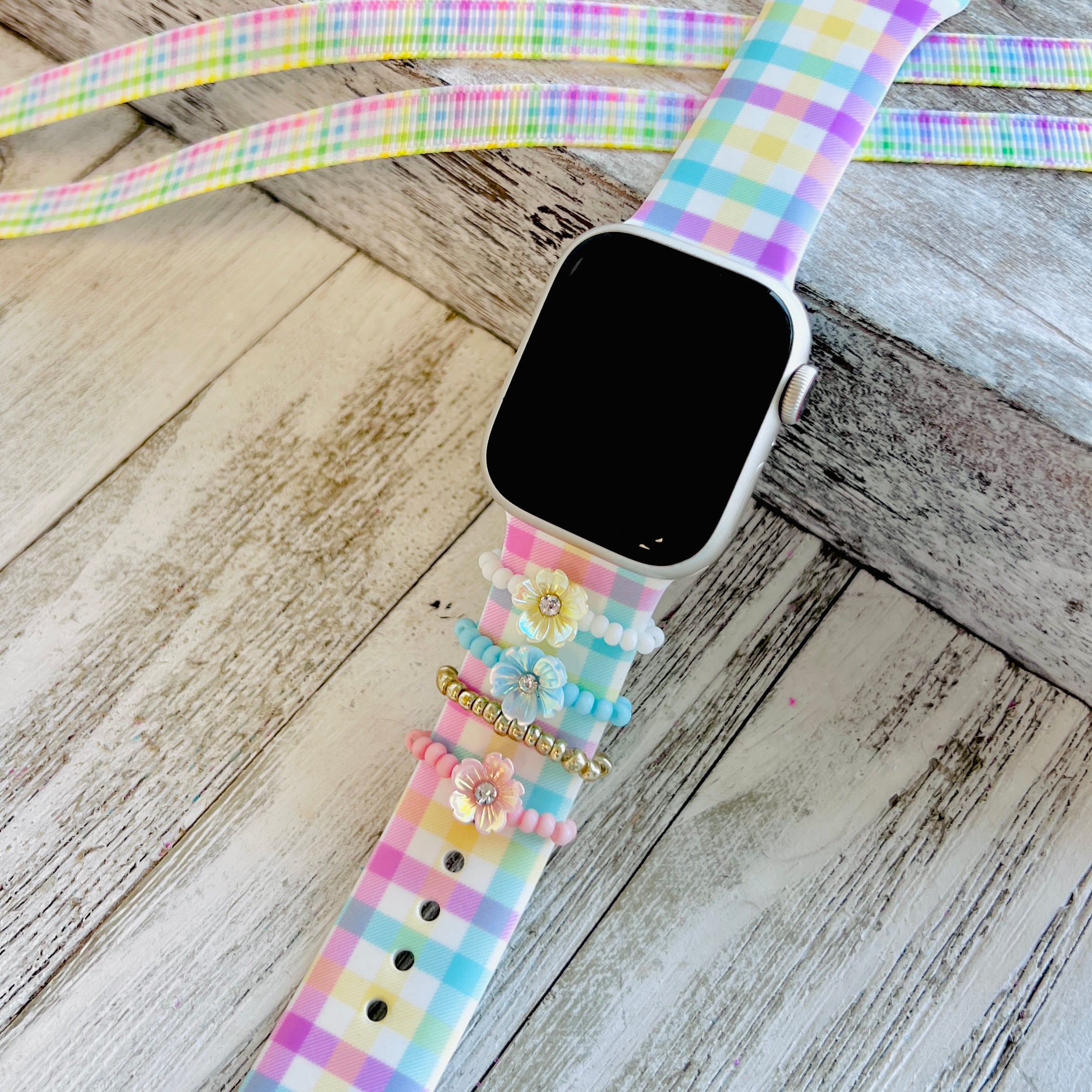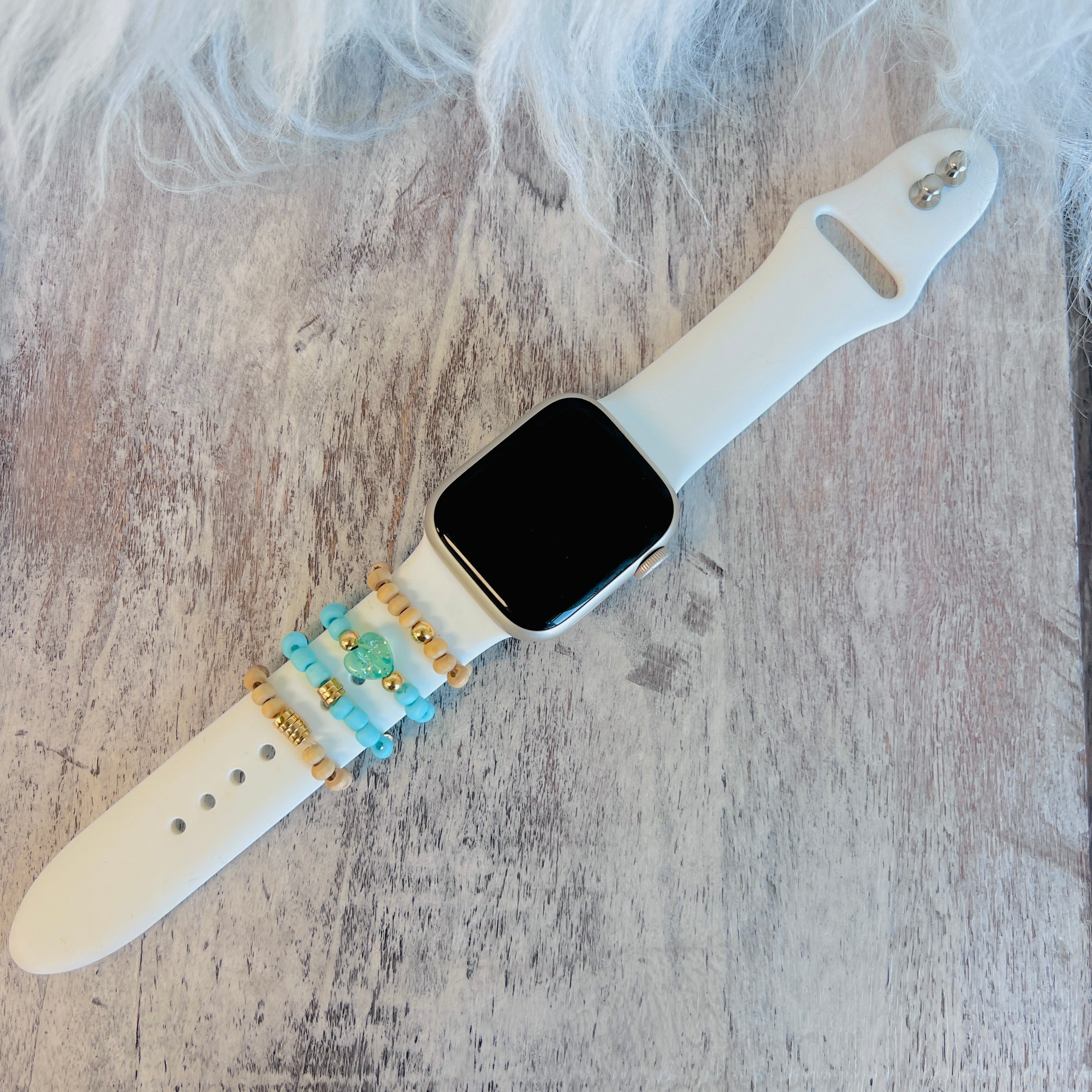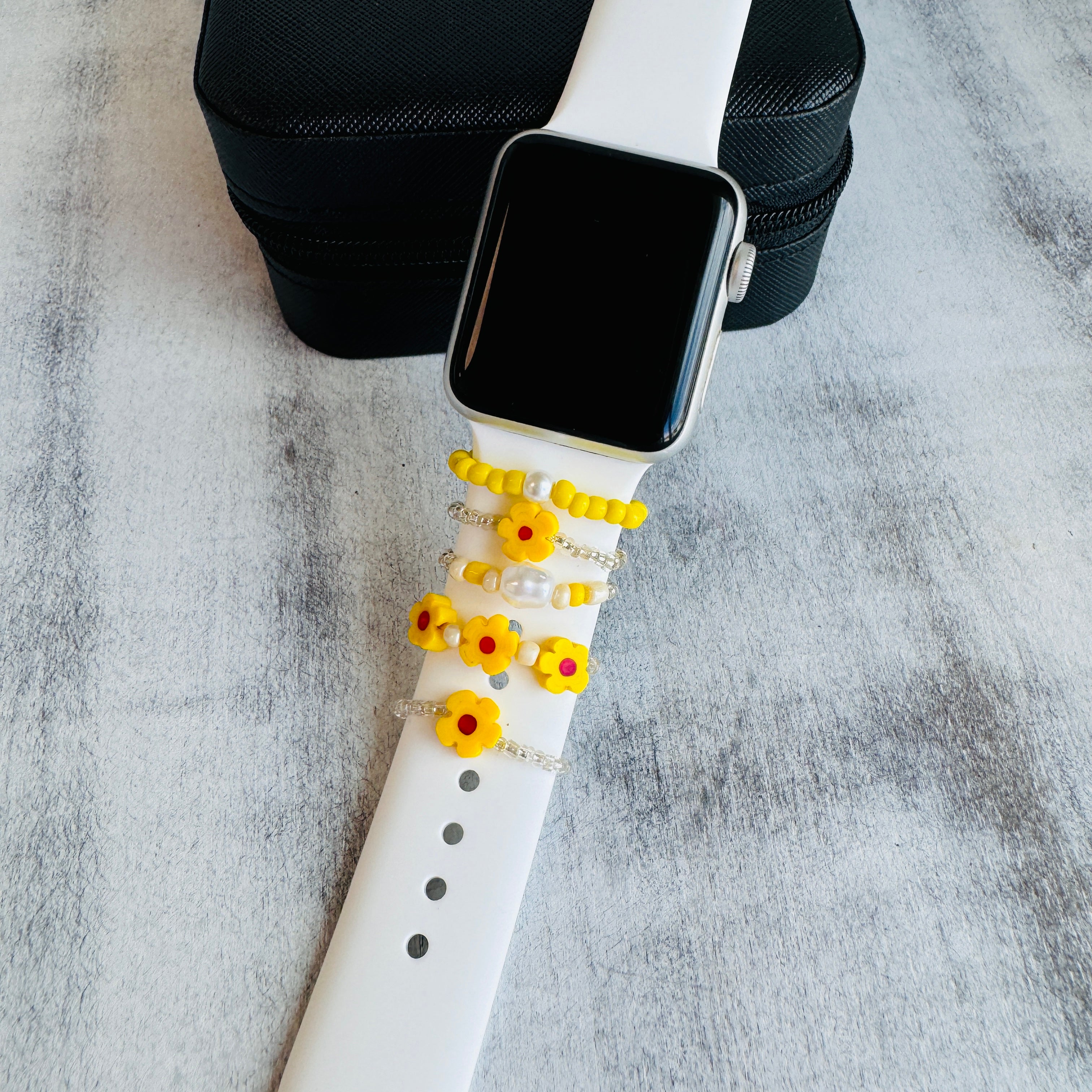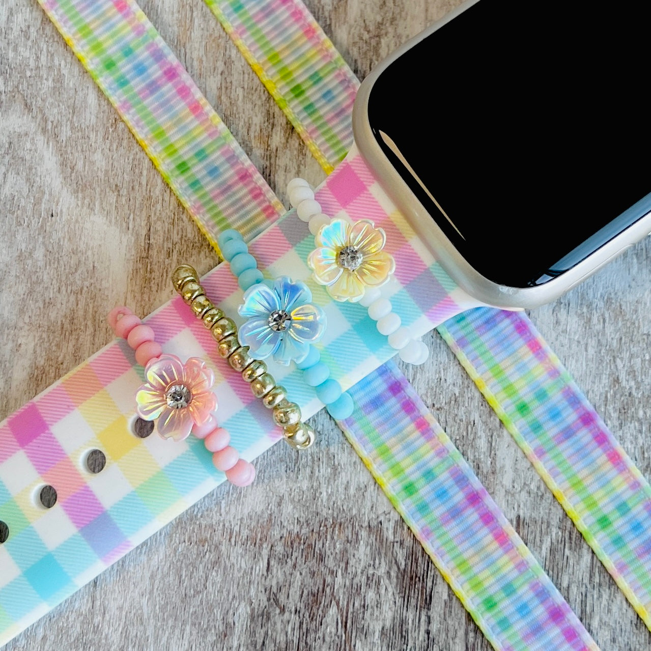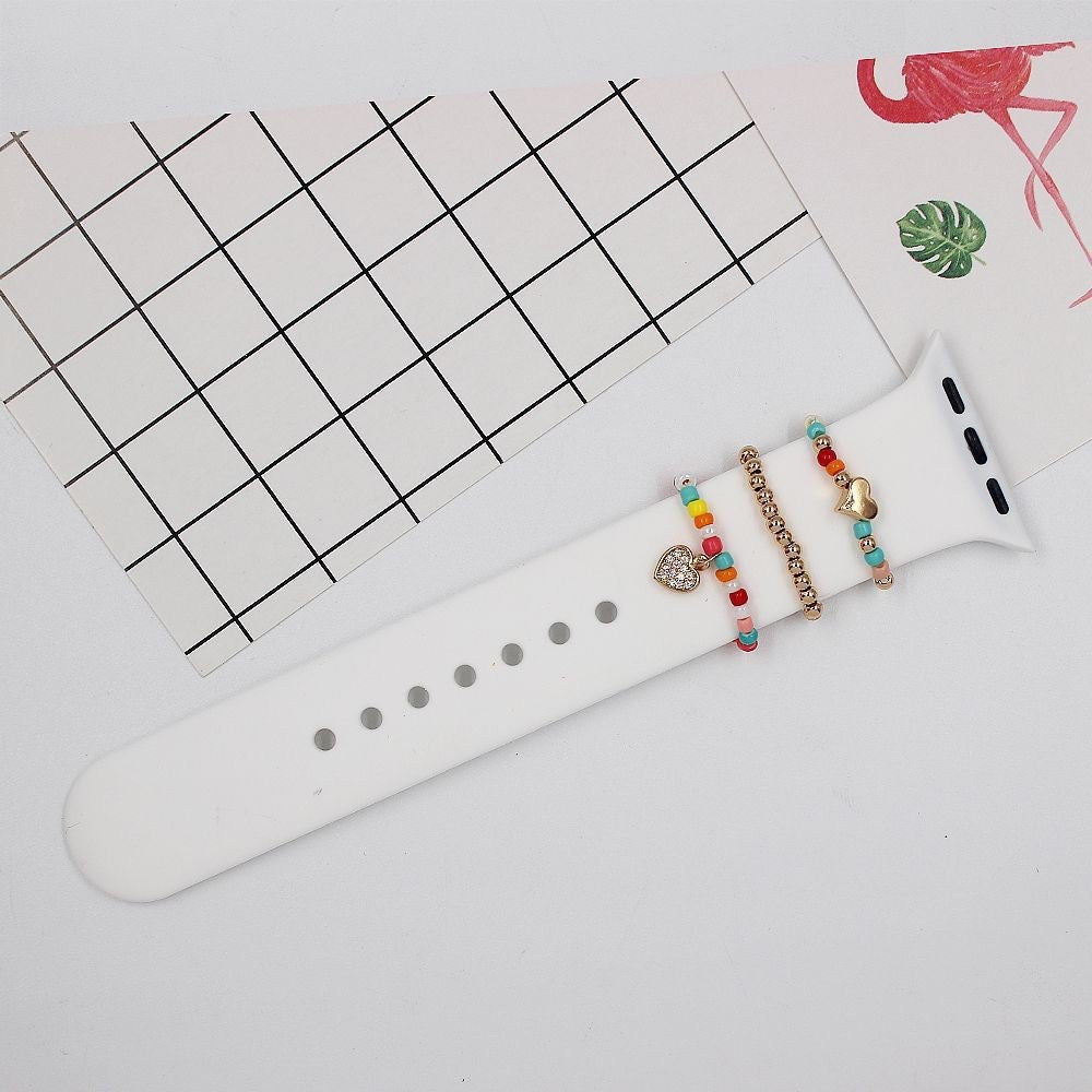 Estos accesorios súper lindos para correas de reloj son adecuados para la mayoría de correas de silicona o de cuero. Diseñado como un anillo de bucle que se desliza fácilmente en las correas de su reloj. (Compatible con la correa de silicona Apple Watch adecuada para todas las correas de reloj Apple series 1-9 y SE, Samsung y Versa.