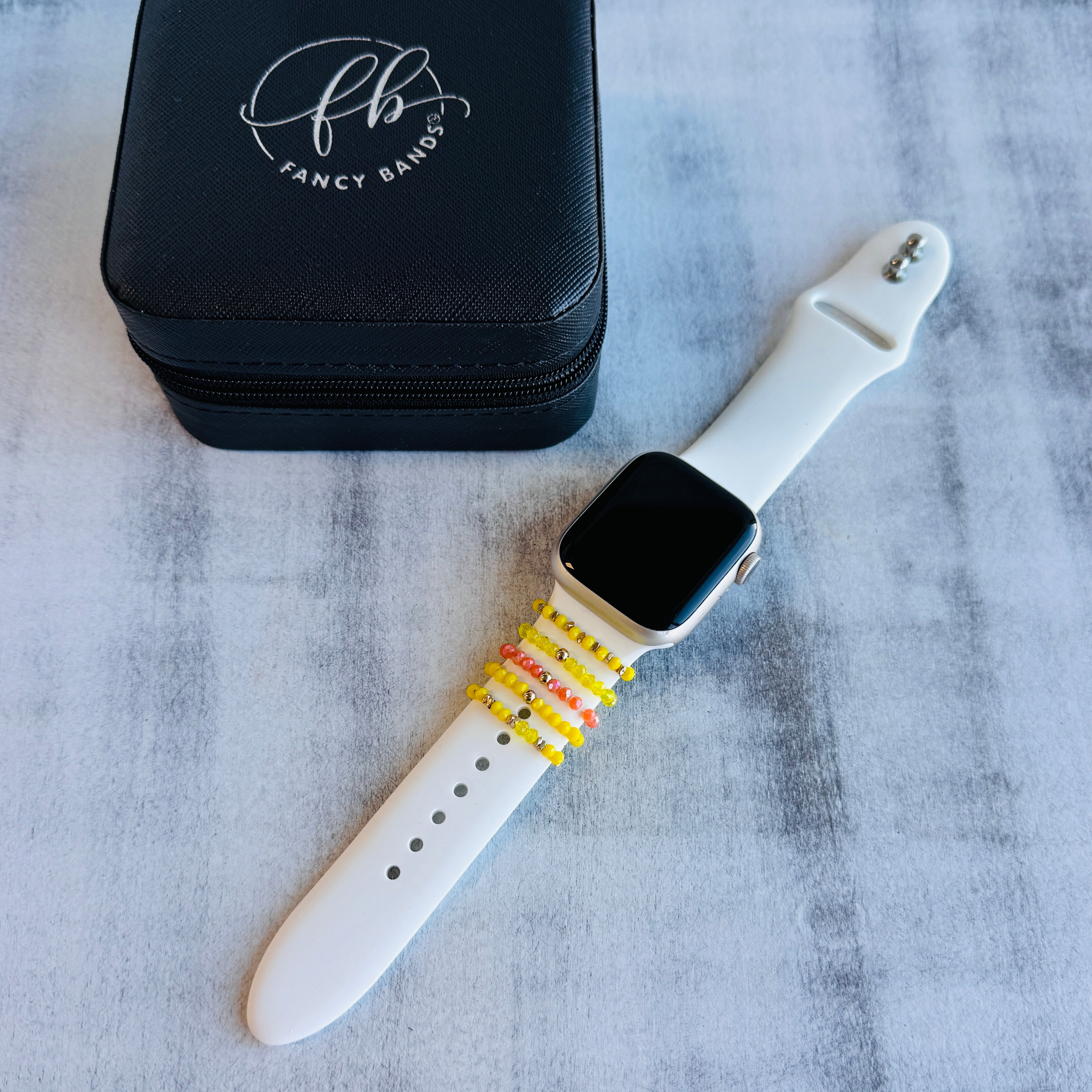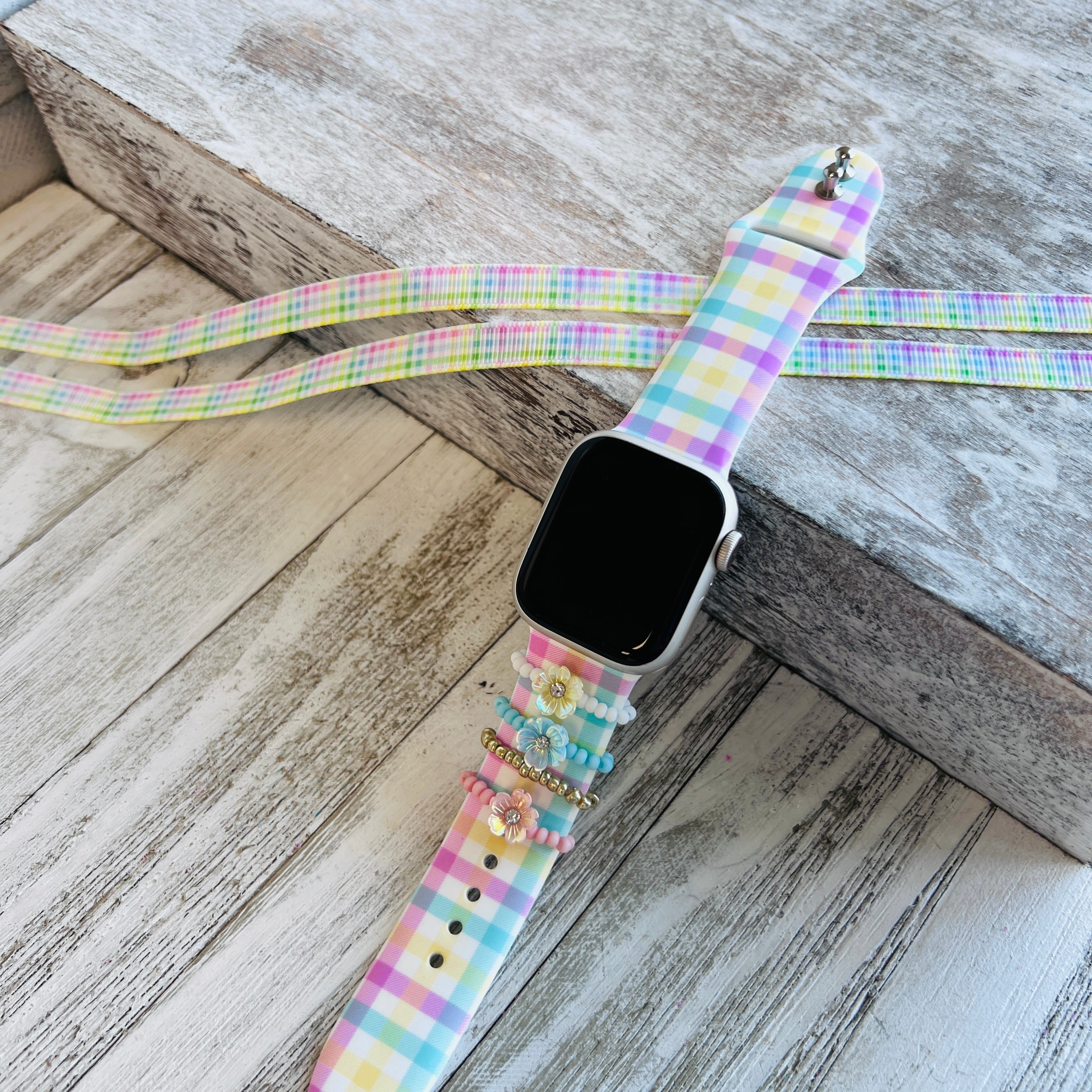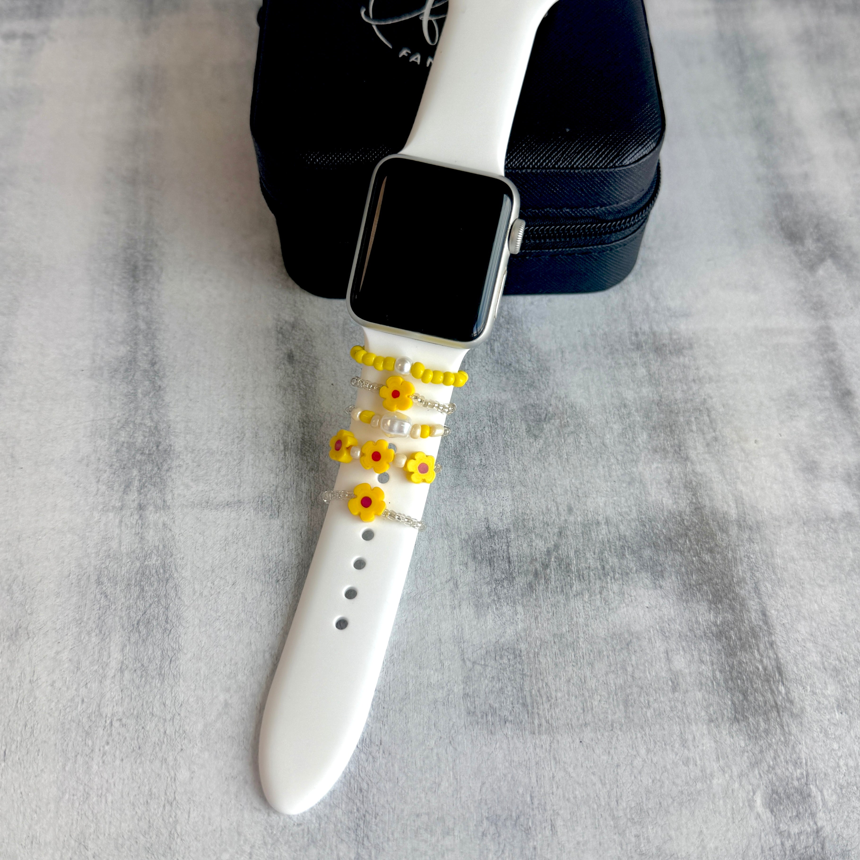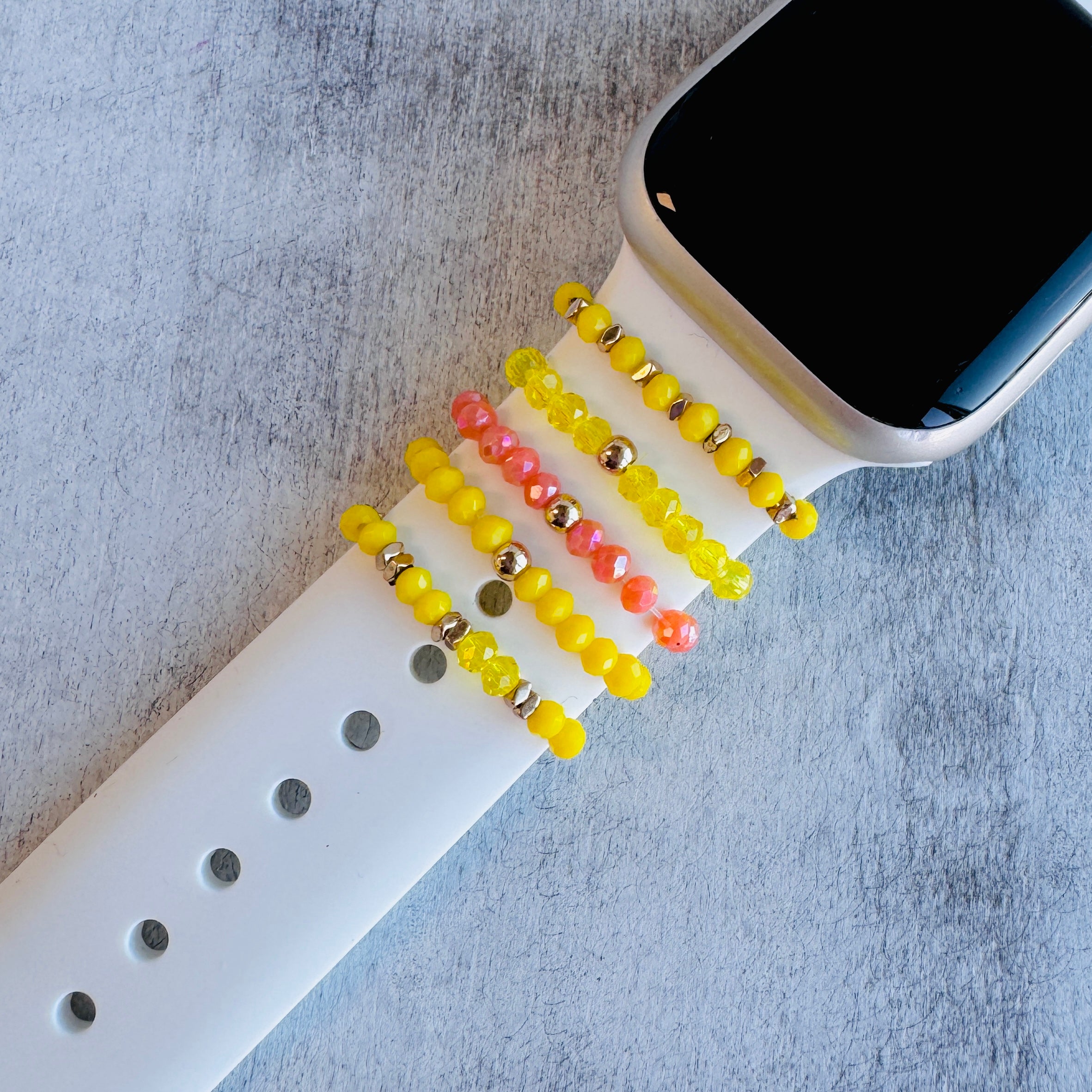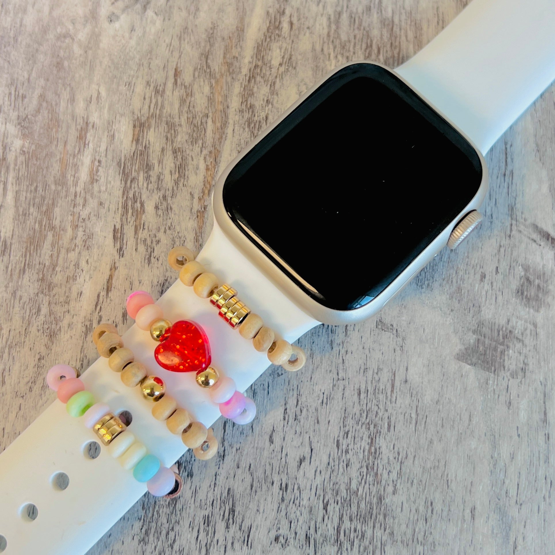 Estos accesorios súper lindos para correas de reloj son adecuados para la mayoría de correas de silicona o de cuero. Diseñado como un anillo de bucle que se desliza fácilmente en las correas de su reloj. (Compatible con la correa de silicona Apple Watch adecuada para todas las correas de reloj Apple series 1-9 y SE, Samsung y Versa.