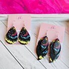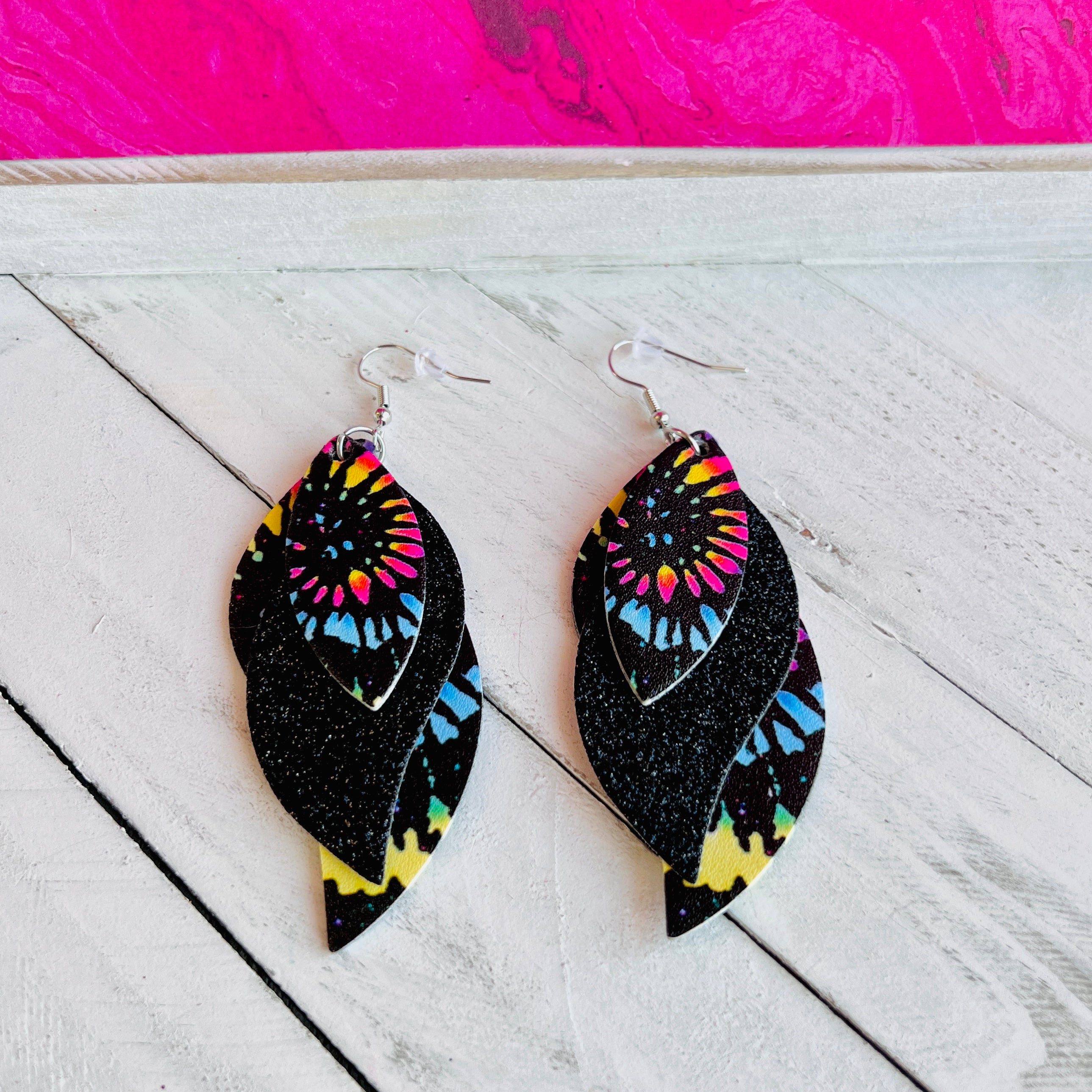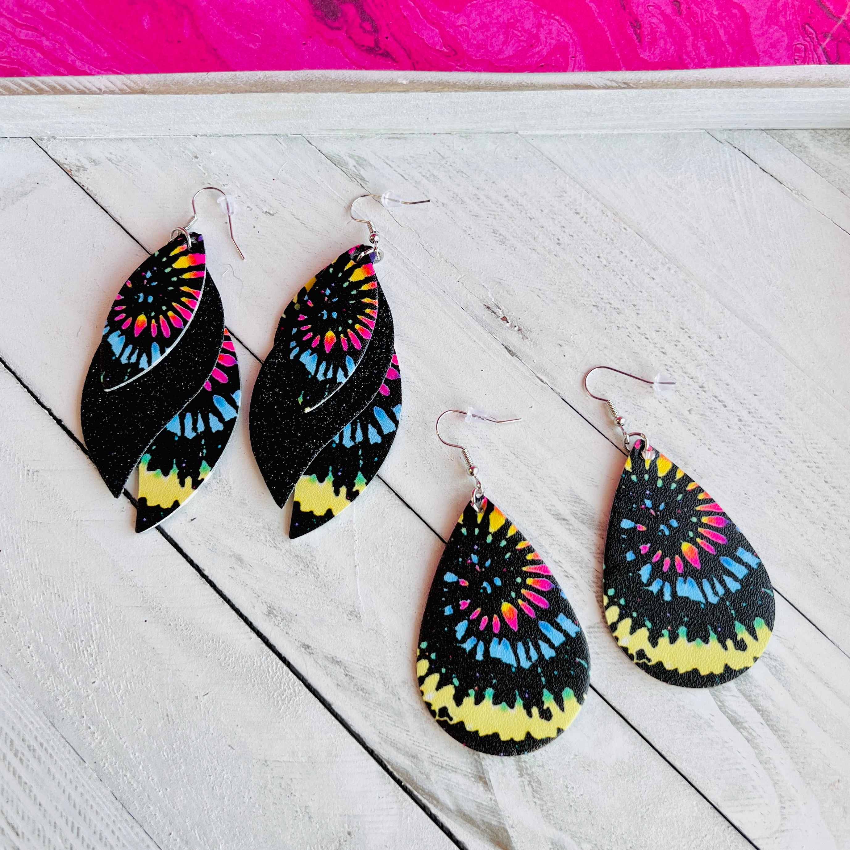 Oreja en forma de lágrima de cuero sintético con efecto tie-dye negro, dos estilos disponibles