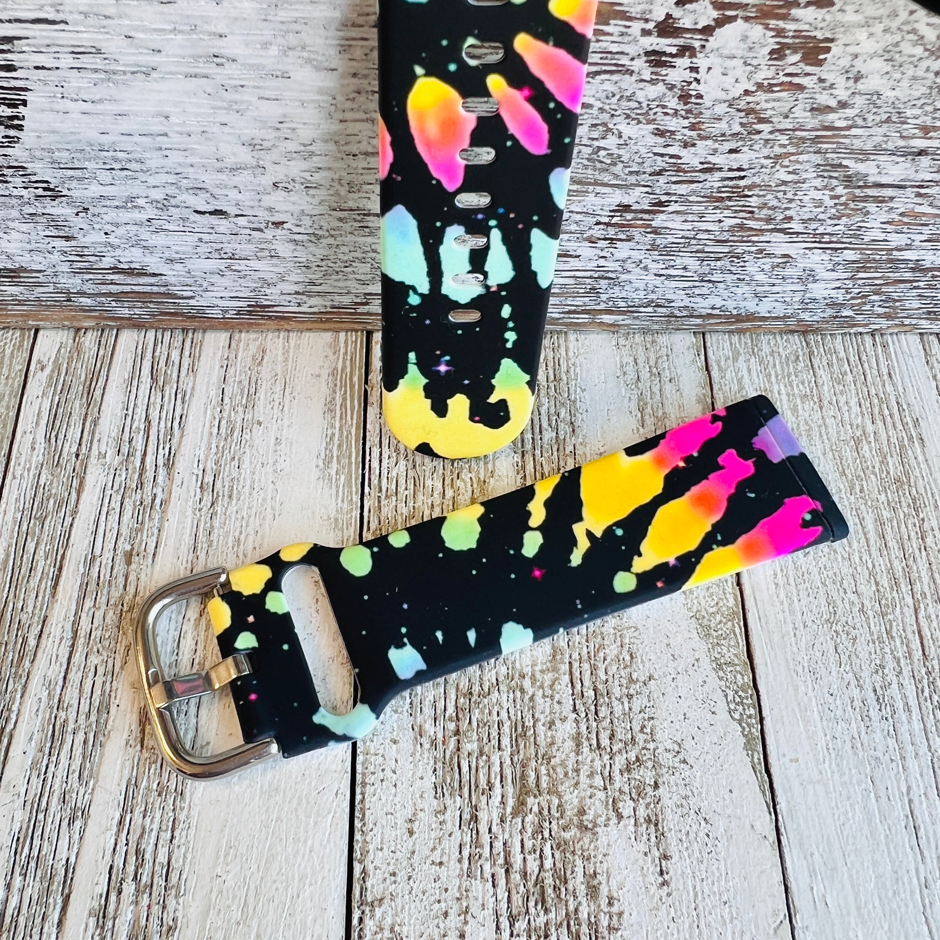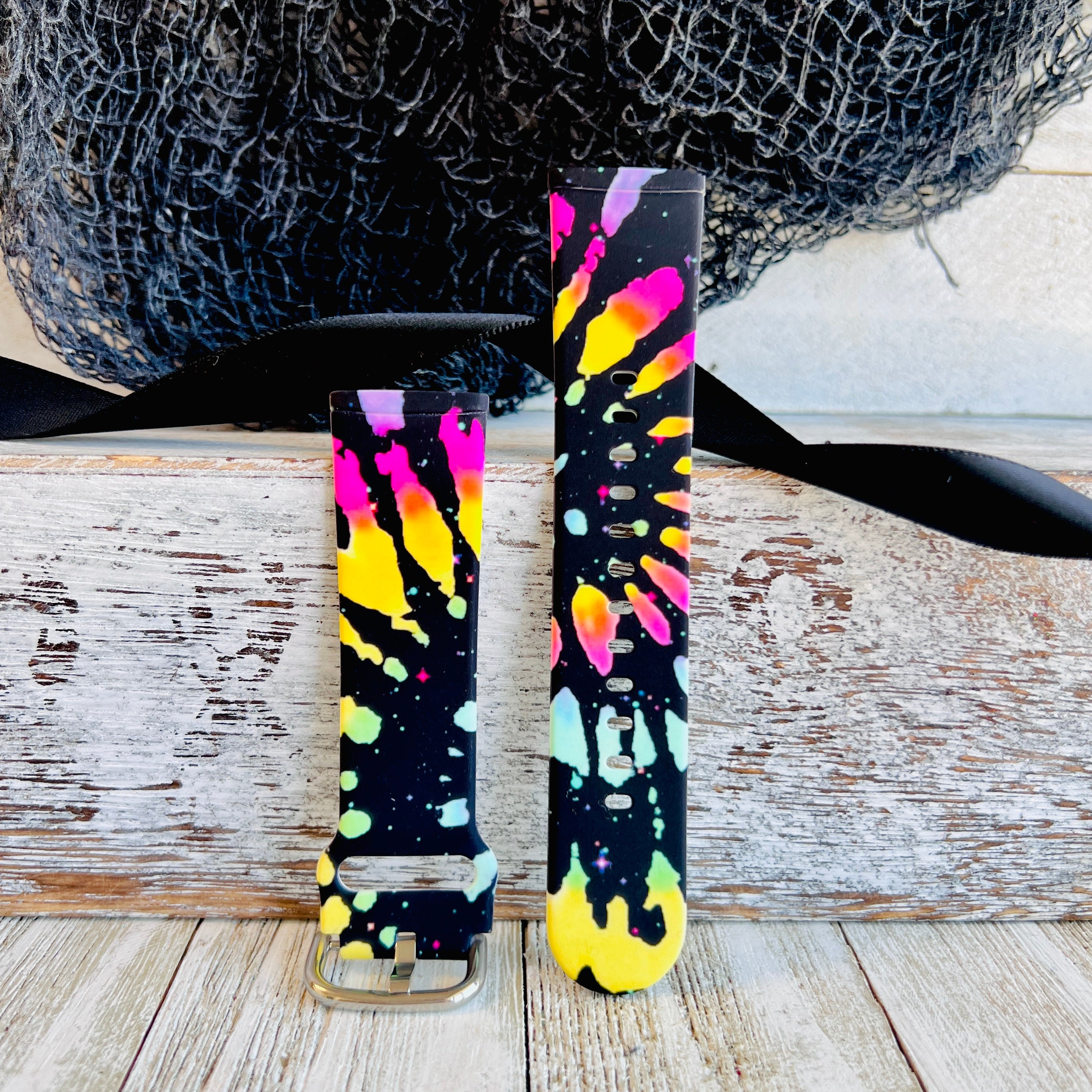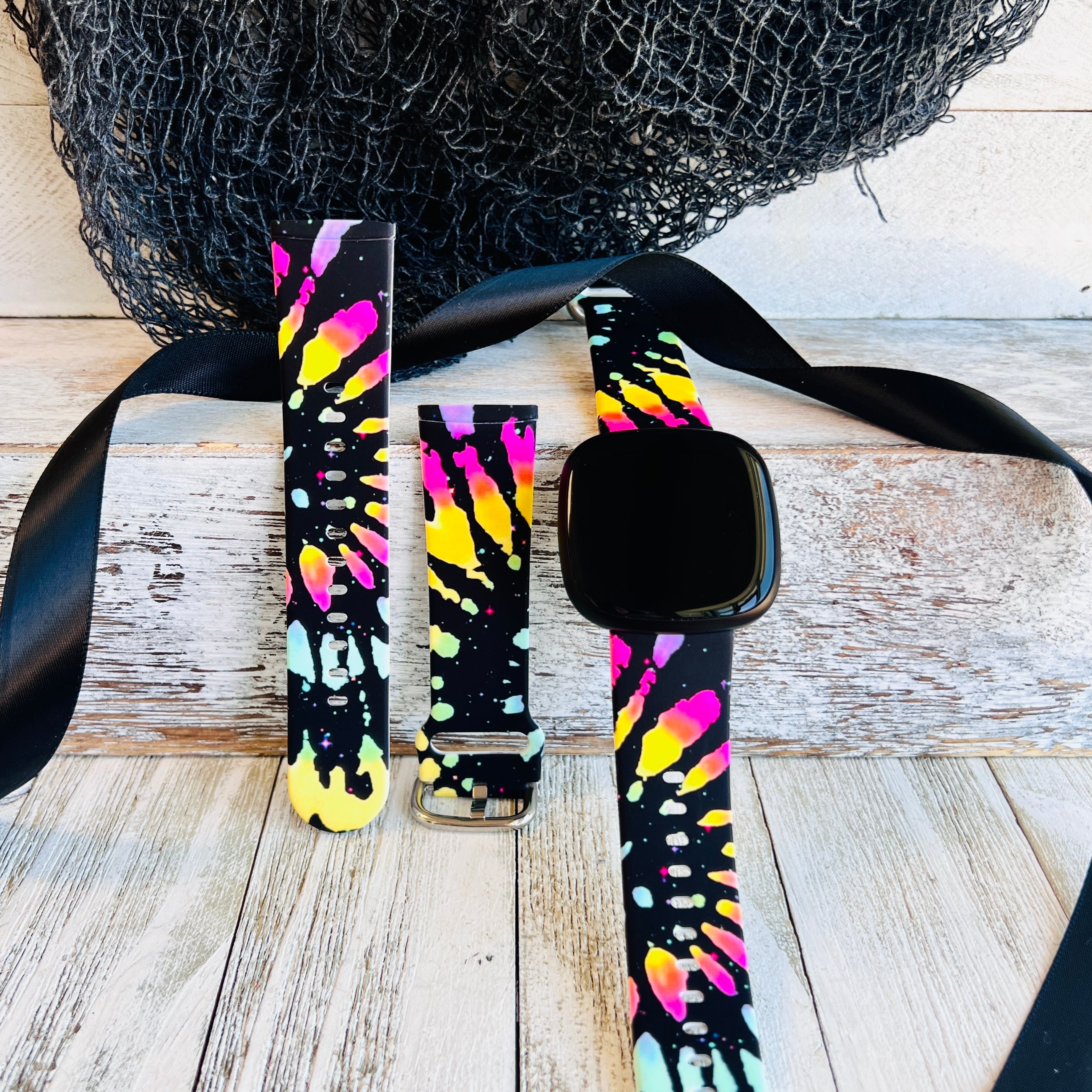 Banda de silicona con estampado Tie Dye negro para Fitbit Versa 3/4/Sense