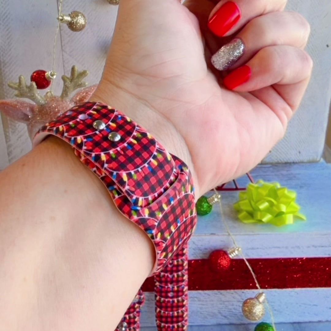 Cozy cabin vibes meet holiday cheer! This adorable Deerlightful Apple Watch band features charming reindeer on red and black buffalo plaid with festive string lights. Perfect for adding rustic Christmas charm to your wrist all season long—from Christmas Eve celebrations to cozy winter weekends by the fireplace.