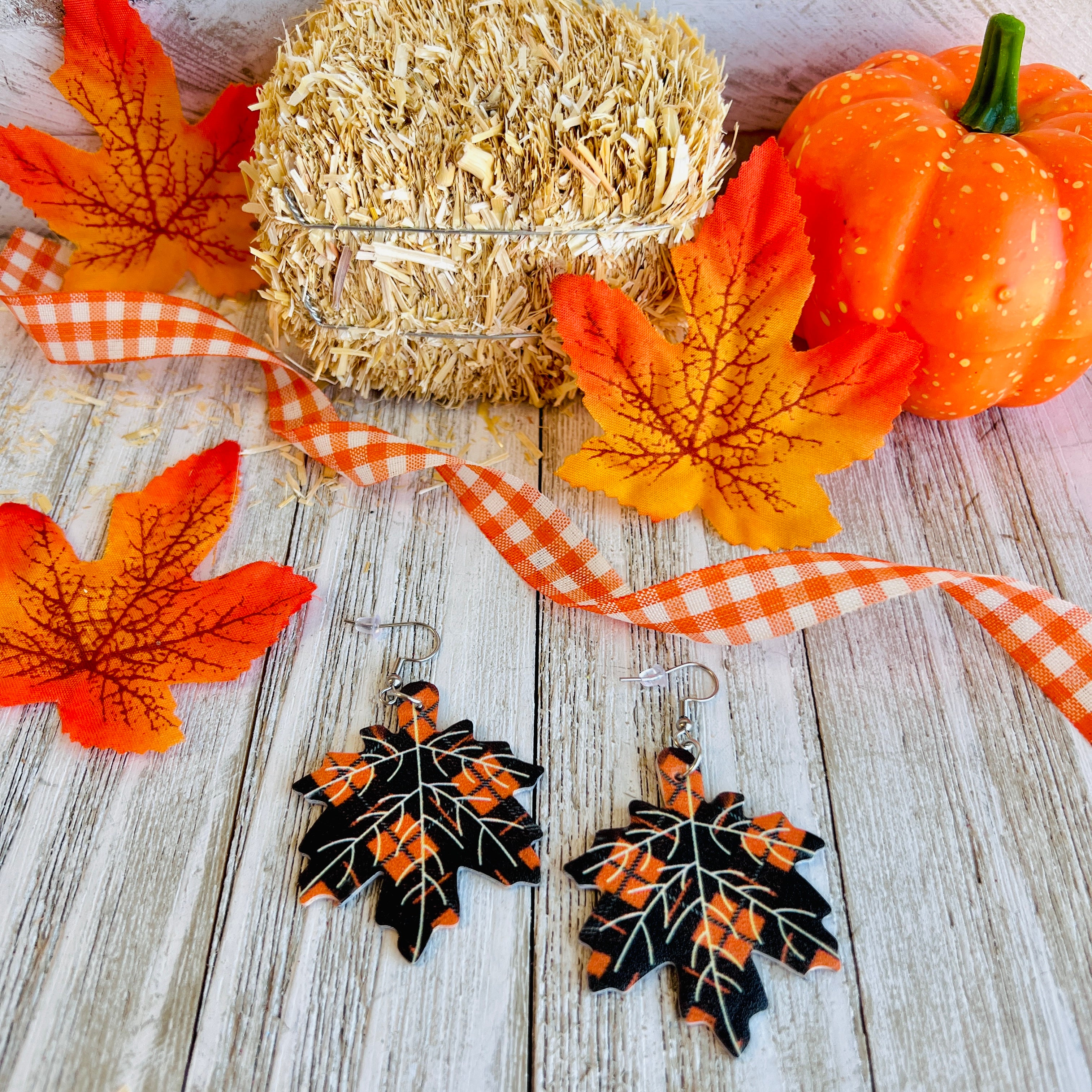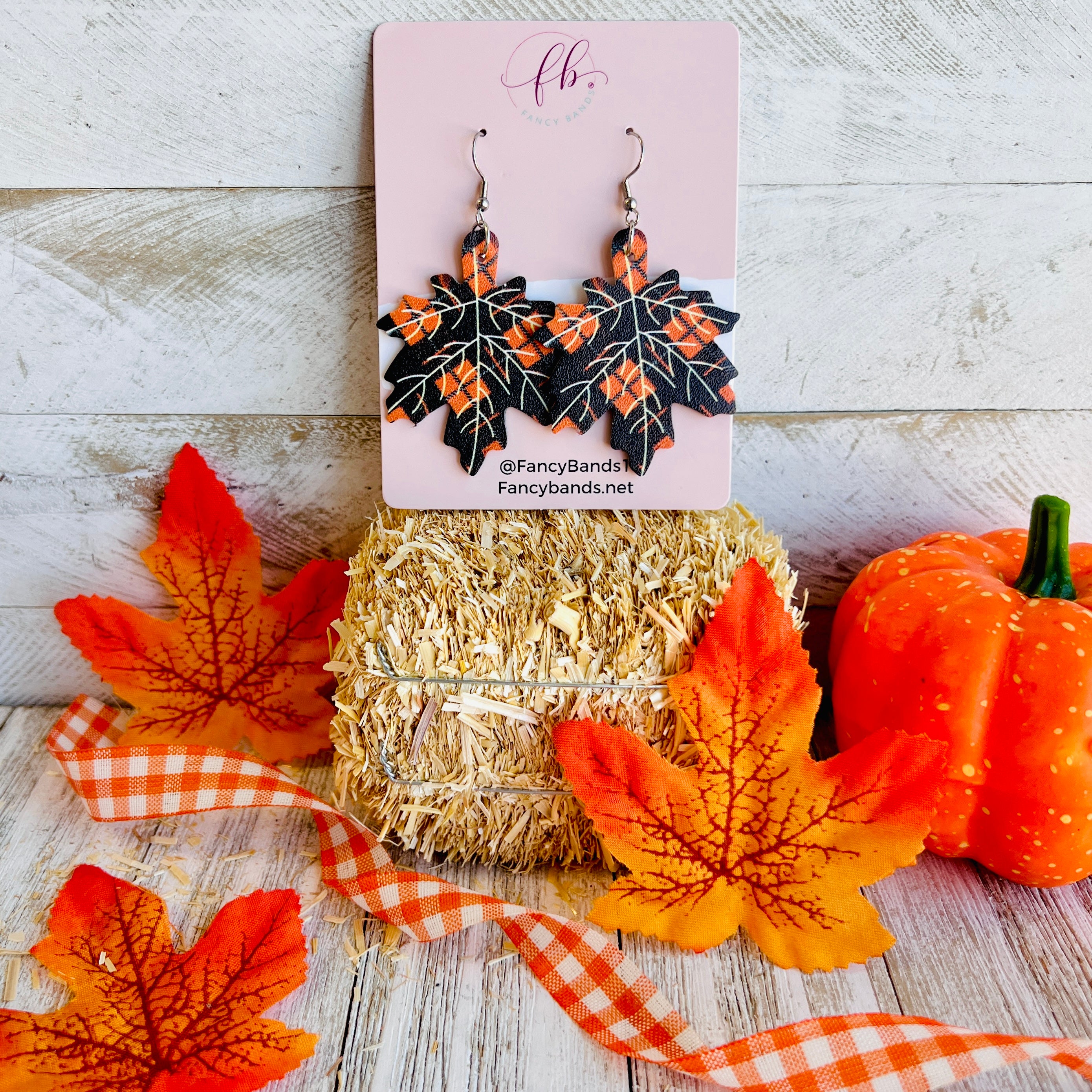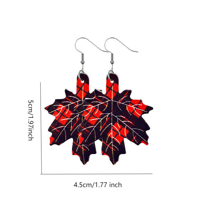Pendientes colgantes de piel sintética con forma de argyle de otoño