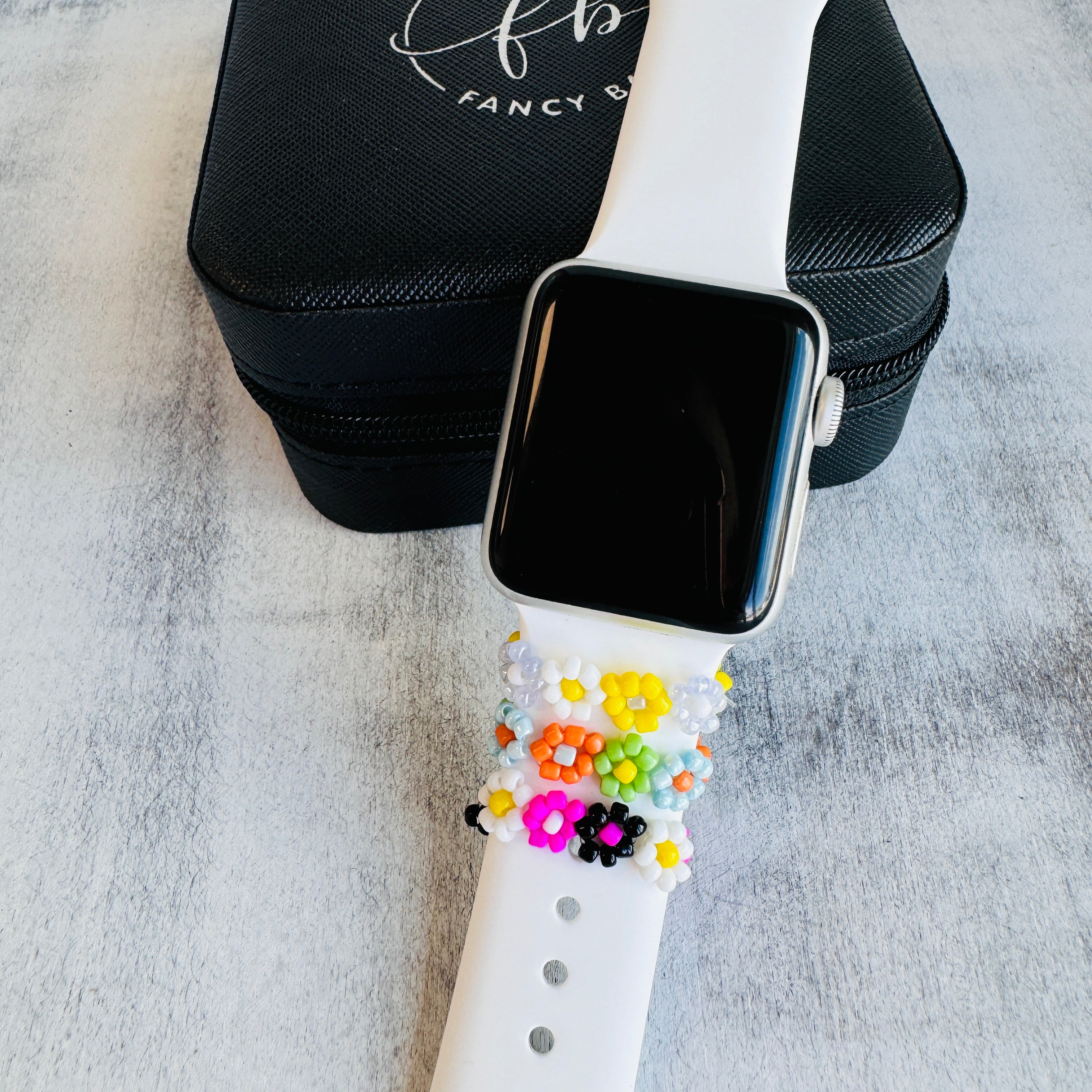 These super cute watch band accessories are suitable for Most Silicone band/leather bands. Designed as a loop ring that slides easily on your watch bands.( Compatible with Apple Watch Silicone Band suitable all Apple series 1-10 & SE, Samsung, & Versa Watch Bands.