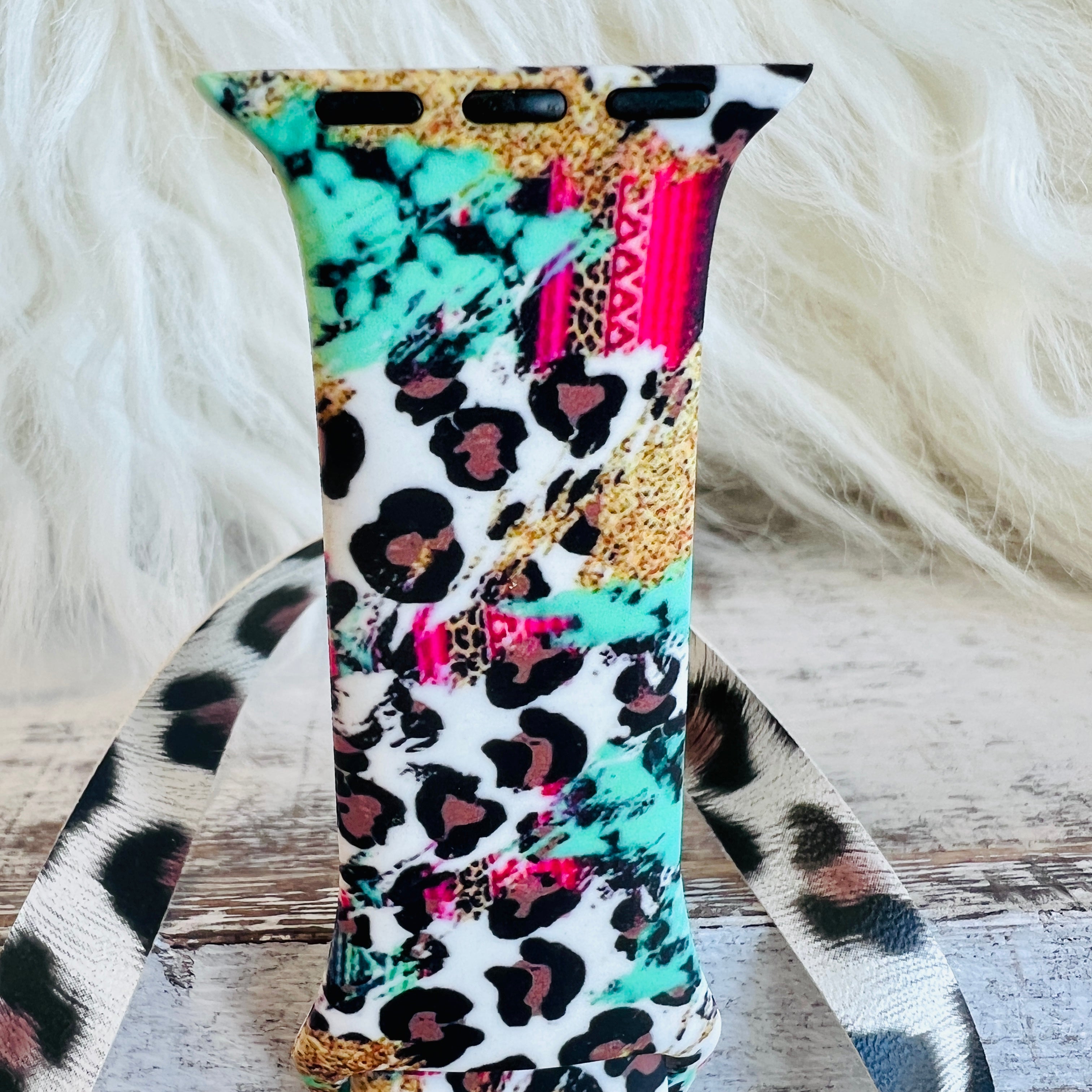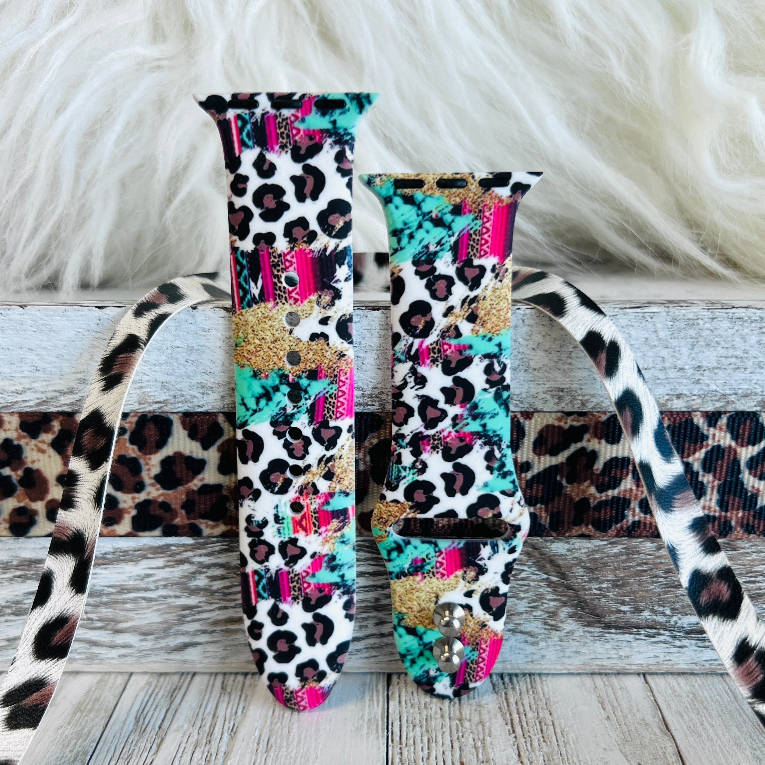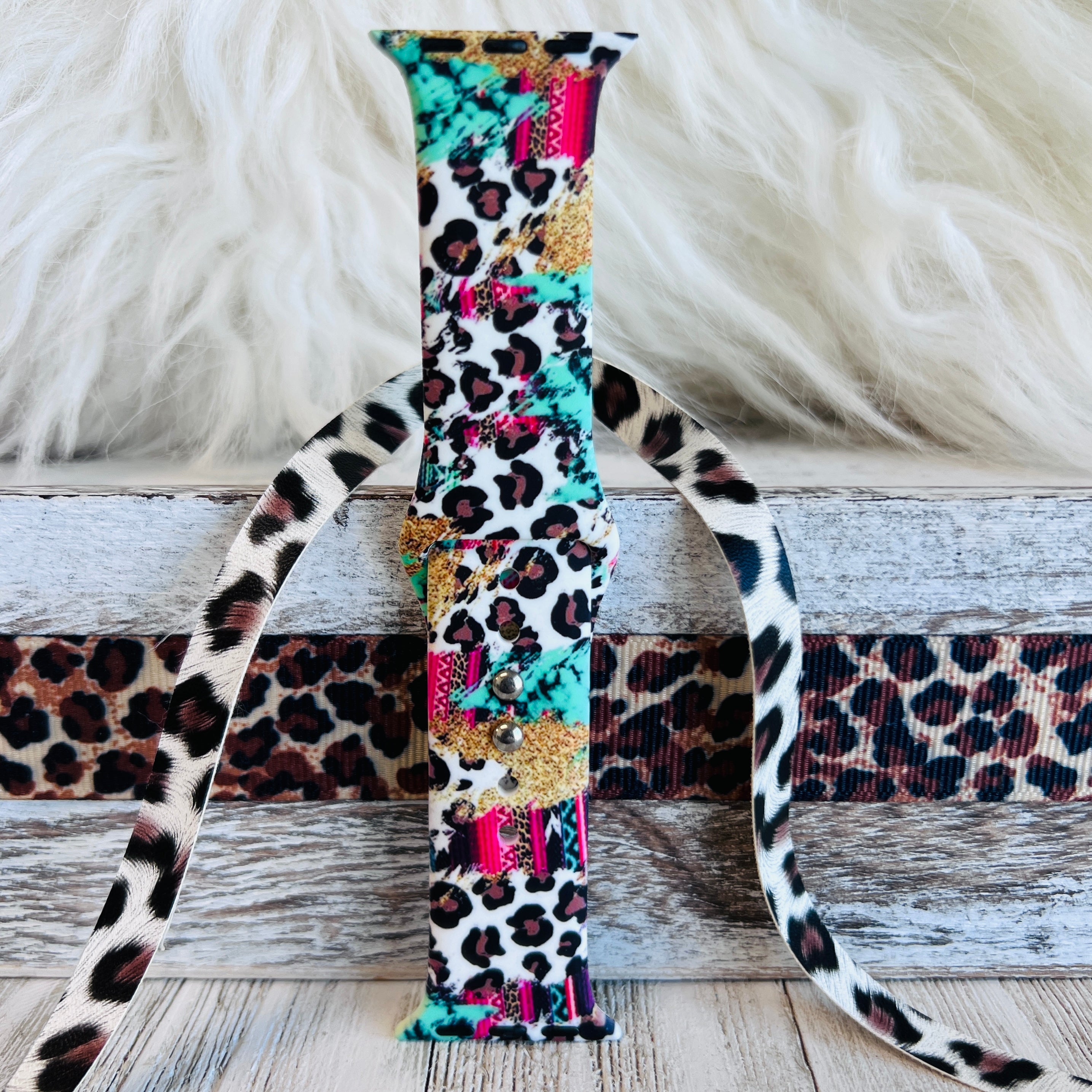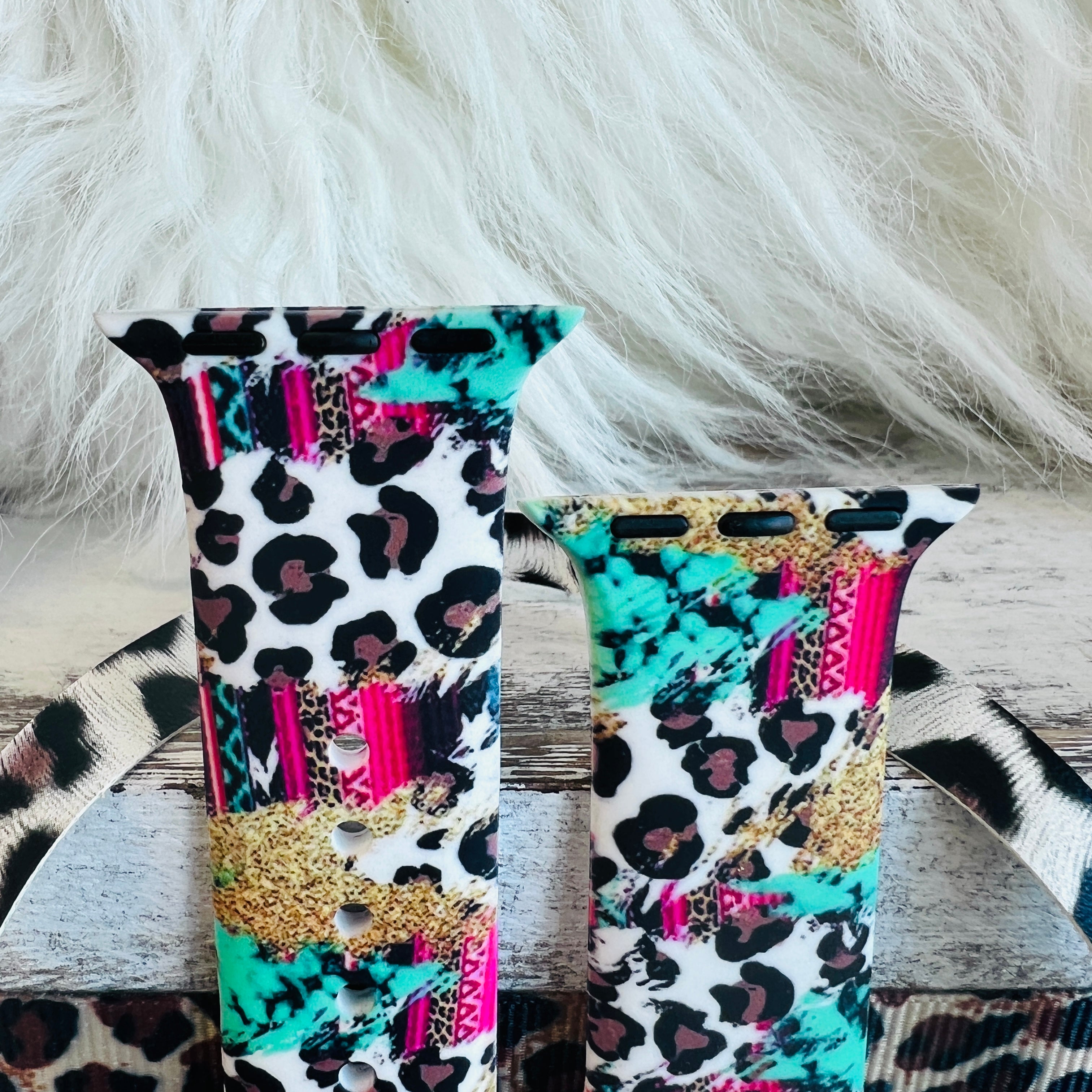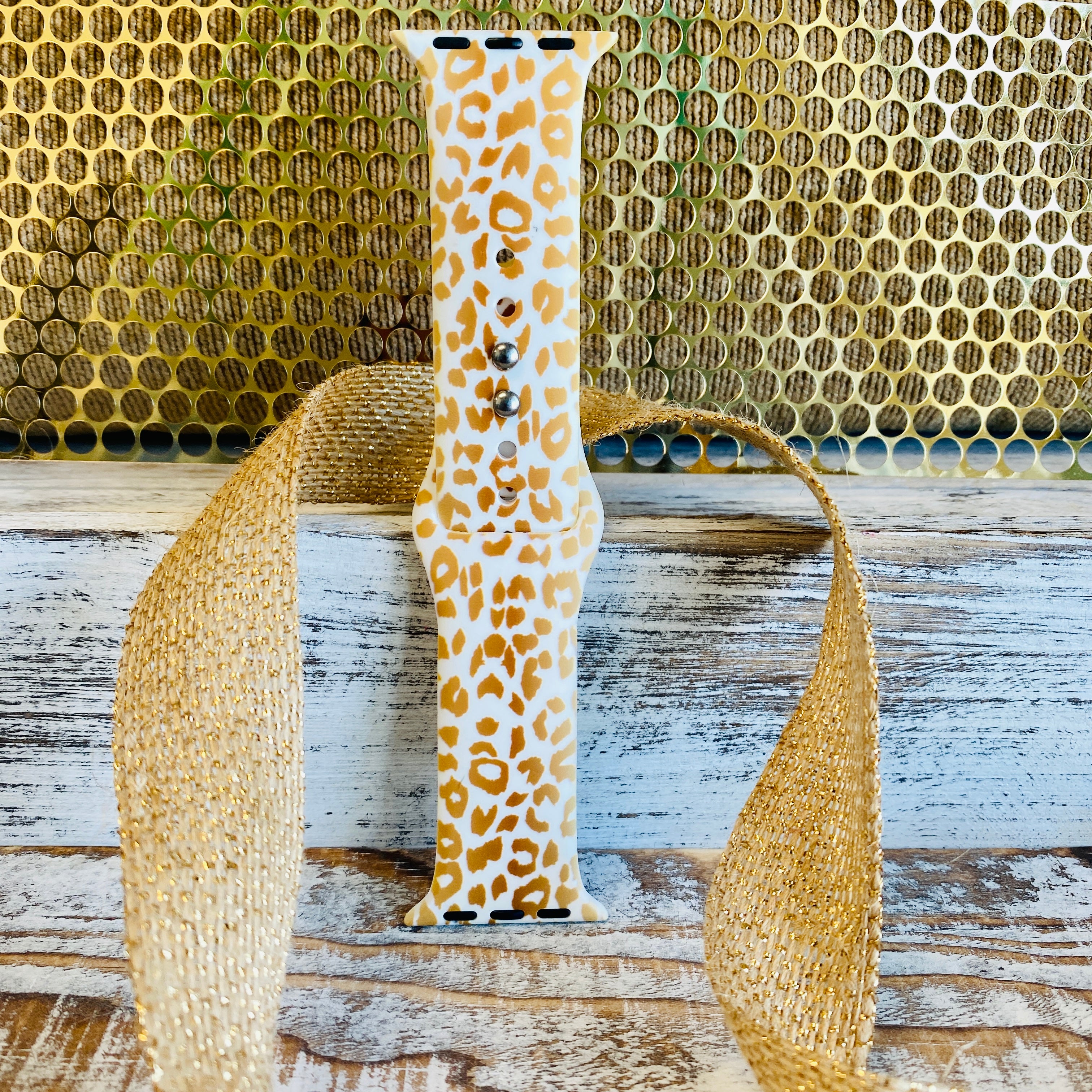 Correa de silicona con estampado de leopardo dorado para Apple Watch