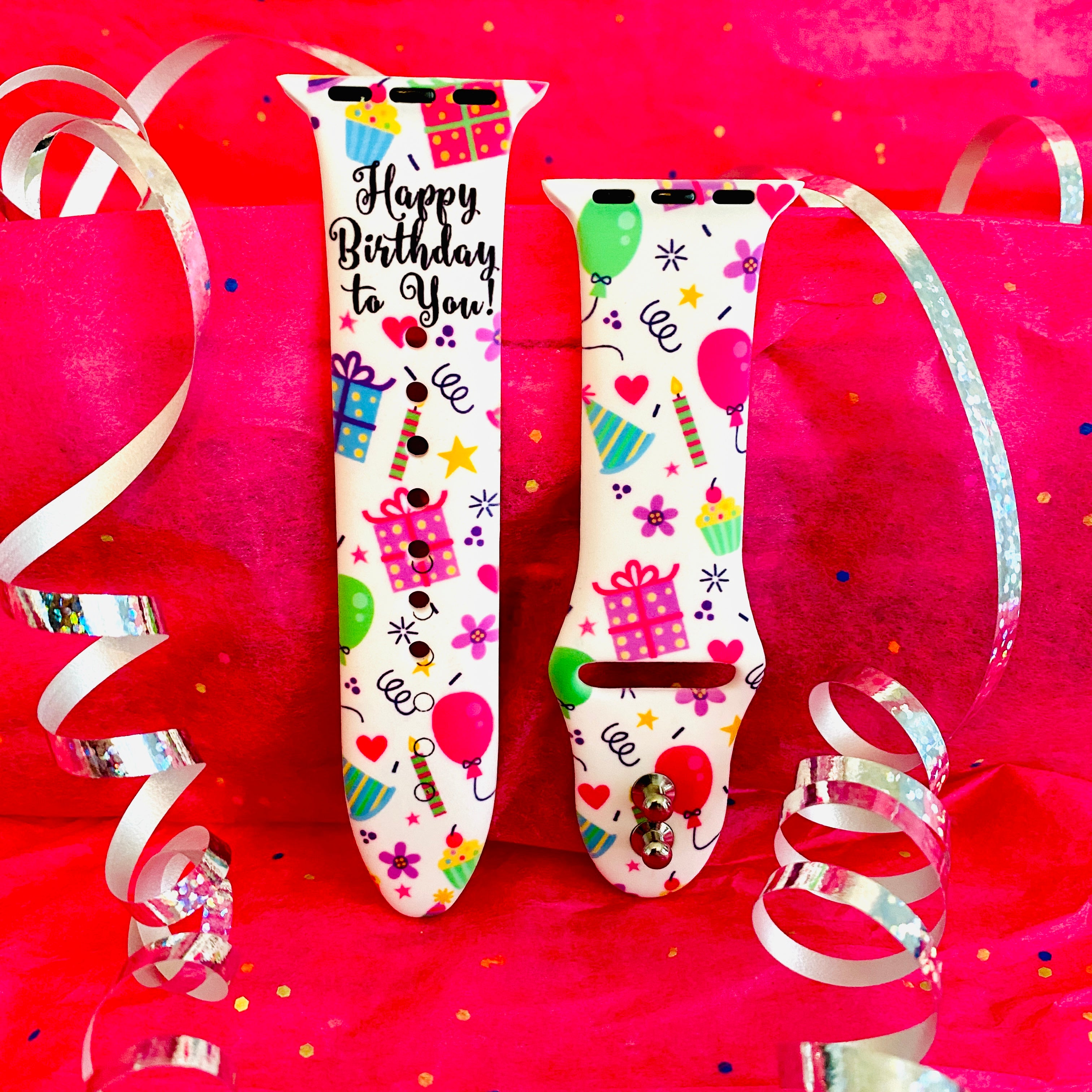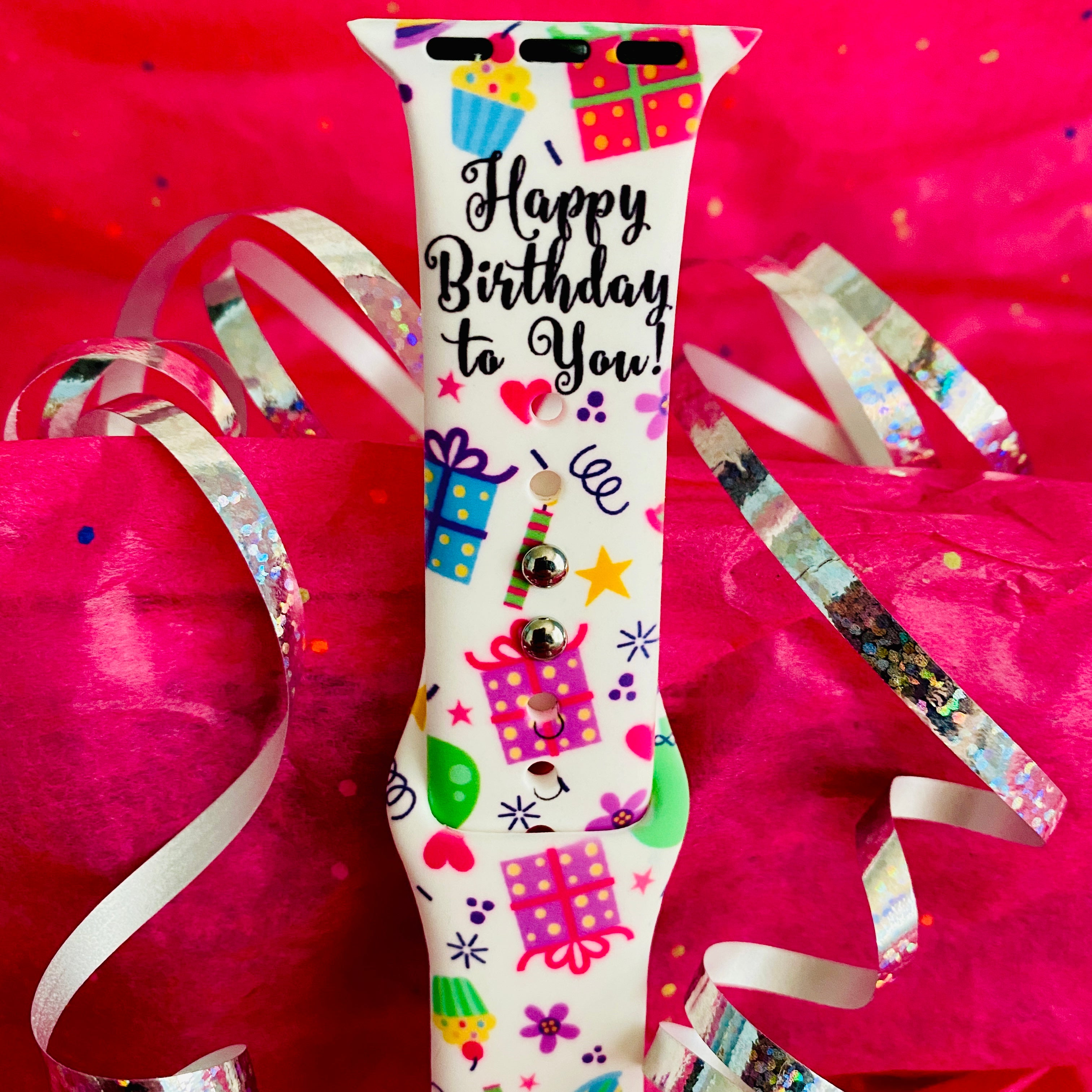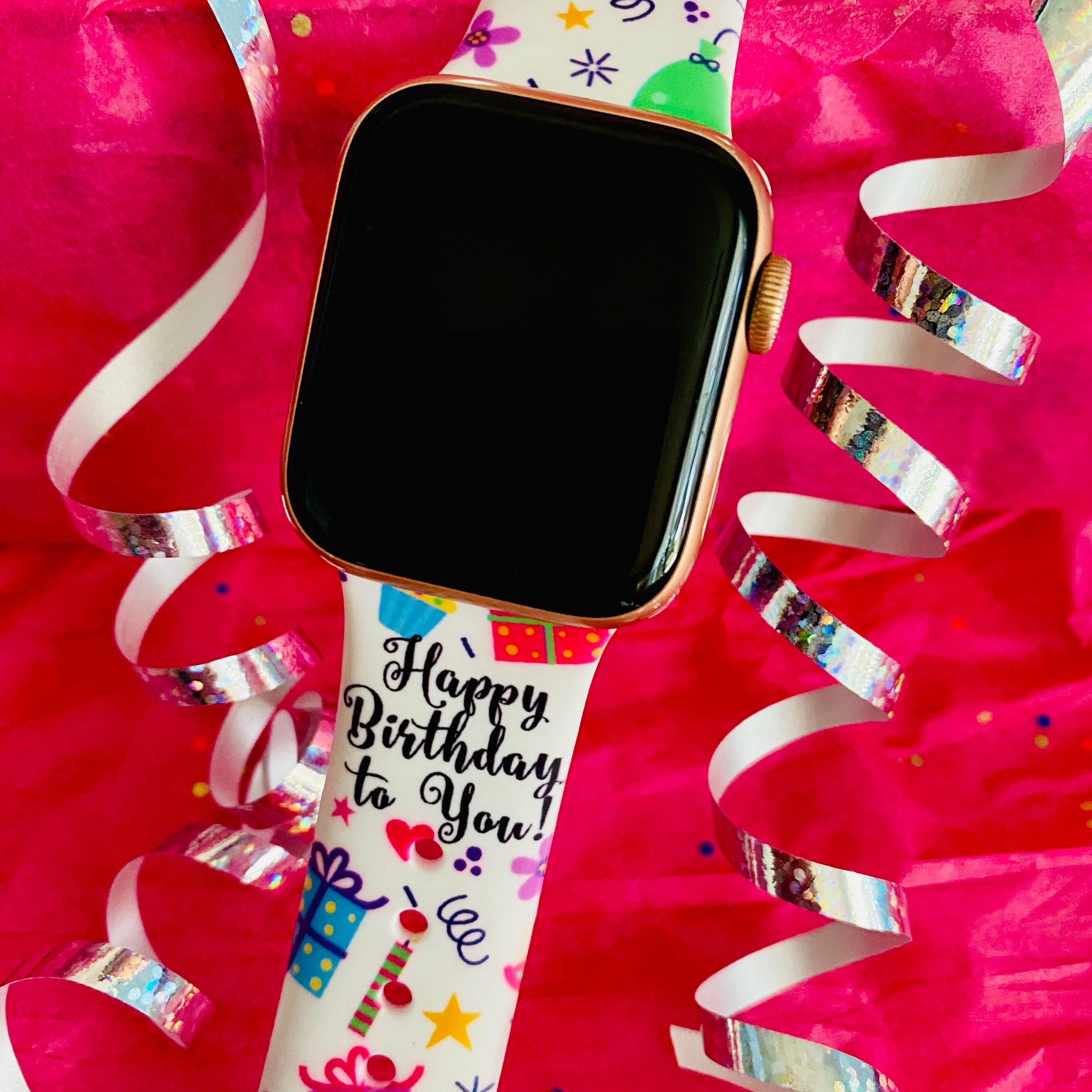 Correa de silicona con estampado de feliz cumpleaños para Apple Watch