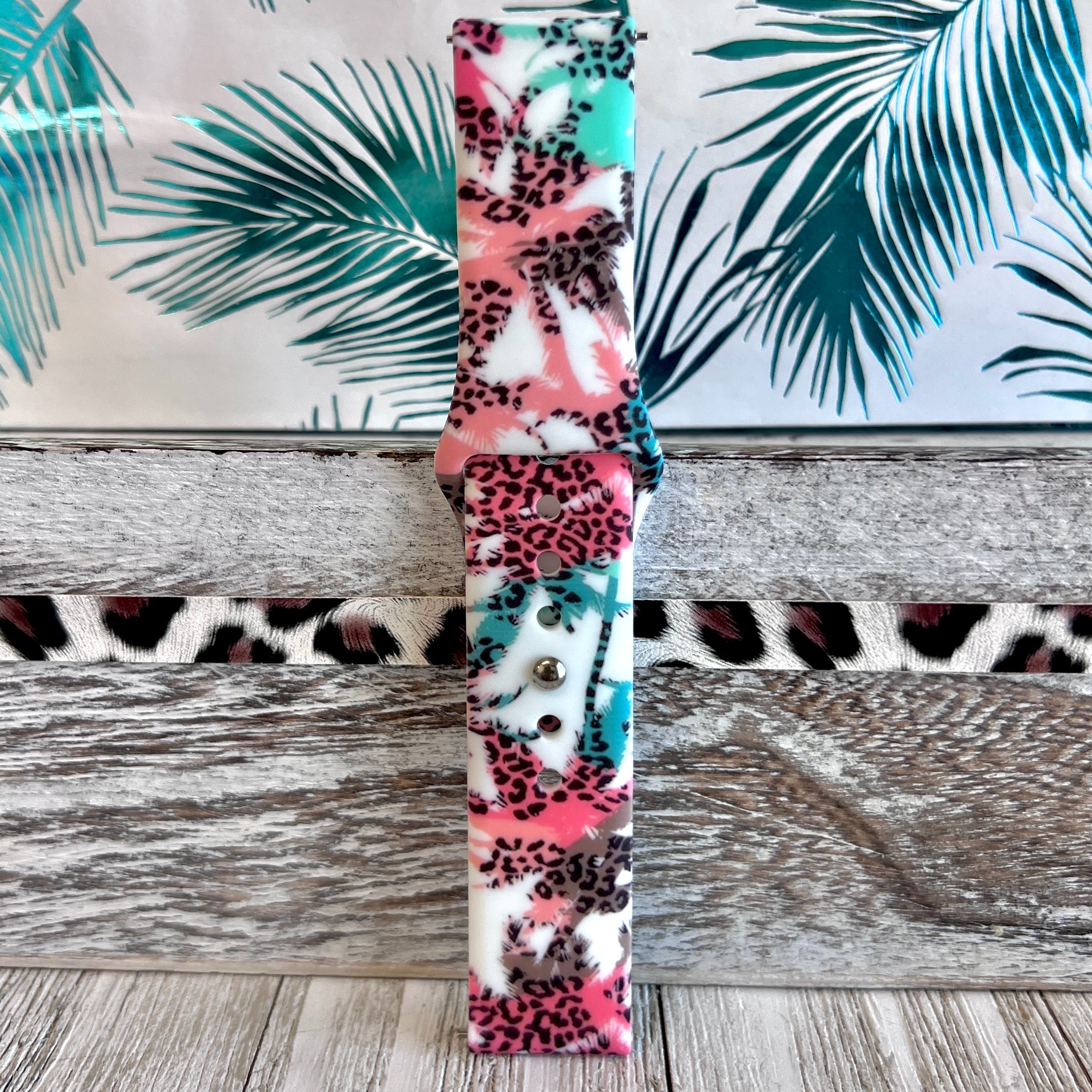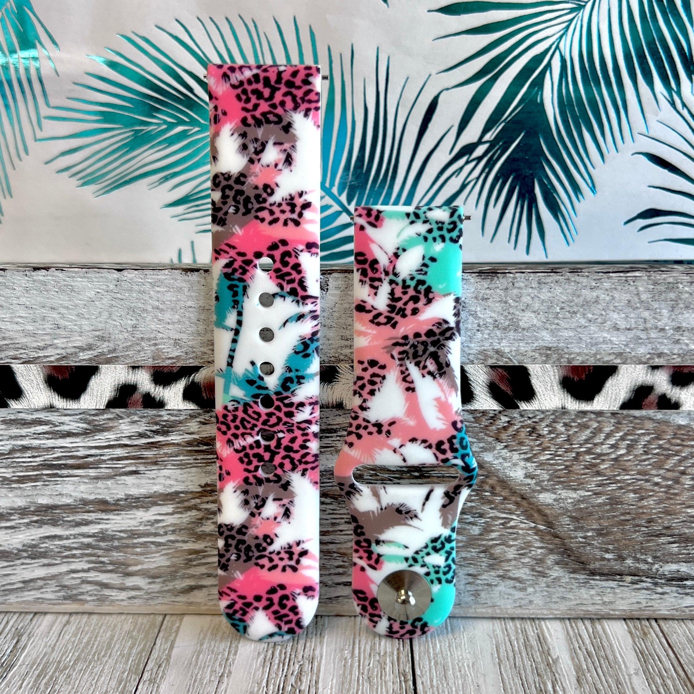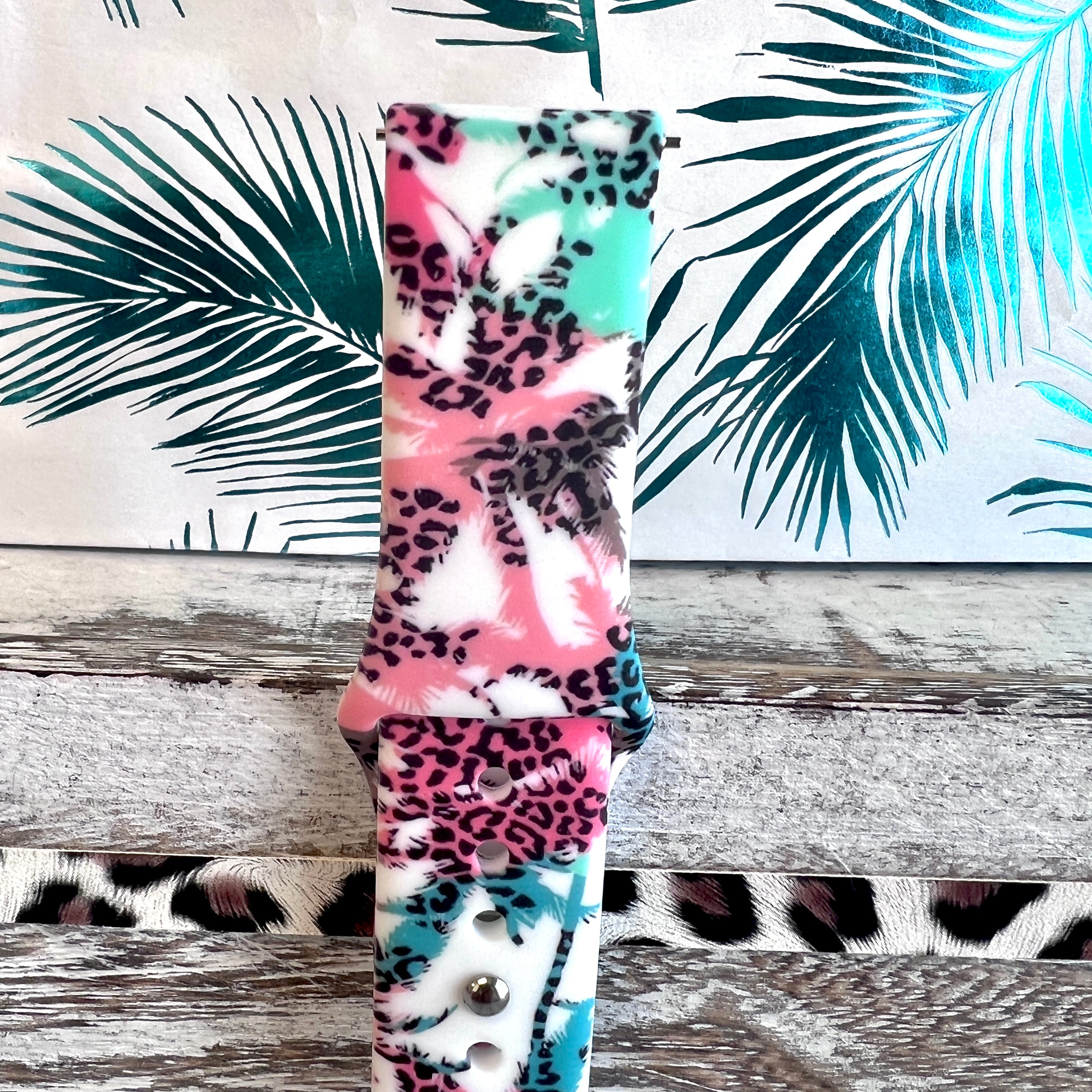 Correa de silicona con estampado de palmeras y leopardo para reloj Samsung