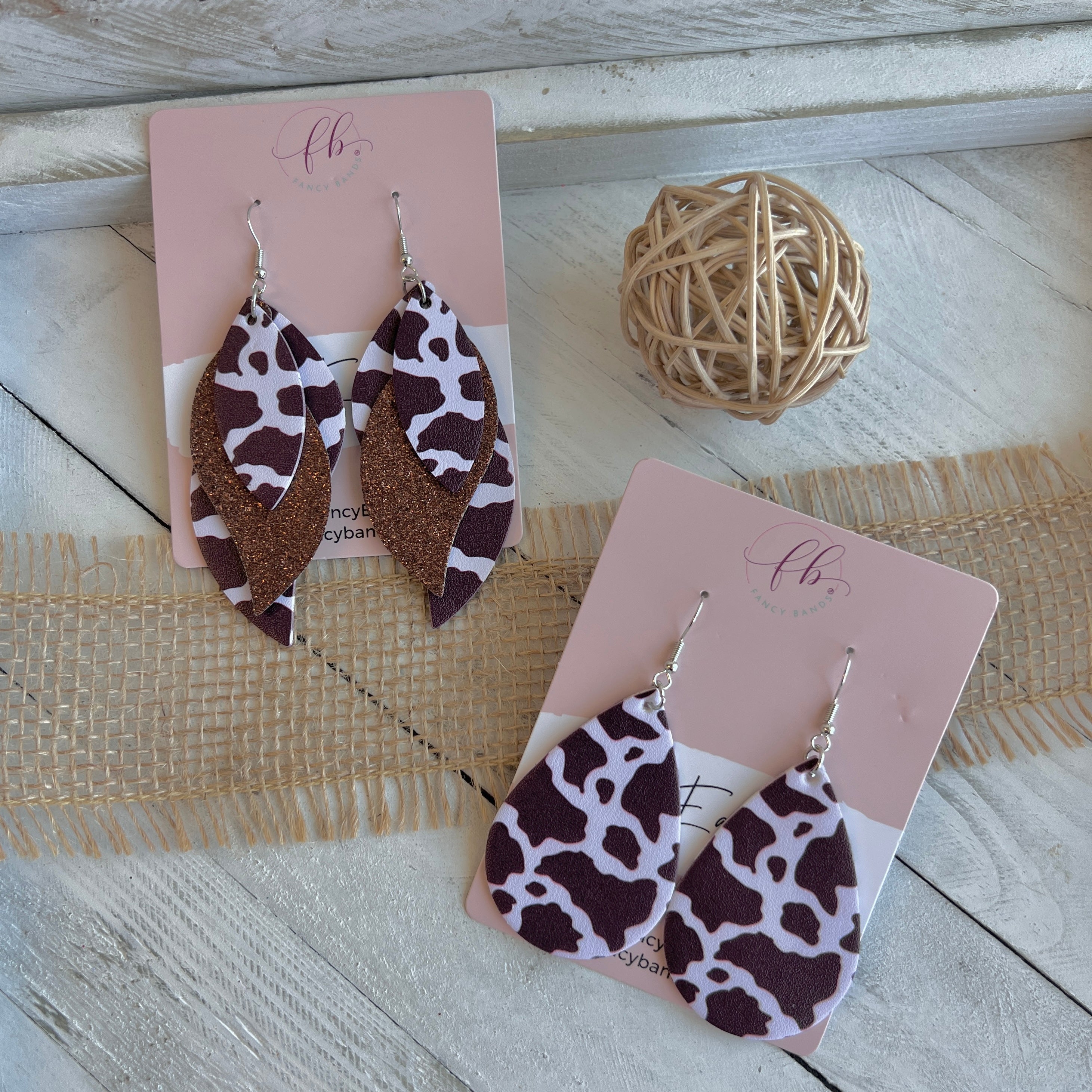 Nashville Marrón Vaca Imitación Cuero Lágrima Oreja Bling Dos Estilos Disponibles