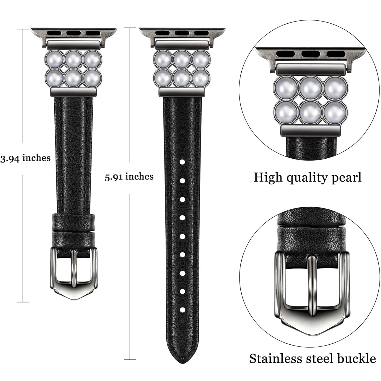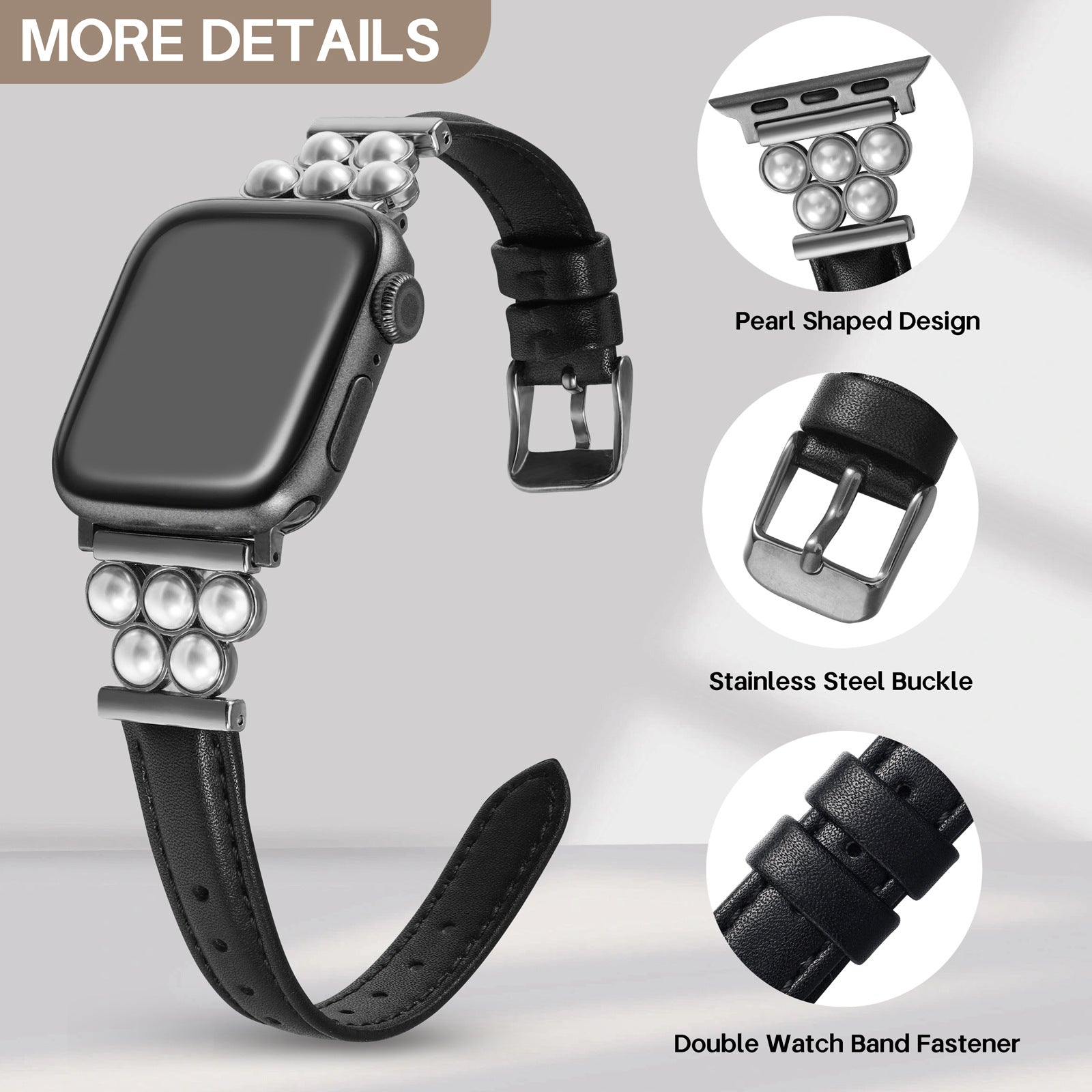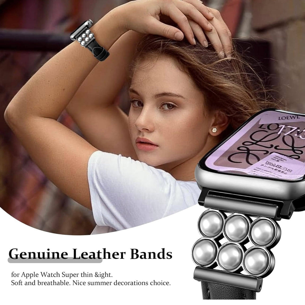 Pearled Up Leather Band For Apple Watch Two Colors Available