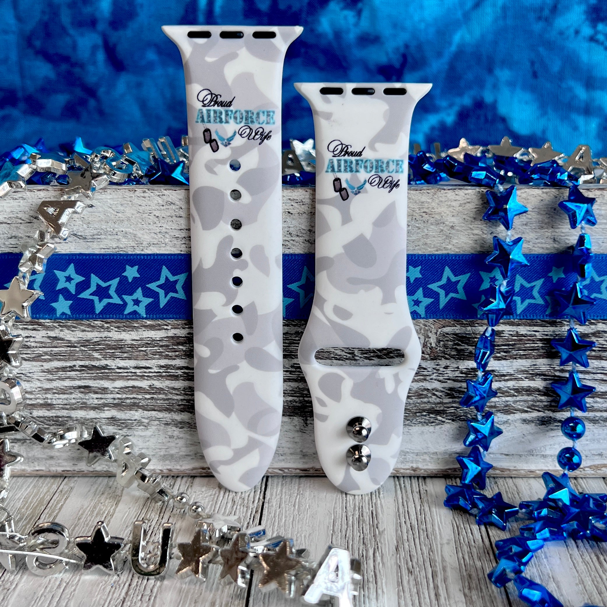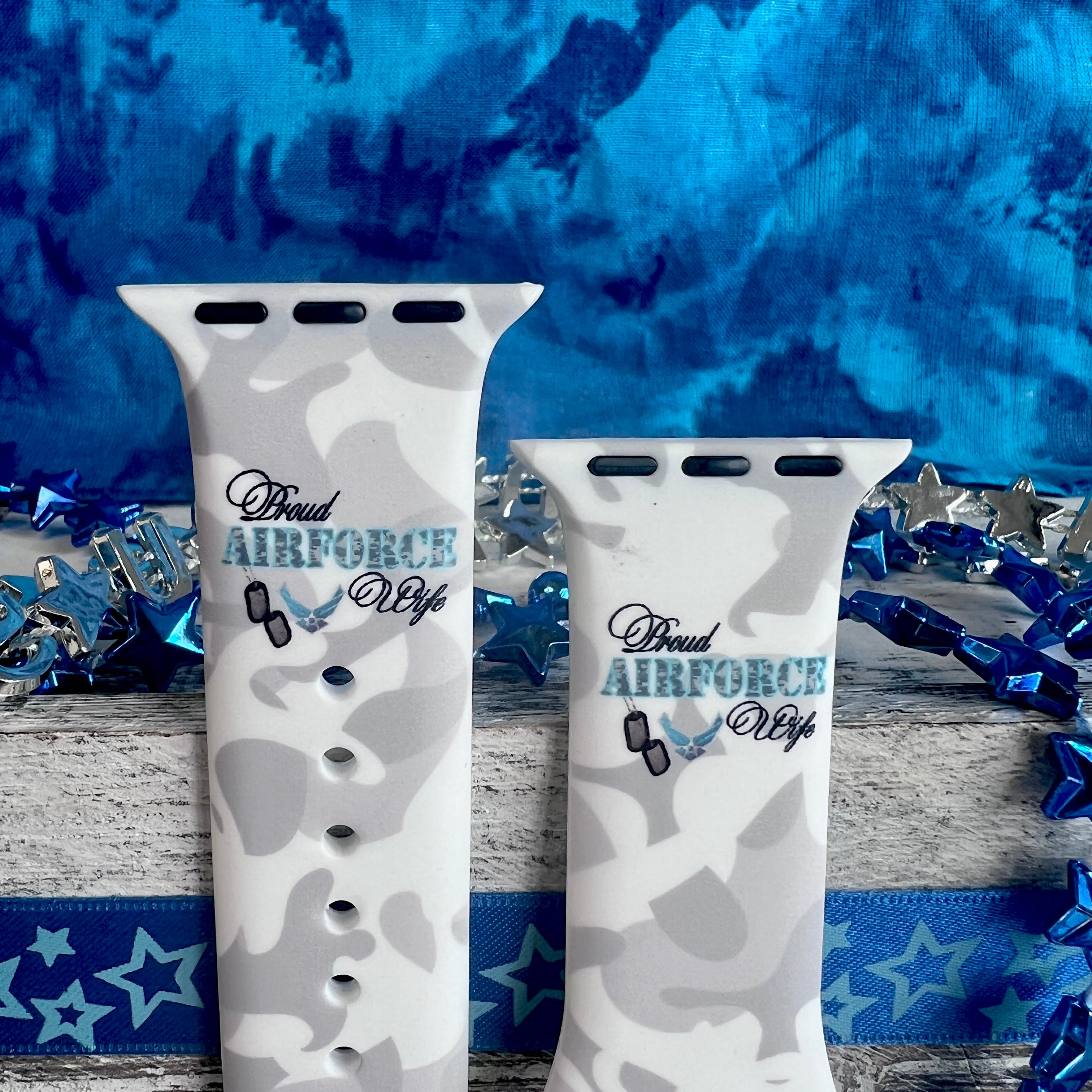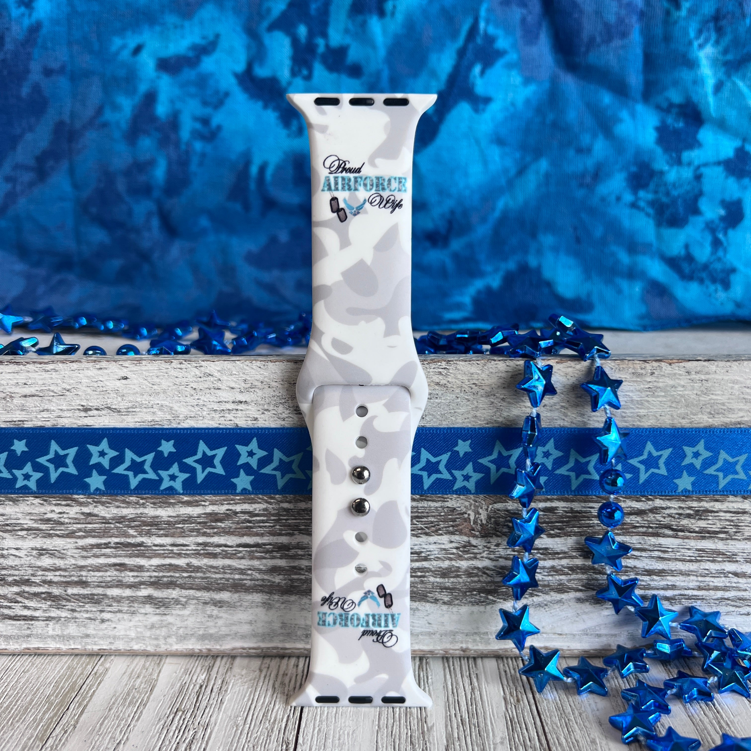 Banda de silicona con estampado de esposa de la Fuerza Aérea orgullosa para Apple Watch