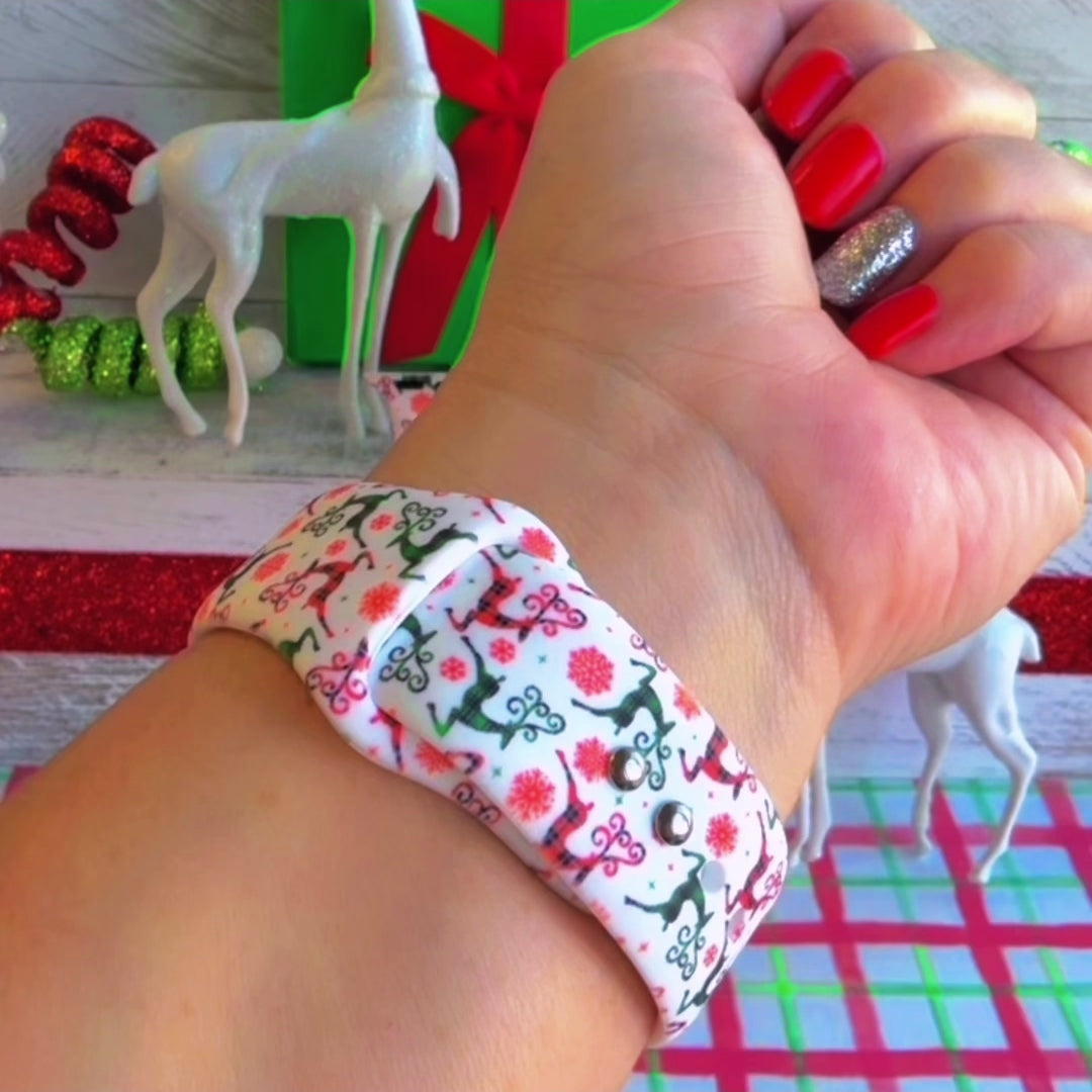 Pair your Reindeer Waltz band with vintage Christmas sweaters, retro holiday outfits, red and green accessories, and classic winter wear for a nostalgic festive look. Perfect for Christmas card photos, holiday baking days, tree decorating parties, cookie exchanges, and capturing that timeless Christmas magic throughout the season.