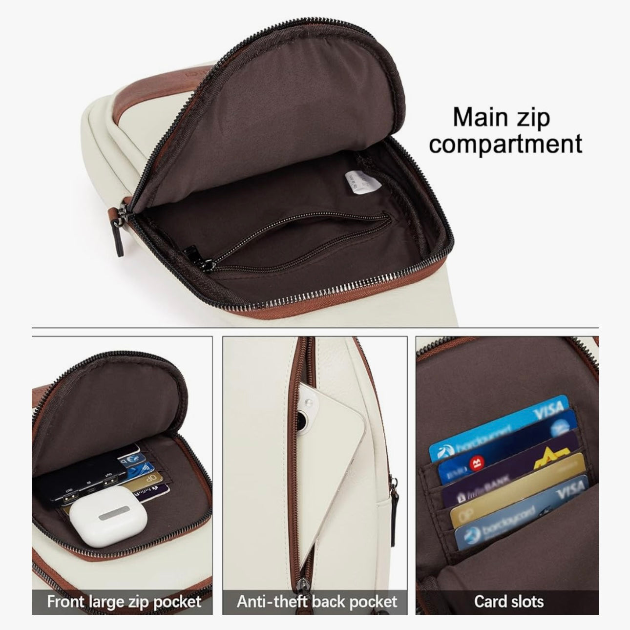 - 🎒 Smart Storage Design – Two roomy main compartments, one zippered inner pocket, five card slots, and a hidden zippered back pocket
